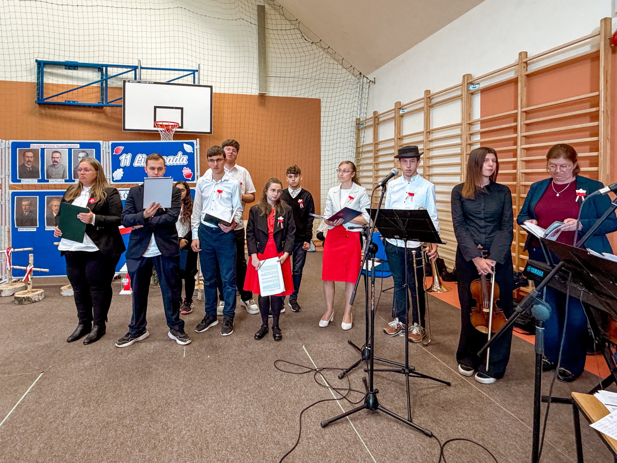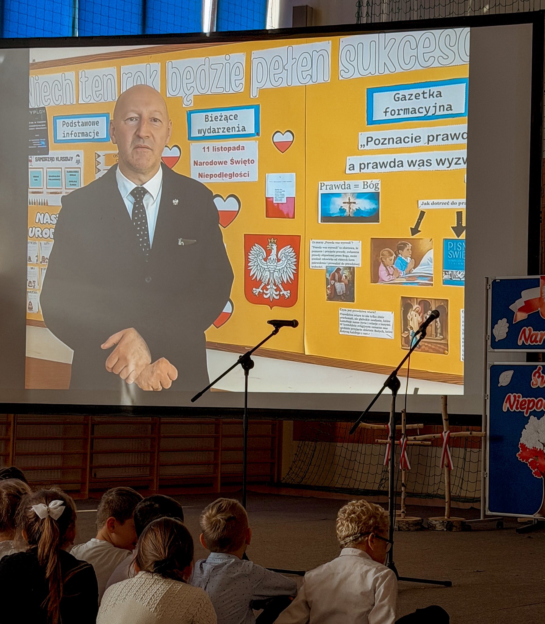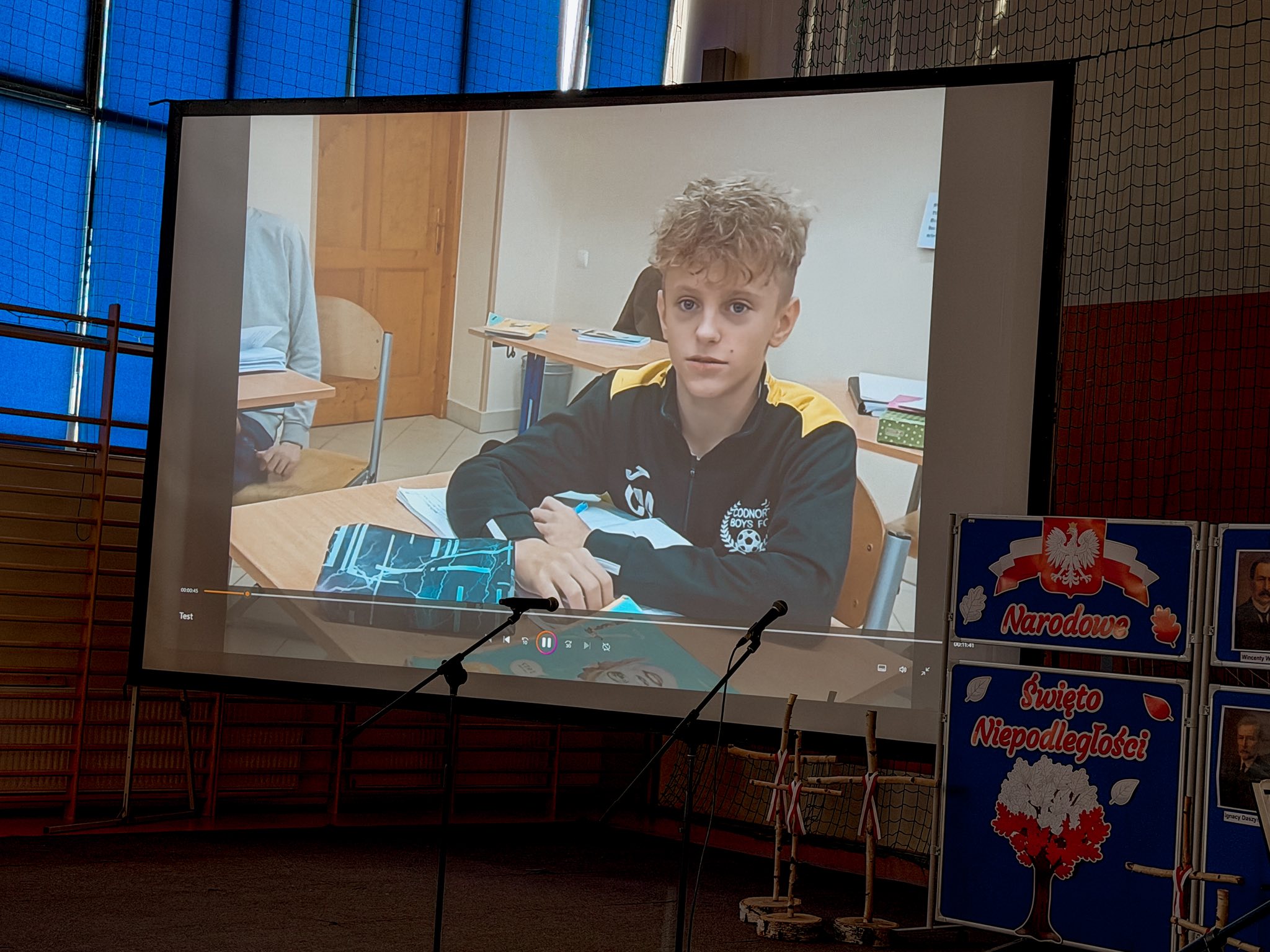 W tym roku uroczystość miała formę mieszaną - na początku głos zabrał dyrektor szkoły - pan Mateusz Zahora oraz dyrektor Branżowej Szkoły Specjalnej - p. Teresa Łyś. Następnie pojawiło się nagranie, w którym uczniowie i nauczyciele dzielili się swoimi przemyśleniami na temat tego, czym jest dla nich ojczyzna. Ich słowa pełne były emocji, refleksji i dumy z bycia częścią wspólnoty, którą łączy miłość do Polski.