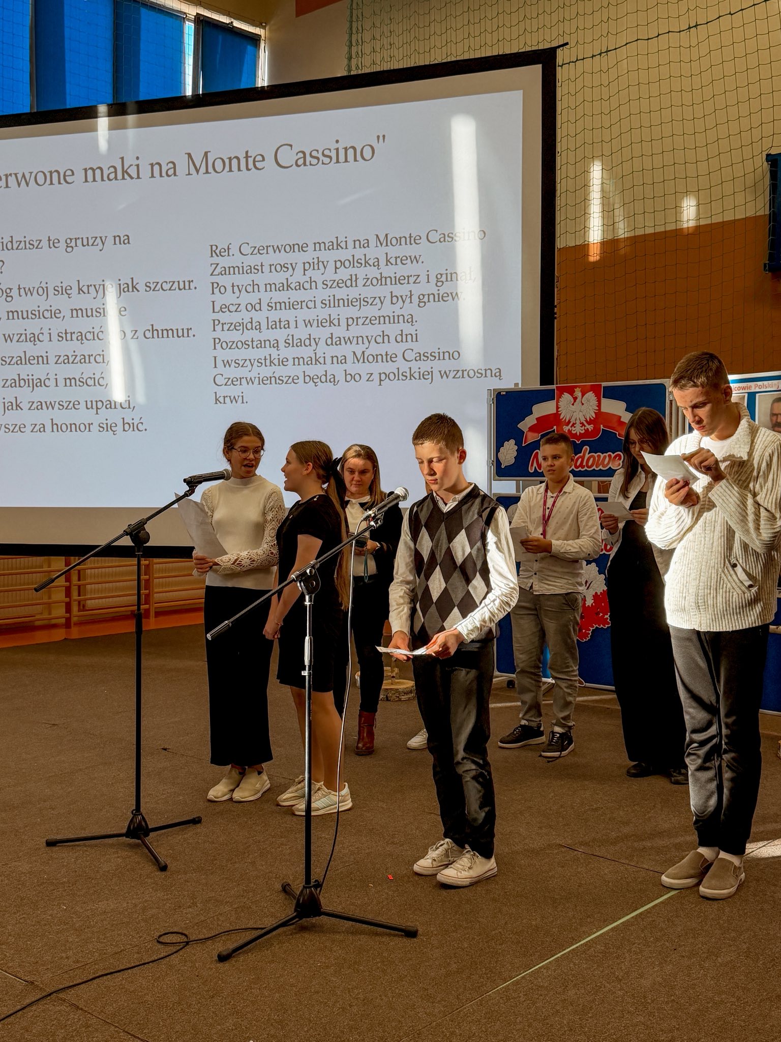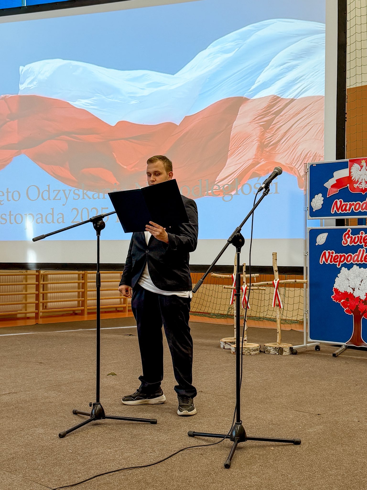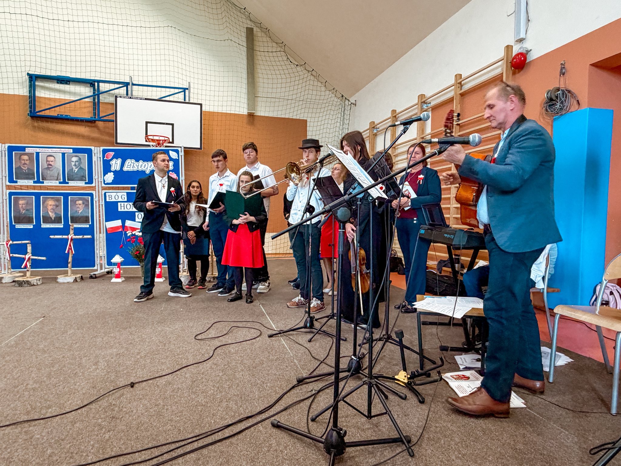W tym roku uroczystość miała formę mieszaną - na początku głos zabrał dyrektor szkoły - pan Mateusz Zahora oraz dyrektor Branżowej Szkoły Specjalnej - p. Teresa Łyś. Następnie pojawiło się nagranie, w którym uczniowie i nauczyciele dzielili się swoimi przemyśleniami na temat tego, czym jest dla nich ojczyzna. Ich słowa pełne były emocji, refleksji i dumy z bycia częścią wspólnoty, którą łączy miłość do Polski.