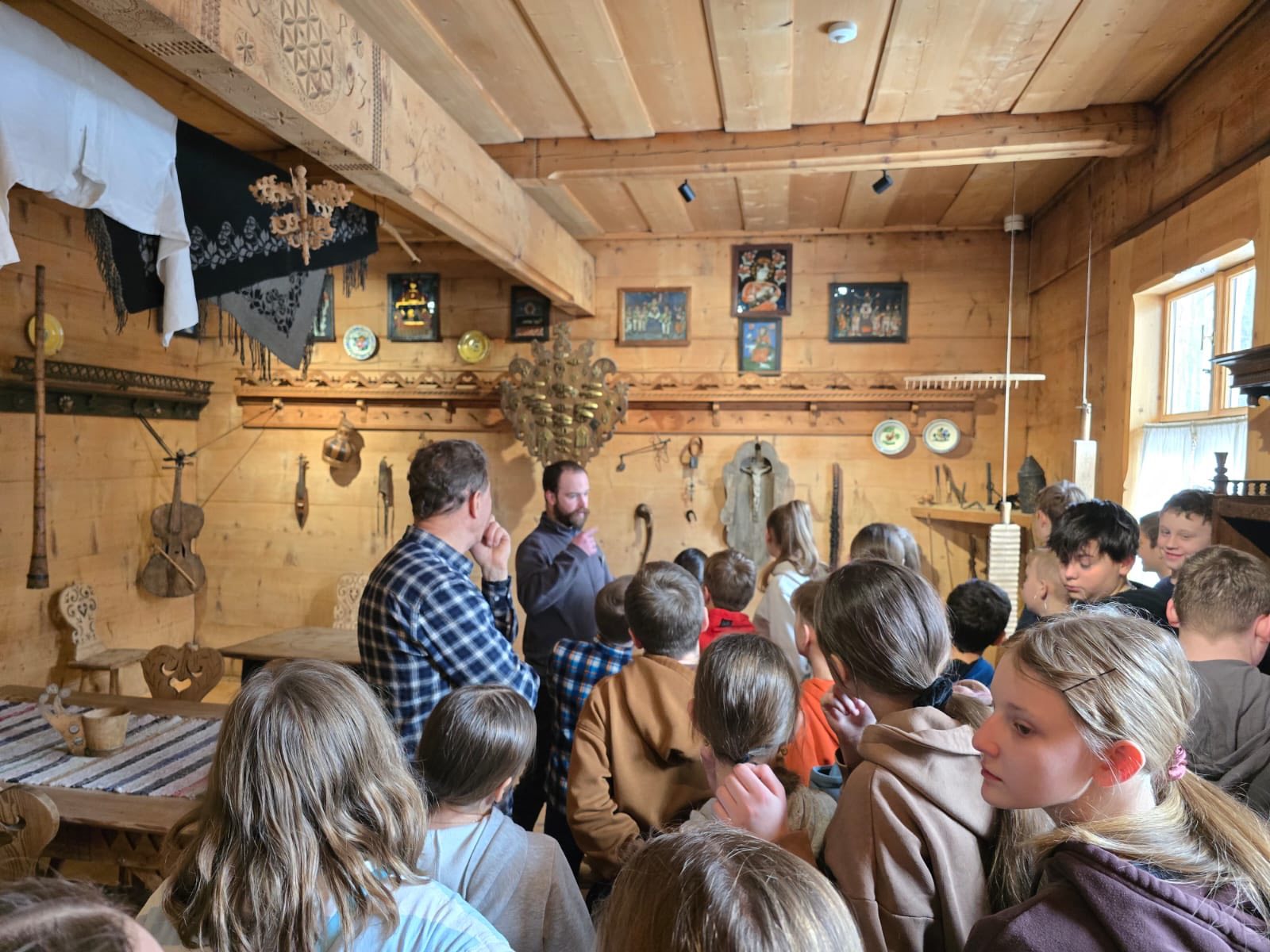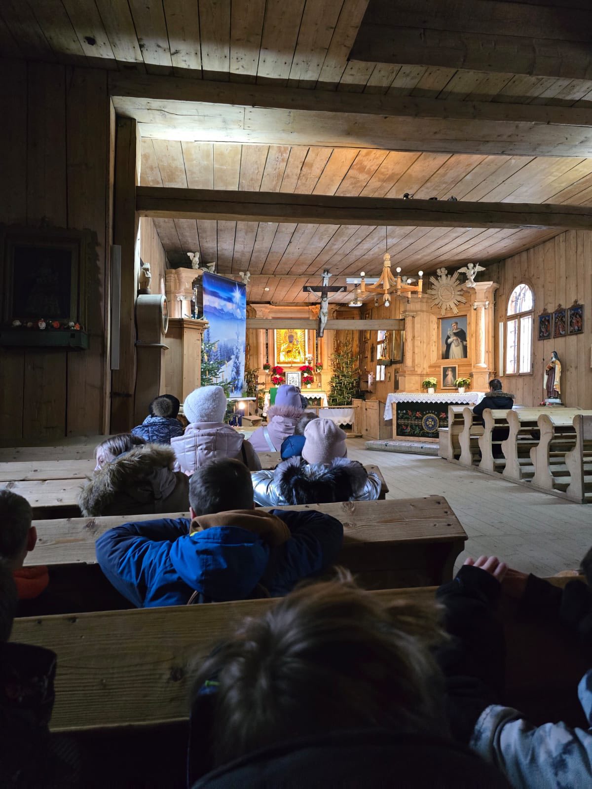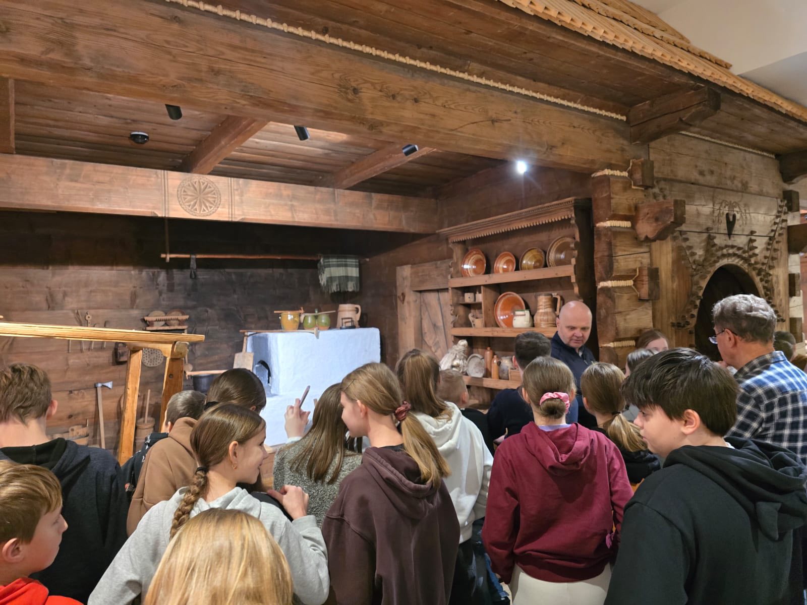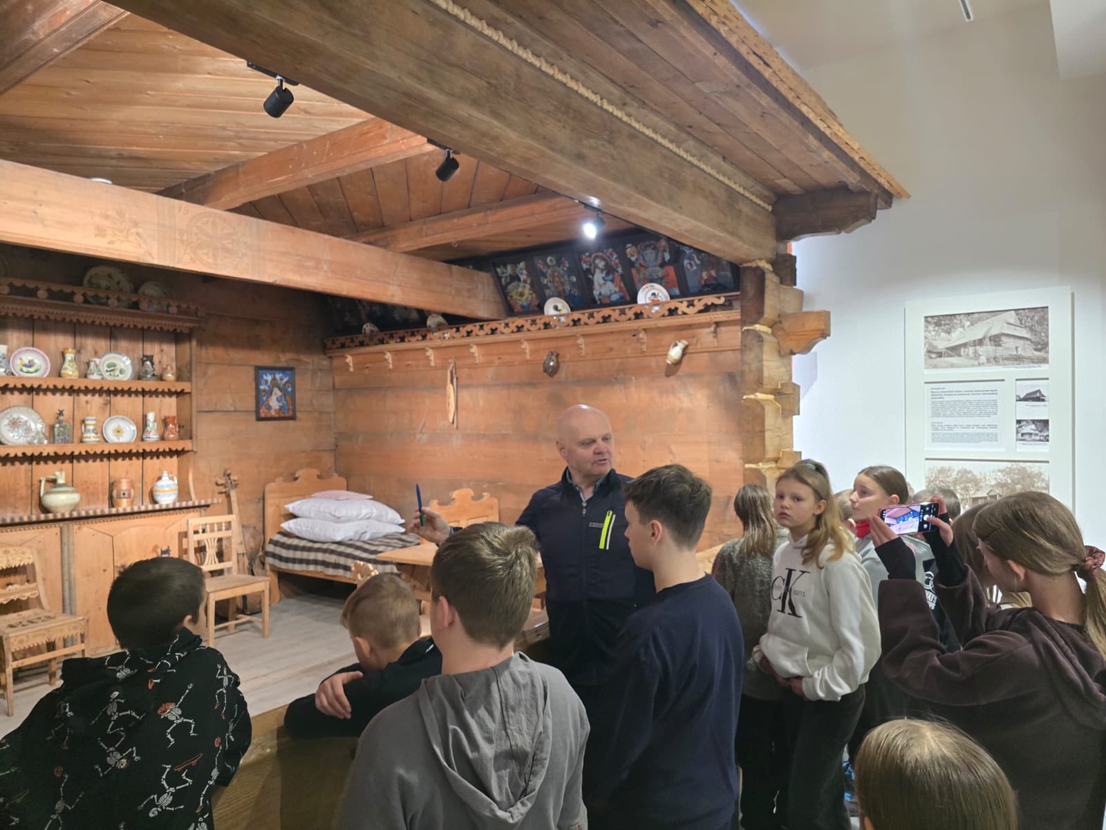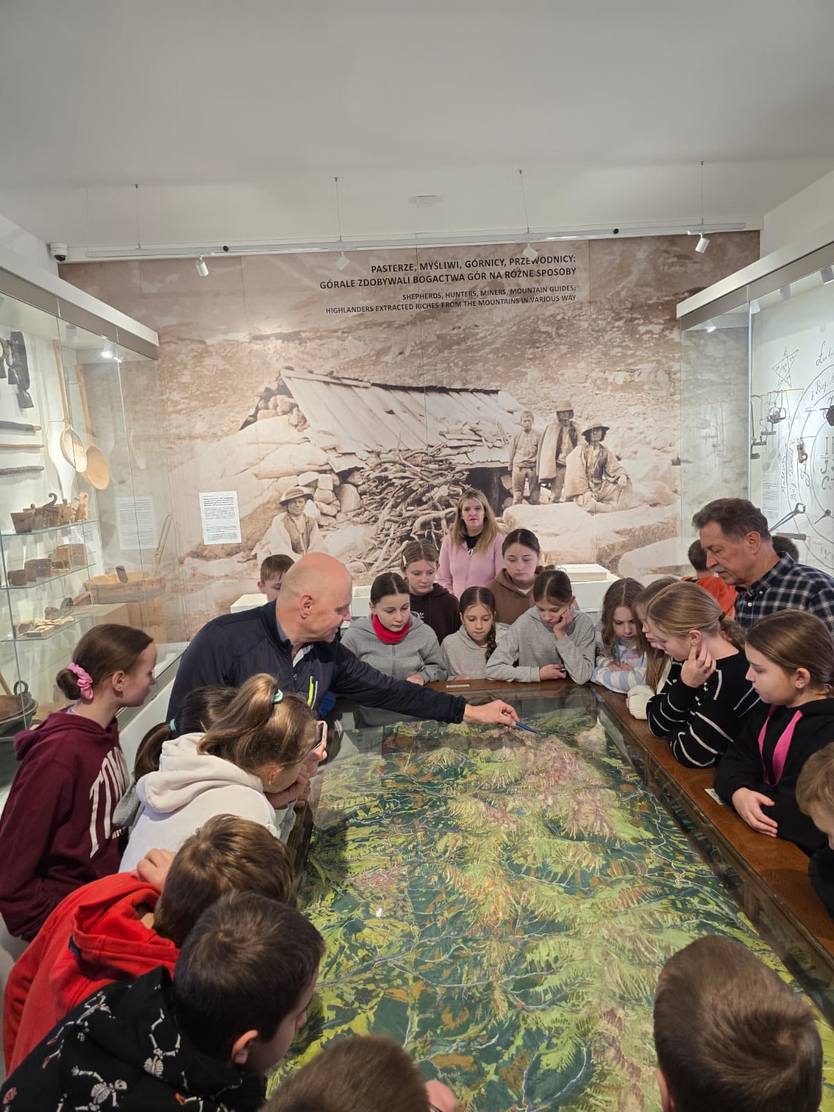 16.01.2026 klasy 5 udały się na wycieczkę, która była okazją do bliższego poznania kultury Podhala oraz najważniejszych miejsc związanych z historią miasta Zakopane. Nasze zwiedzanie rozpoczęliśmy od gmachu głównego Muzeum Tatrzańskiego, gdzie zapoznaliśmy się z bogatą historią regionu, postaciami waznymi dla historii Zakopanego i Podhala, tradycjami góralskimi, strojami ludowymi oraz przyrodą Tatr. Zgromadzone eksponaty i ciekawe opowieści przewodnika pozwoliły nam lepiej zrozumieć wyjątkowość tego miejsca.