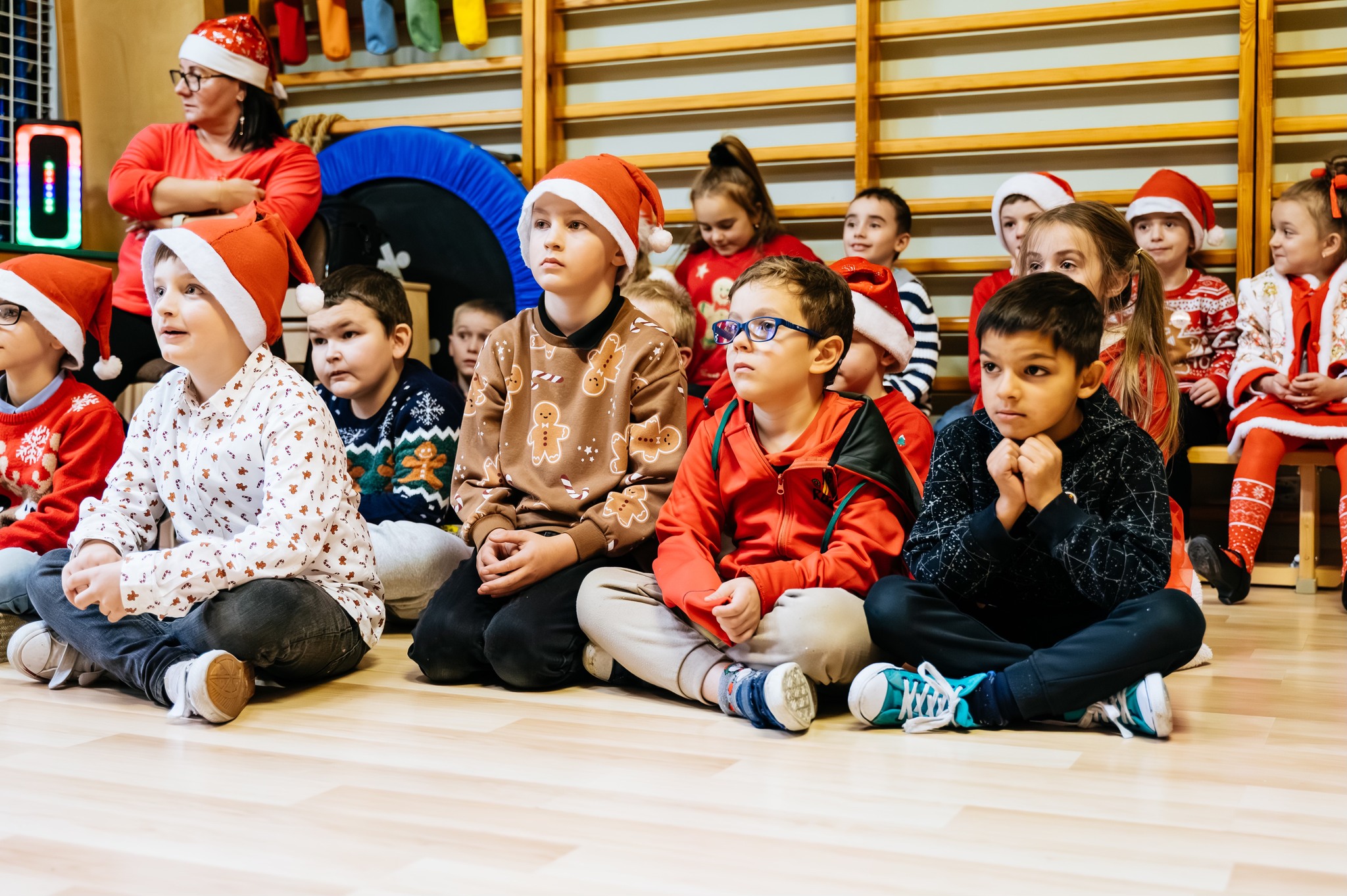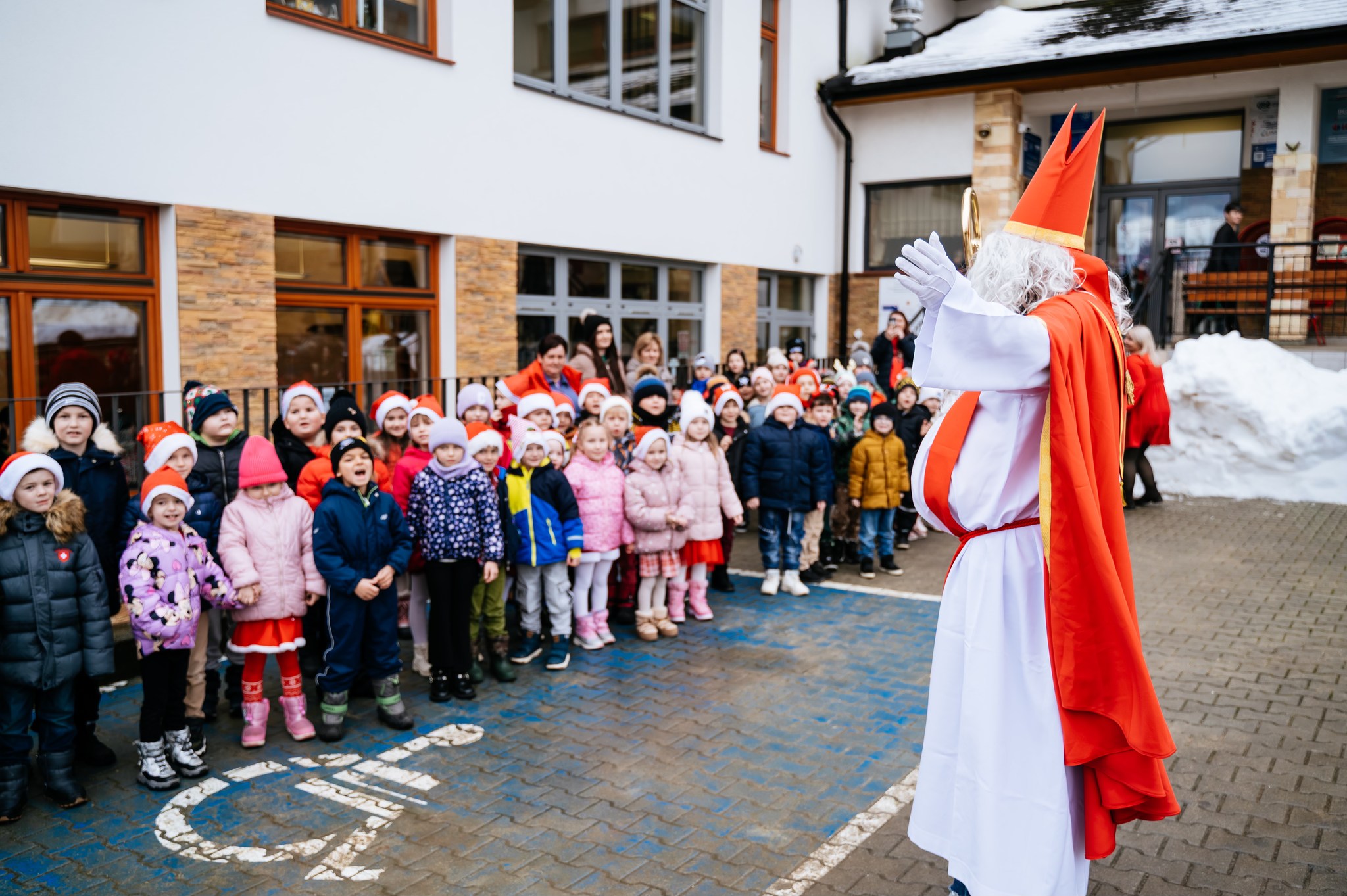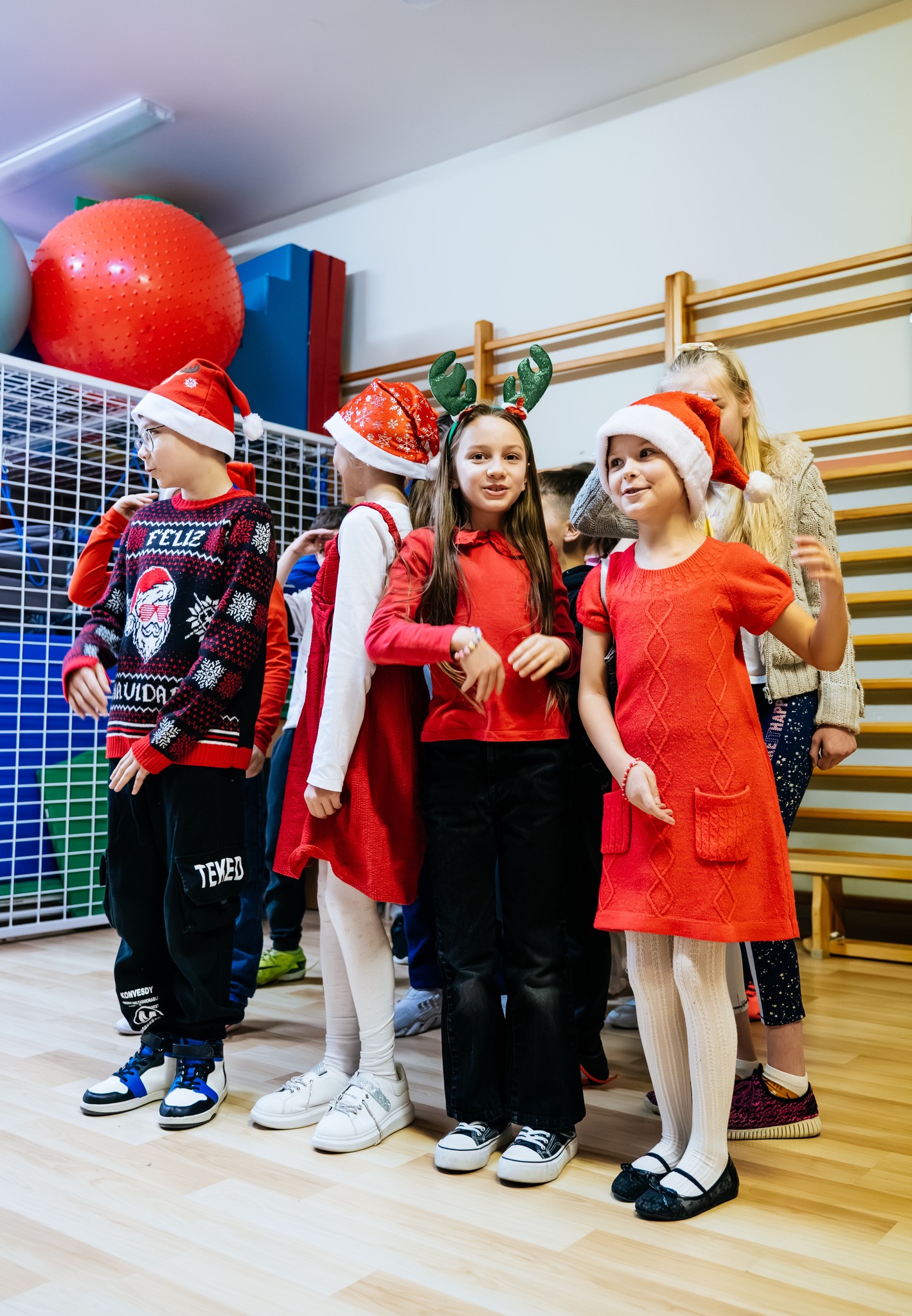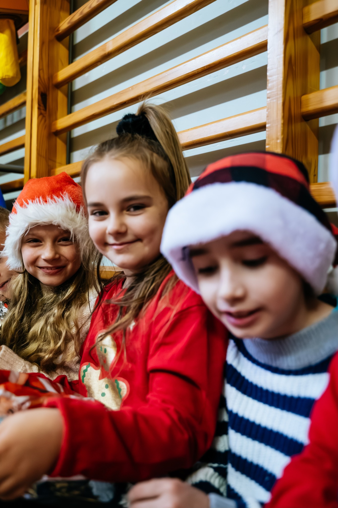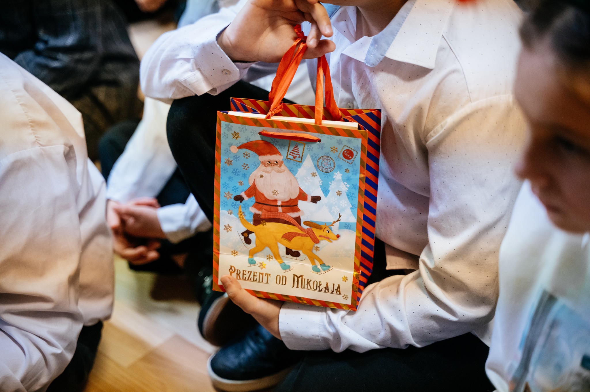 W tym roku, ze względu na liczebność klas, świętowanie Mikołajek rozpoczęliśmy już w piątek — wtedy przedszkolaki oraz uczniowie klas 1–3 otrzymali swoje mikołajkowe upominki.