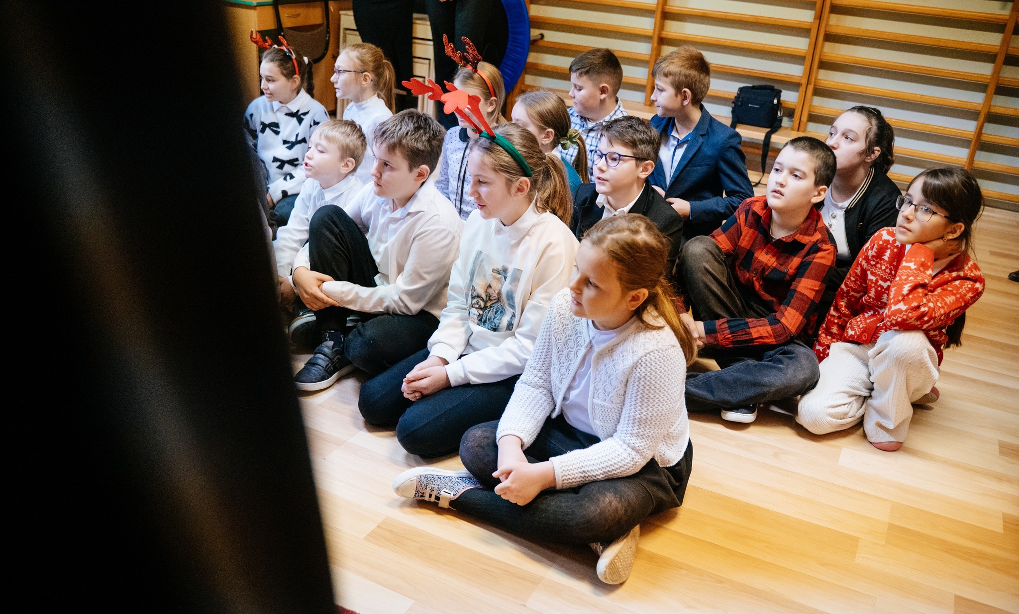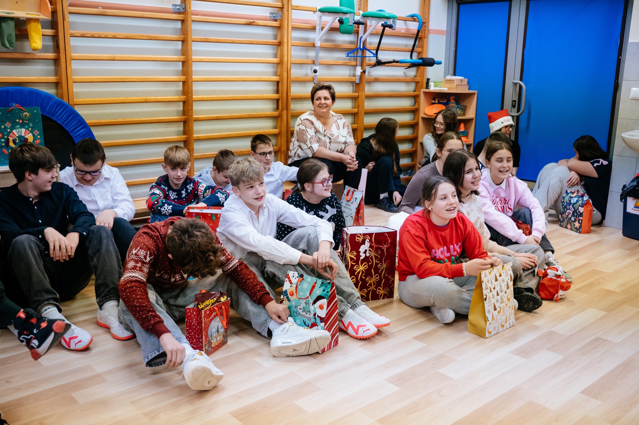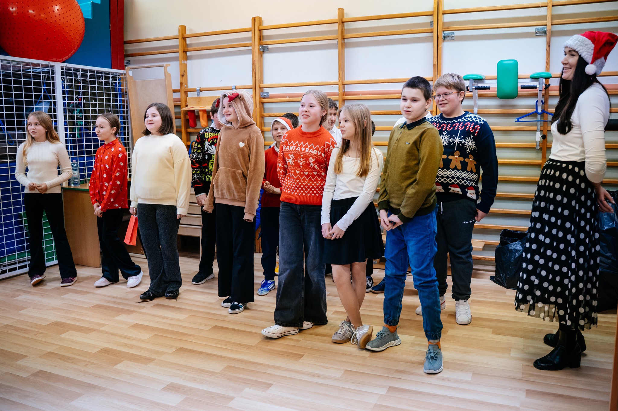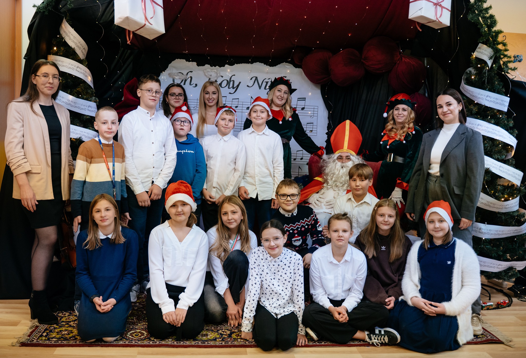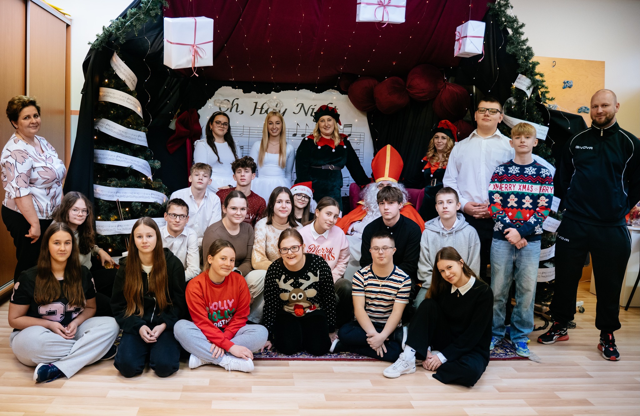 W tym roku, ze względu na liczebność klas, świętowanie Mikołajek rozpoczęliśmy już w piątek — wtedy przedszkolaki oraz uczniowie klas 1–3 otrzymali swoje mikołajkowe upominki.