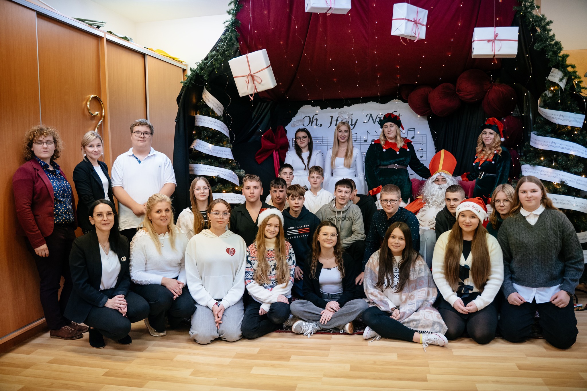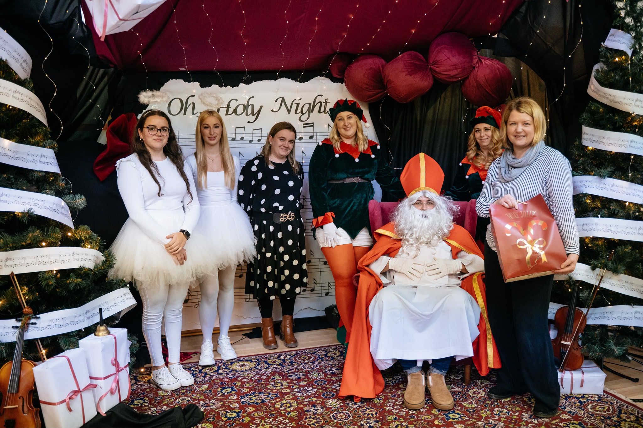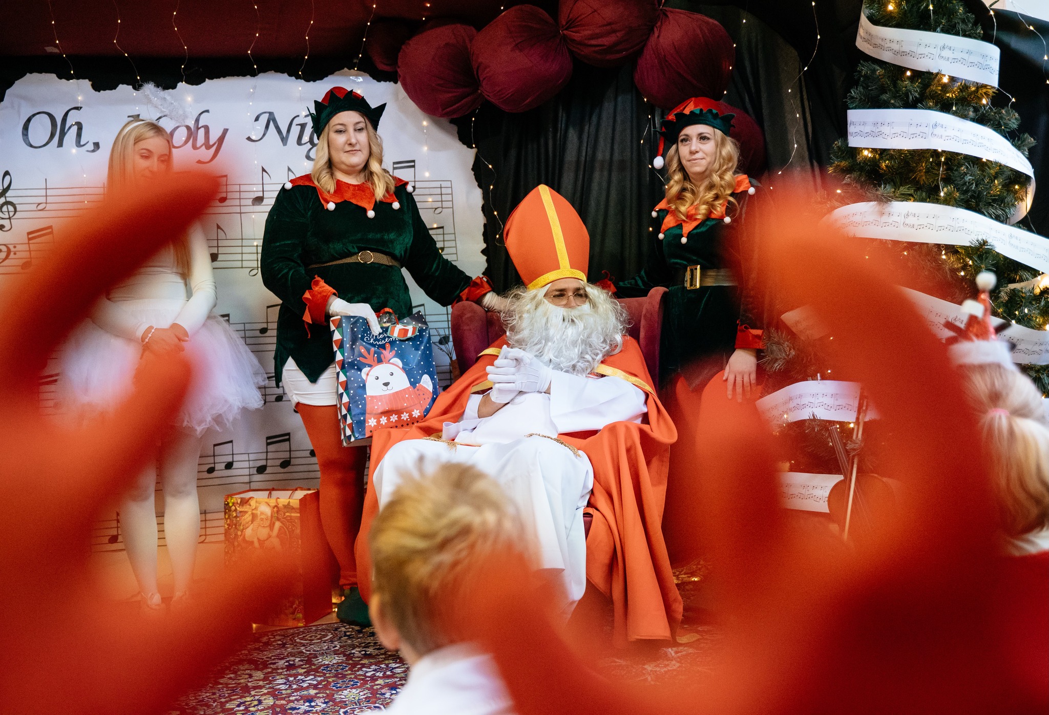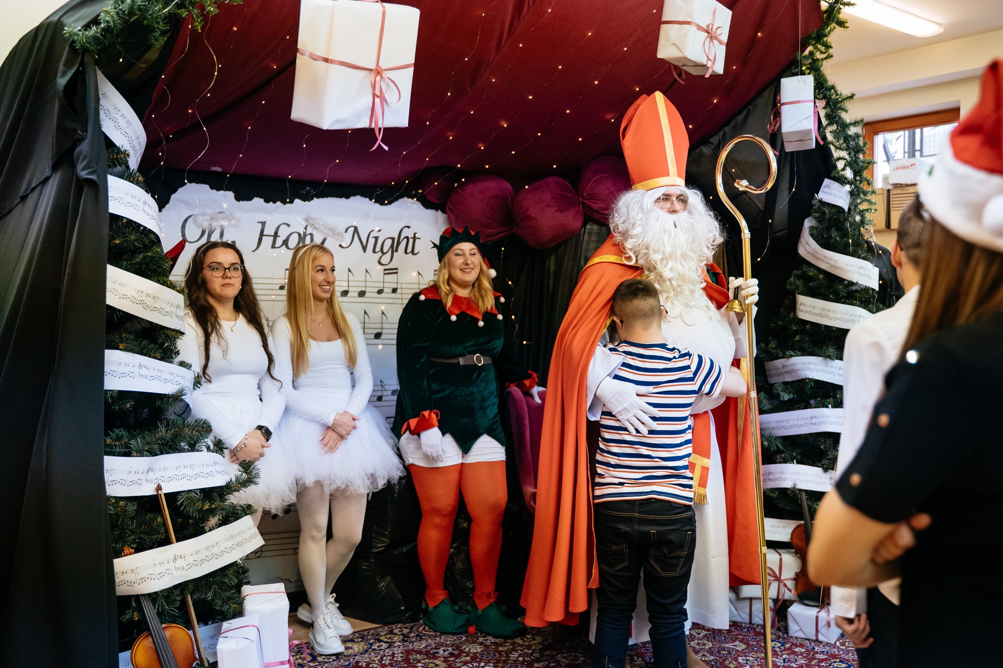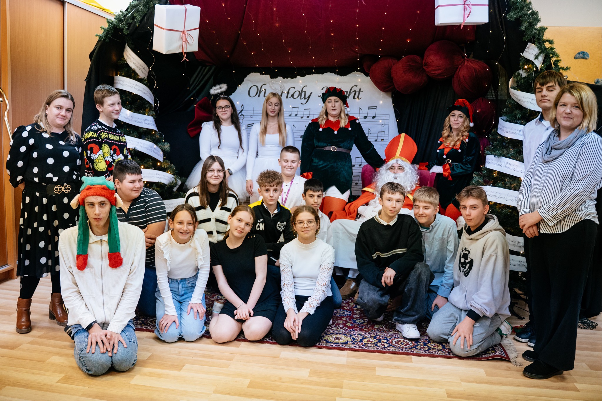 W tym roku, ze względu na liczebność klas, świętowanie Mikołajek rozpoczęliśmy już w piątek — wtedy przedszkolaki oraz uczniowie klas 1–3 otrzymali swoje mikołajkowe upominki.