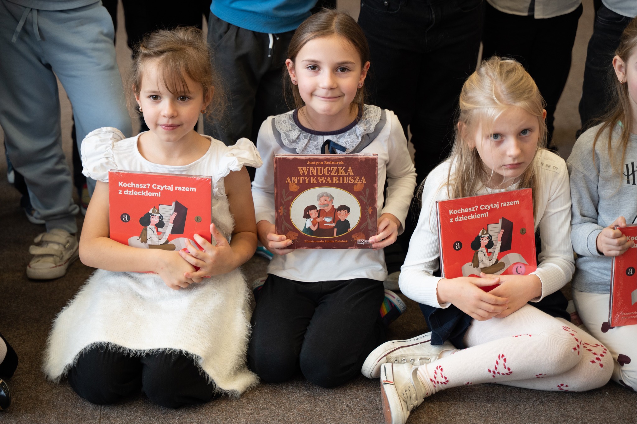 Pierwszoklasiści dostali książki w ramach kampanii Instytutu Książki „Mała książka – wielki człowiek”, której celem jest promowanie czytelnictwa od najmłodszych lat. Do rąk dzieci trafiła książka „Wnuczka antykwariusza” Justyny Bednarek oraz broszura „Kochasz? Czytaj razem z dzieckiem!”, zawierająca informacje o korzyściach płynących ze wspólnego czytania oraz porady dla rodziców, jak wspierać dziecko w nauce czytania.