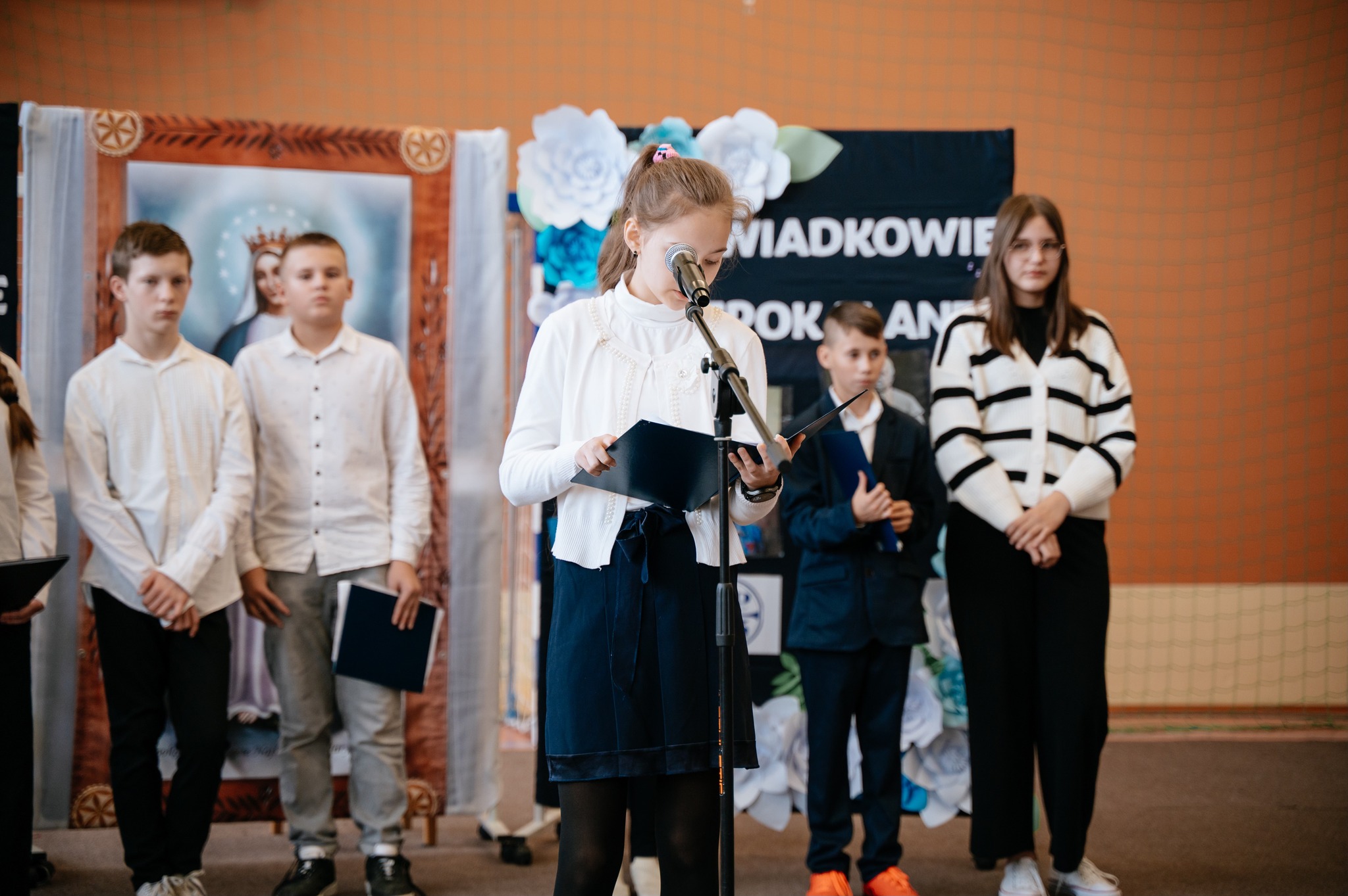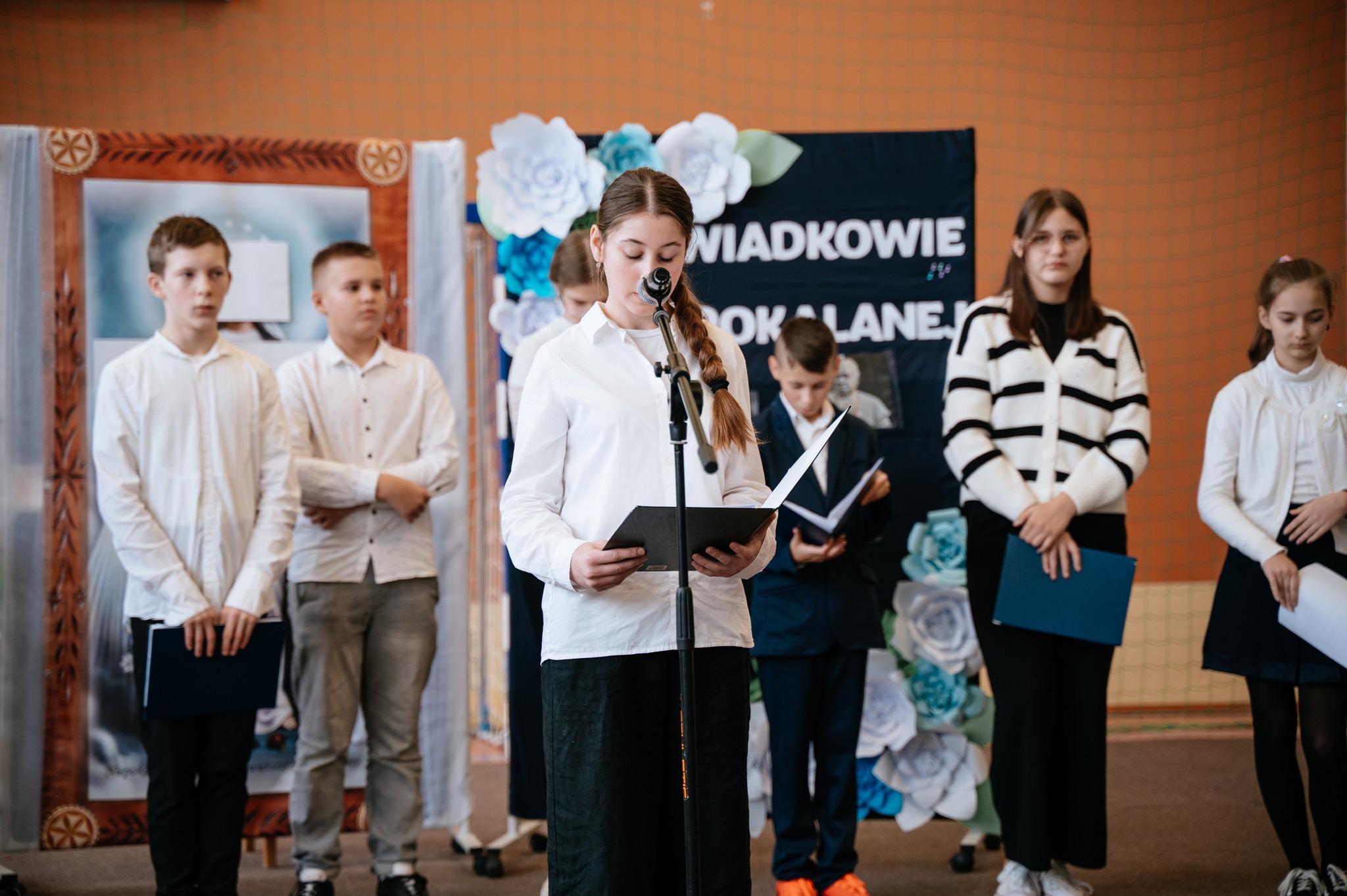 Podczas uroczystości dyrektor szkoły odczytał również list od Prezes Stowarzyszenia, p. Marii Chodkiewicz, skierowany do całej naszej wspólnoty.