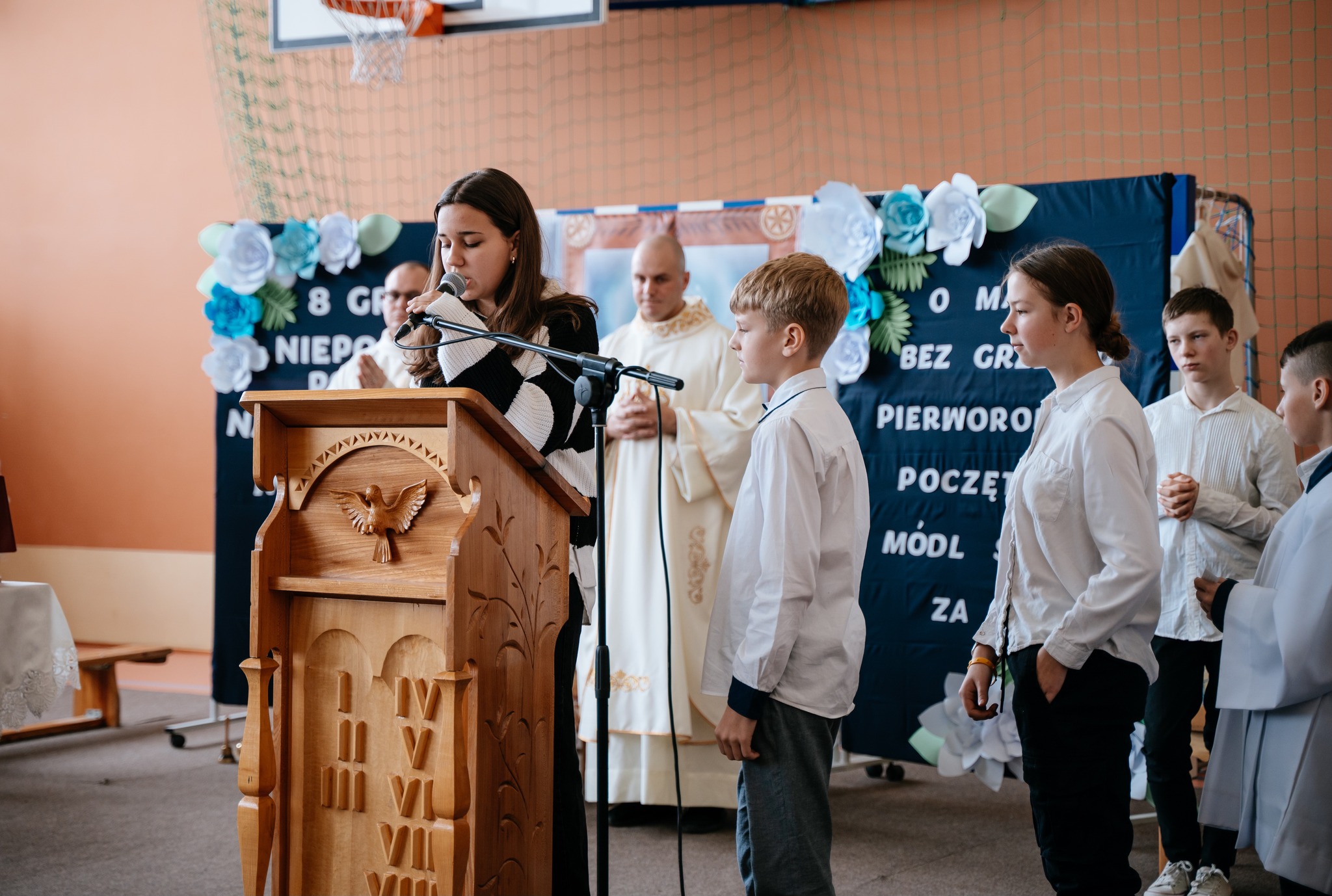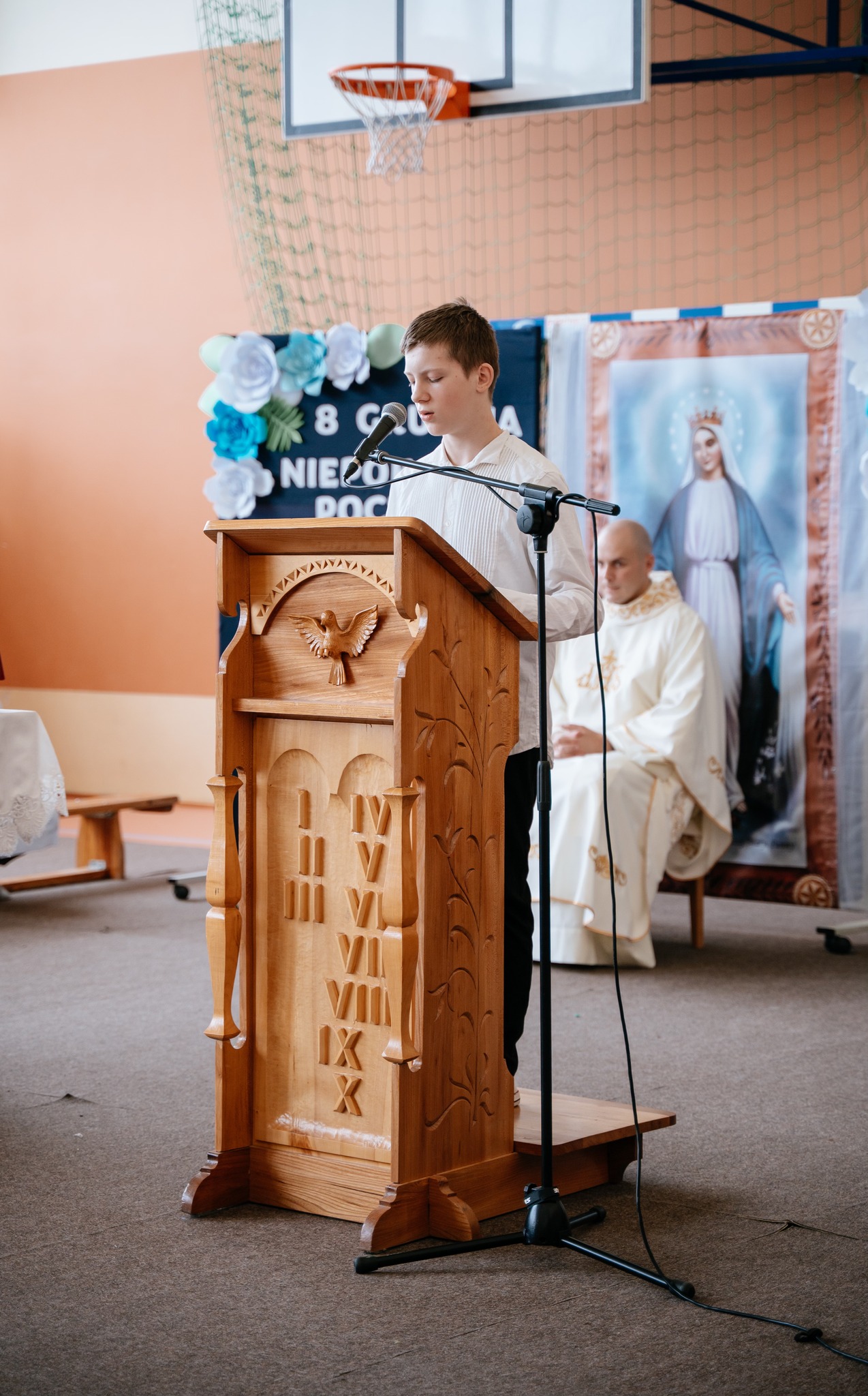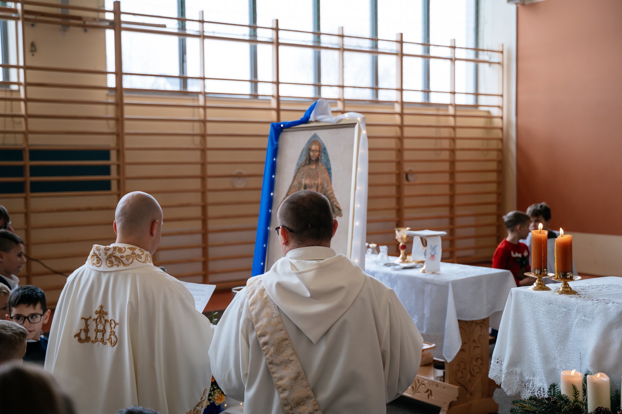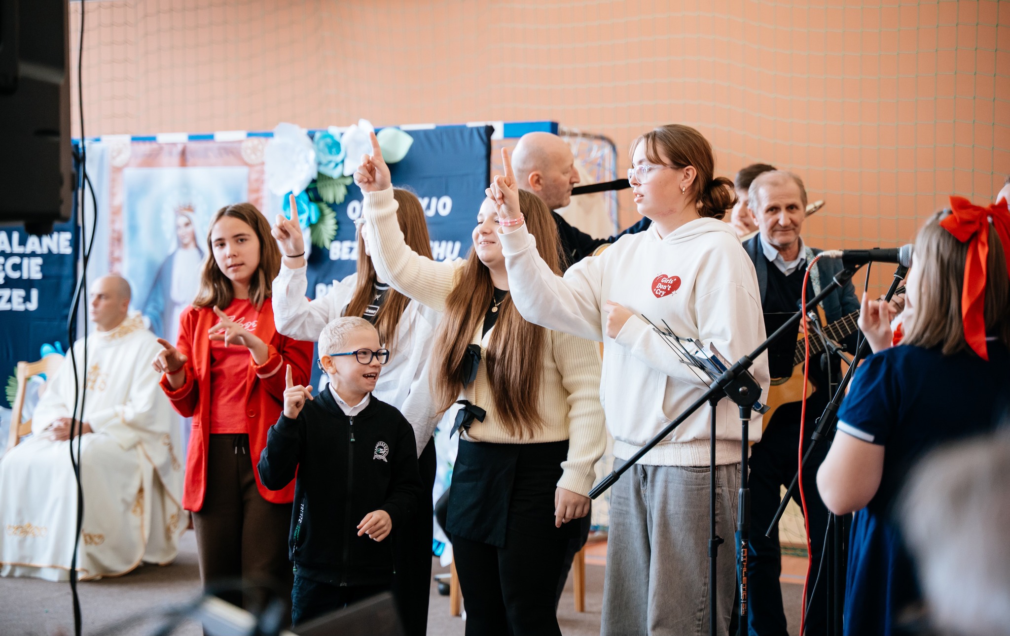 O godzinie 11:00 cała społeczność szkoły i przedszkola uczestniczyła w najważniejszym punkcie dnia — Mszy Świętej, a następnie we wspólnej modlitwie podczas Godziny Łaski, kiedy – jak wierzymy – niebo otwiera się dla wszystkich.