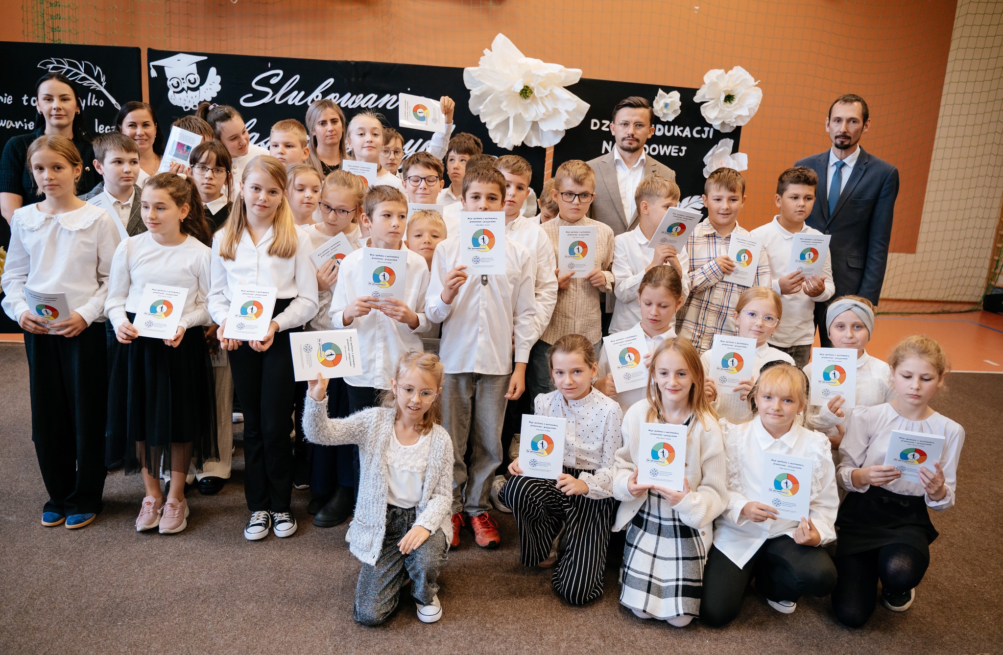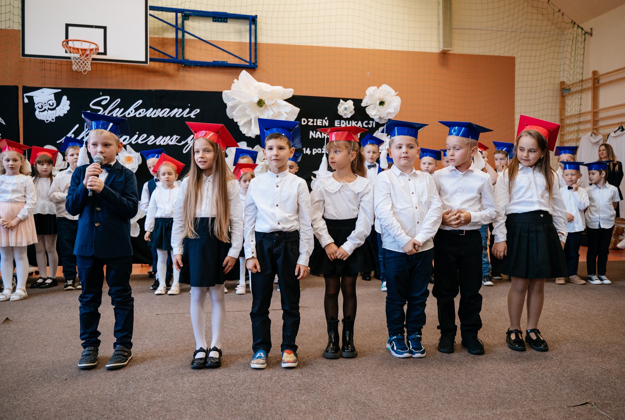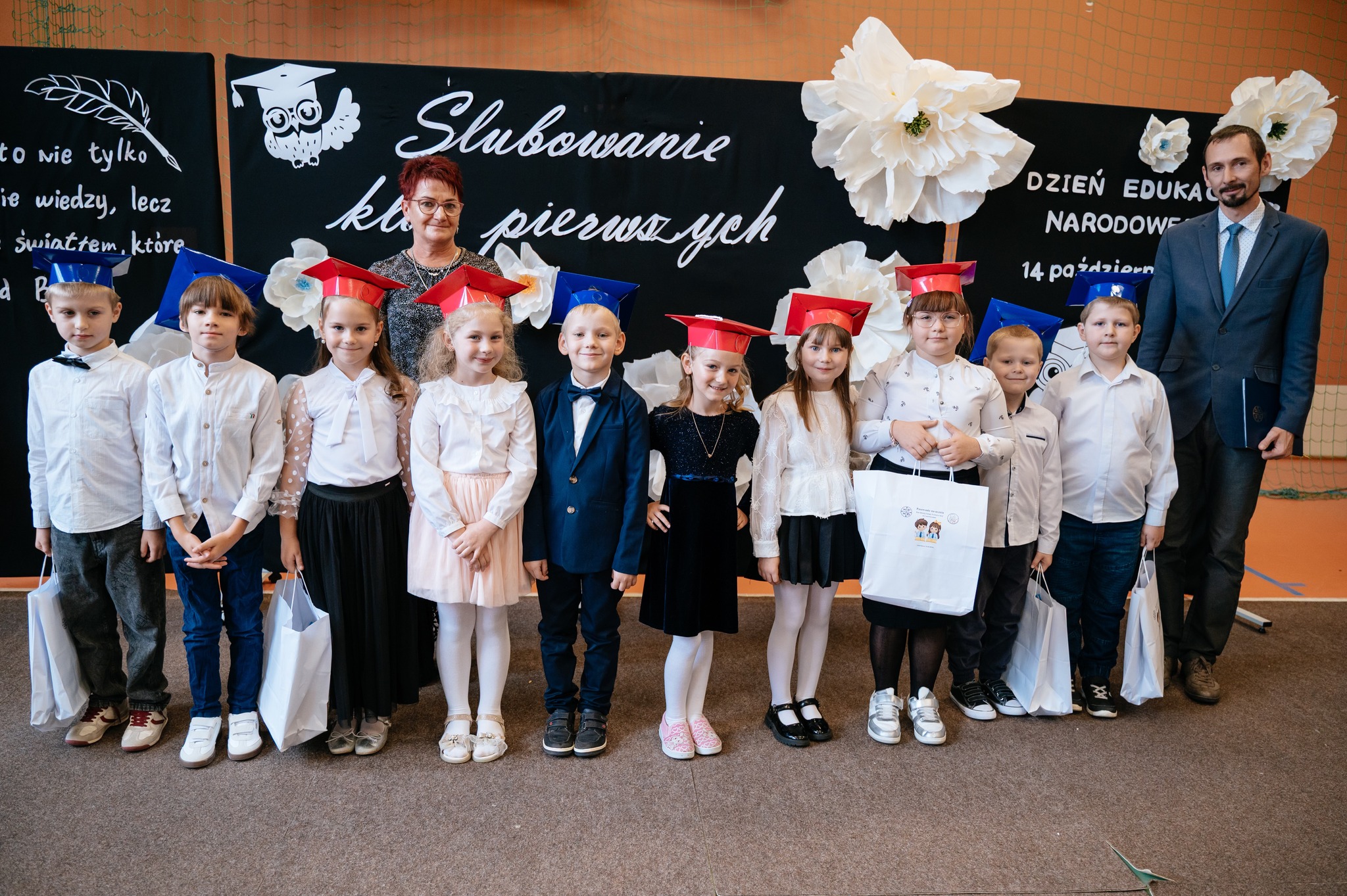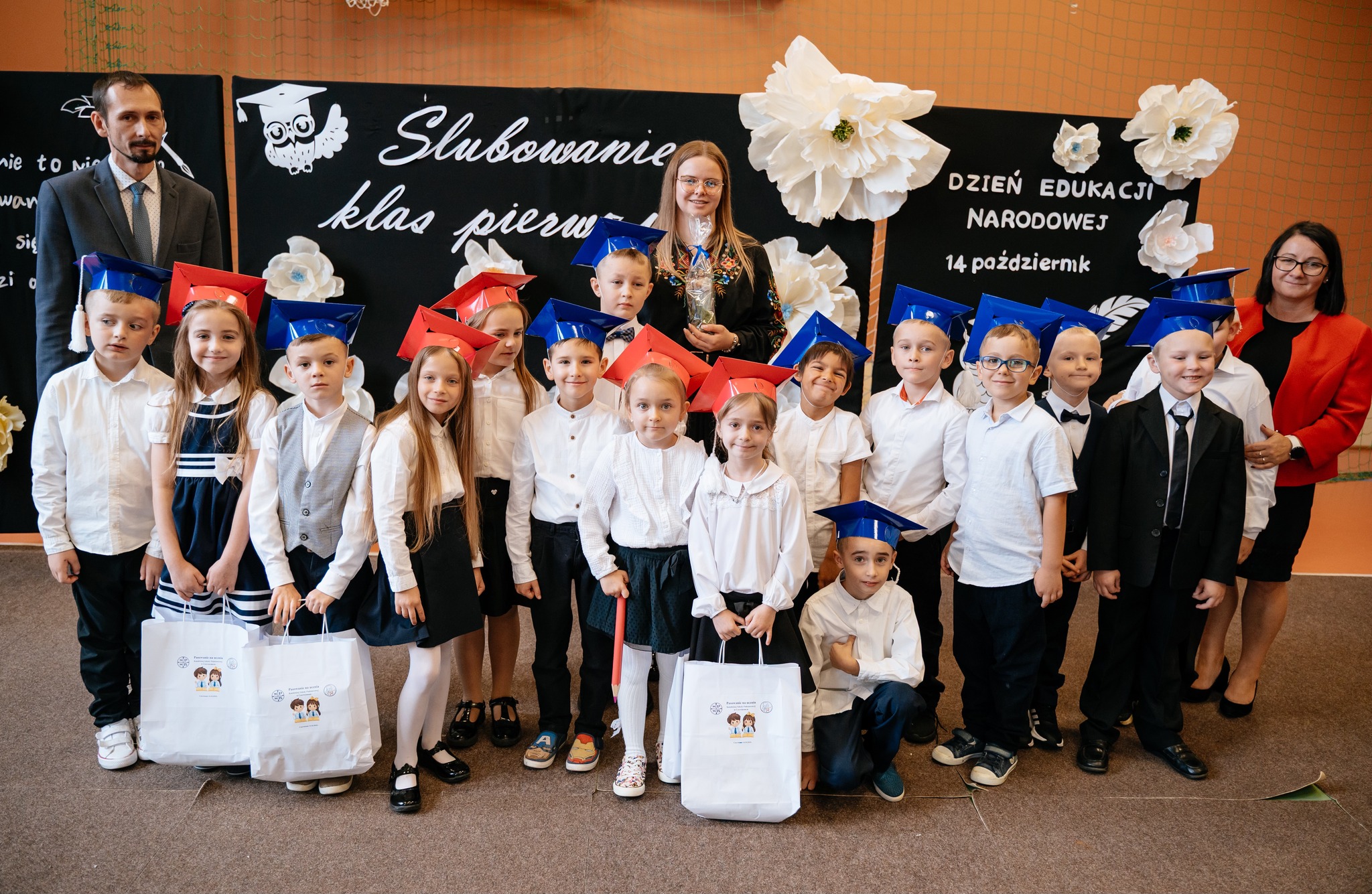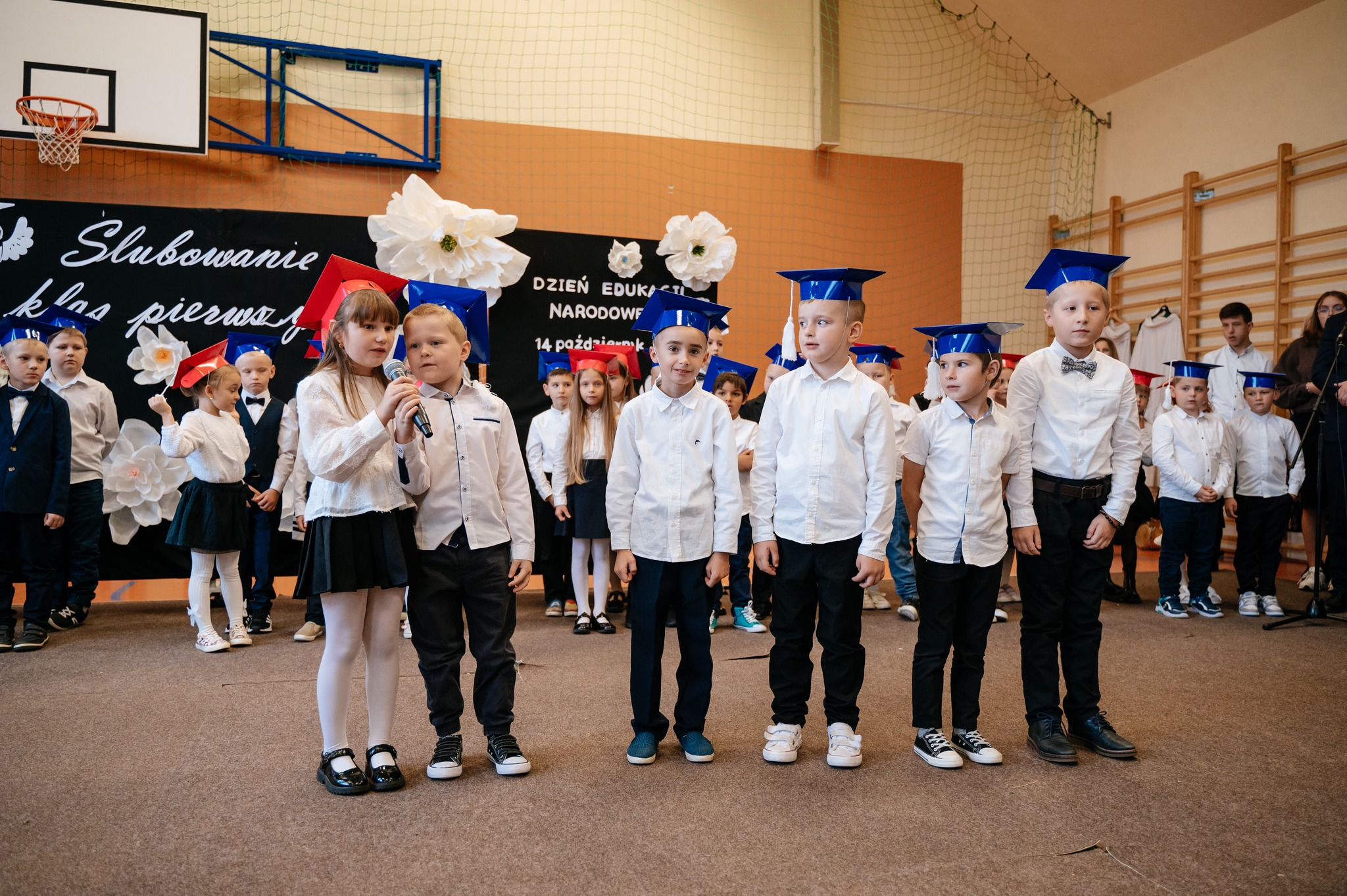 Po mszy odbyło się uroczyste ślubowanie klas pierwszych, połączone z występem artystycznym, który dostarczył wielu wzruszeń i uśmiechów. Następnie uczniowie klasy VII przygotowali część artystyczną nawiązującą do Dnia Edukacji Narodowej, przypominając nam o wartości nauki i wdzięczności wobec pracowników szkoły.