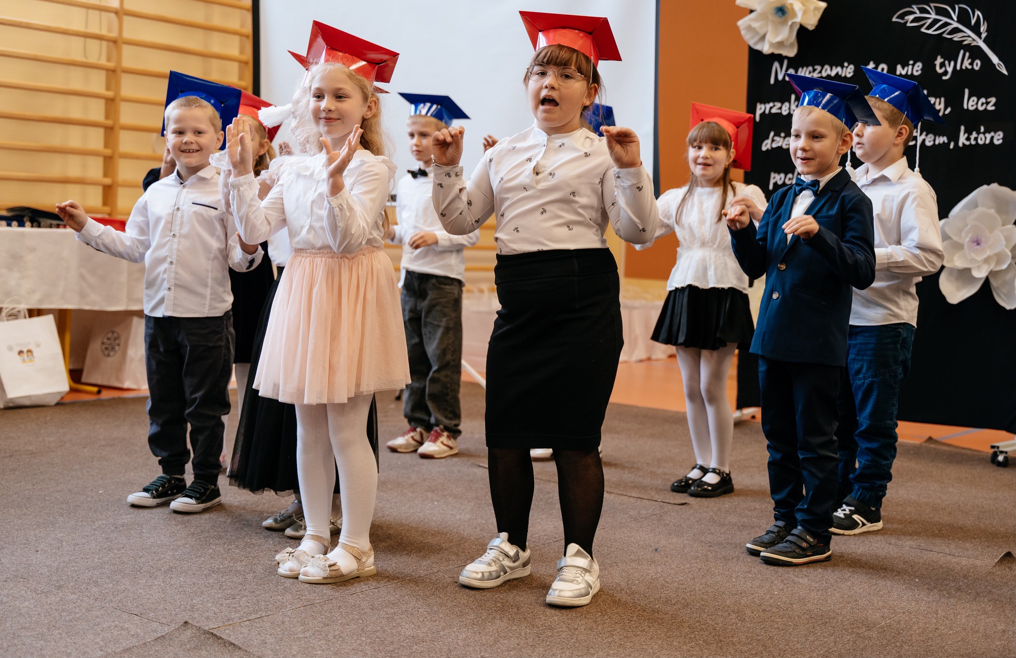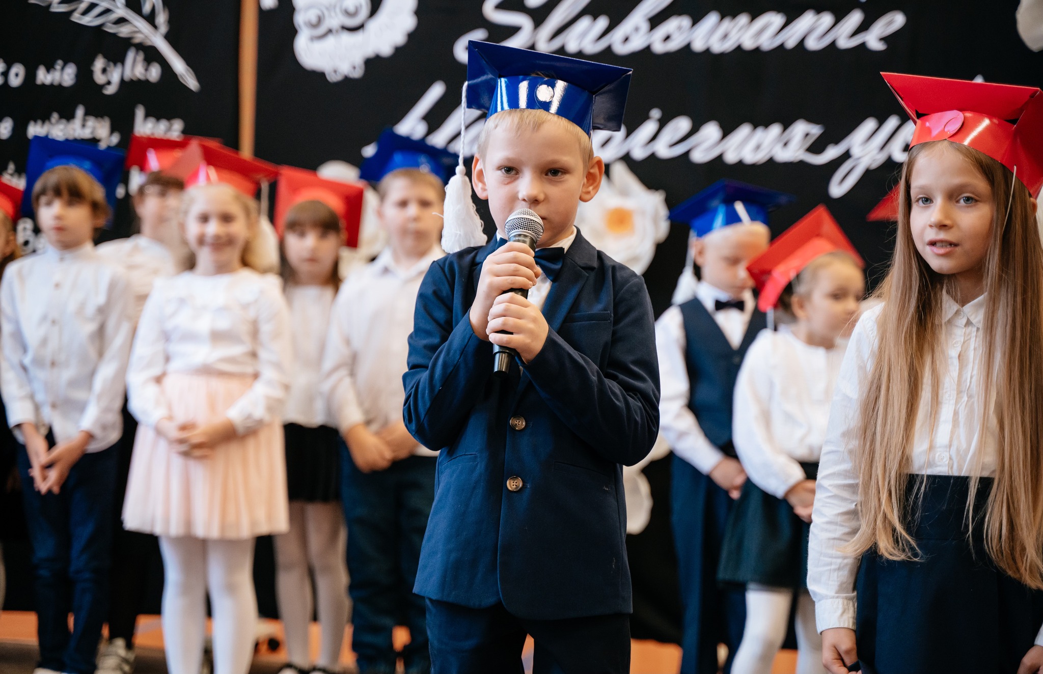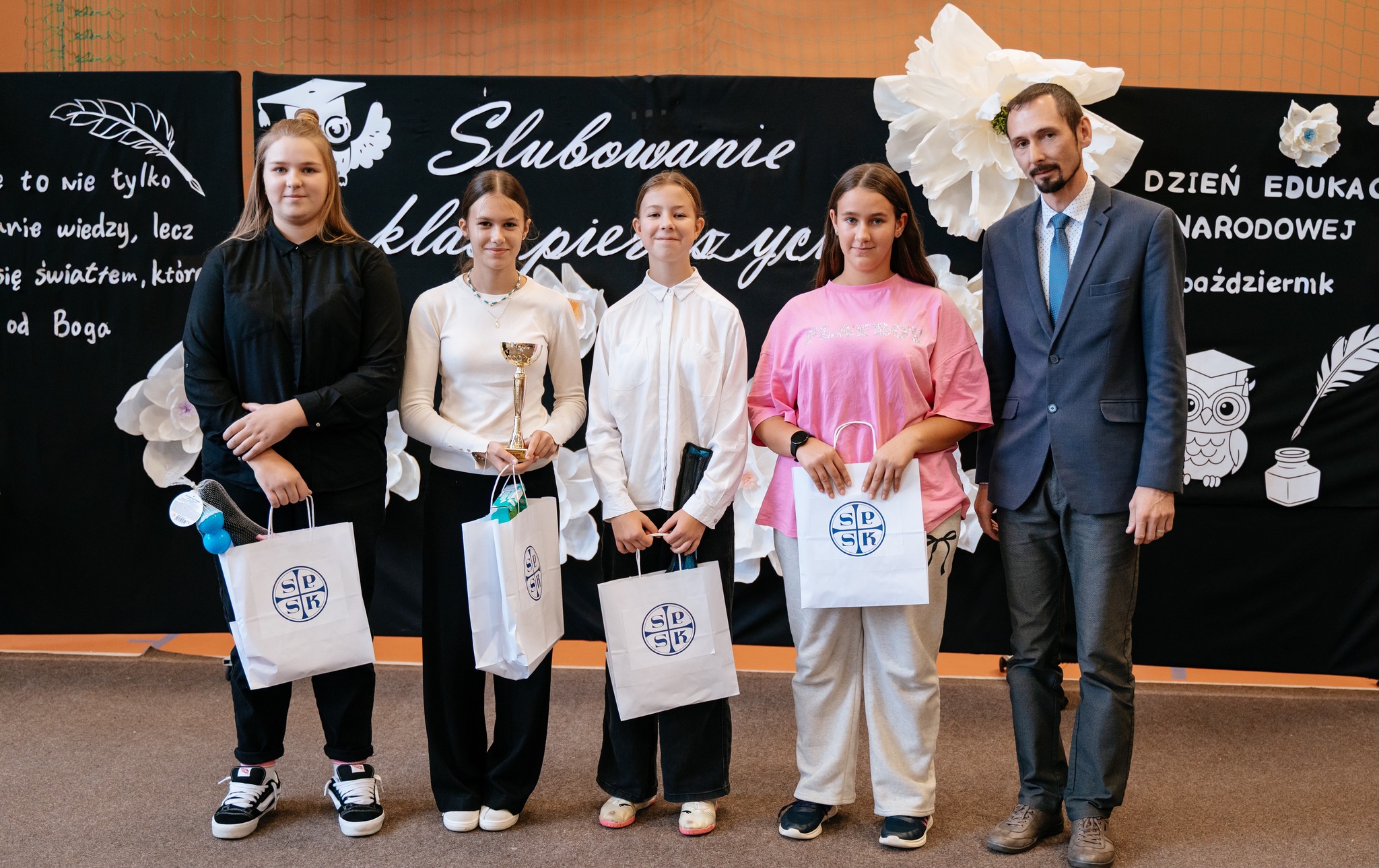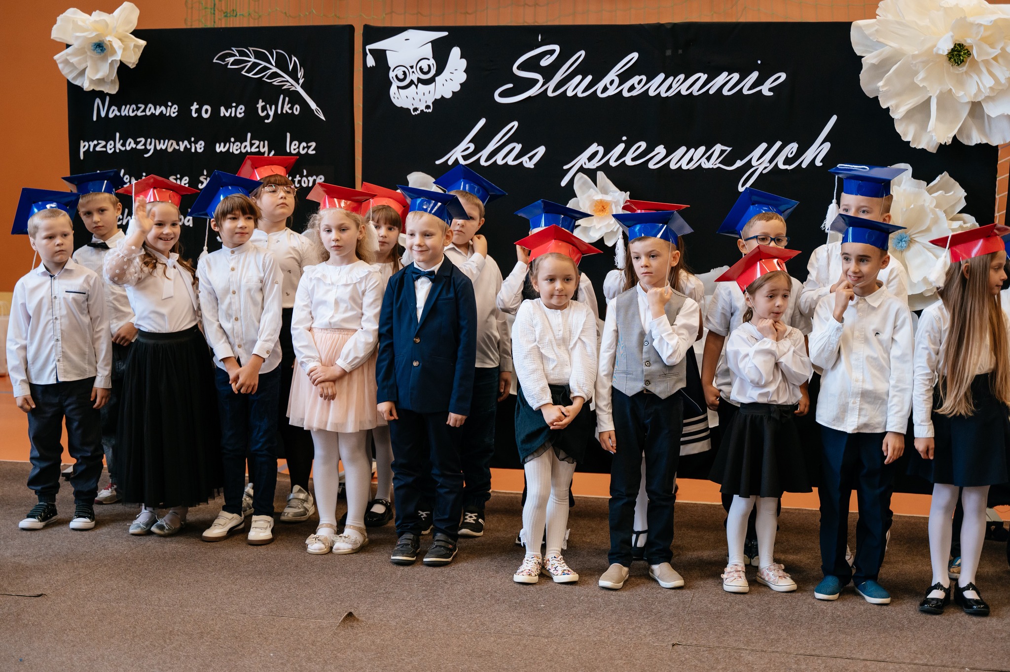 Po mszy odbyło się uroczyste ślubowanie klas pierwszych, połączone z występem artystycznym, który dostarczył wielu wzruszeń i uśmiechów. Następnie uczniowie klasy VII przygotowali część artystyczną nawiązującą do Dnia Edukacji Narodowej, przypominając nam o wartości nauki i wdzięczności wobec pracowników szkoły.