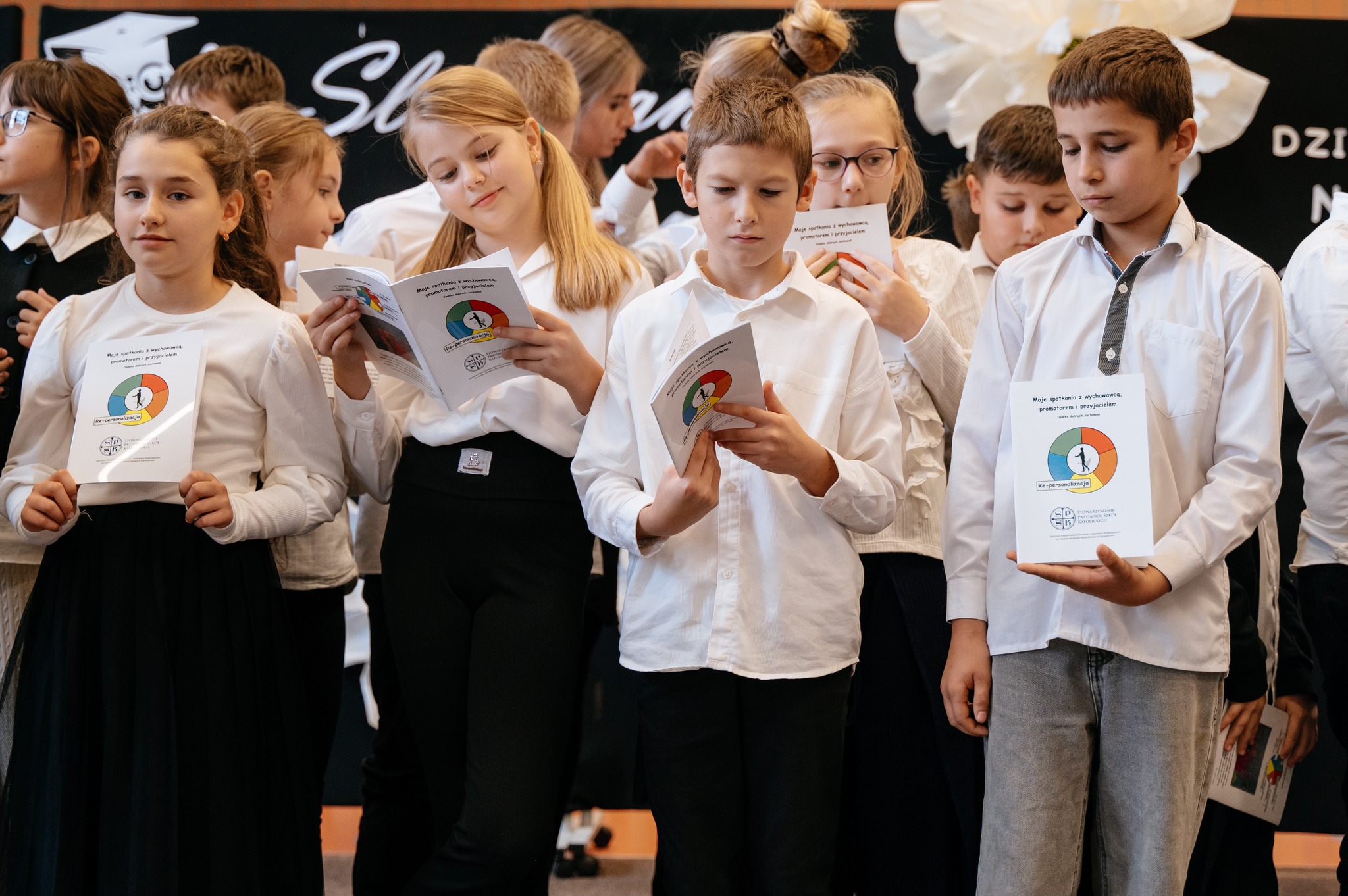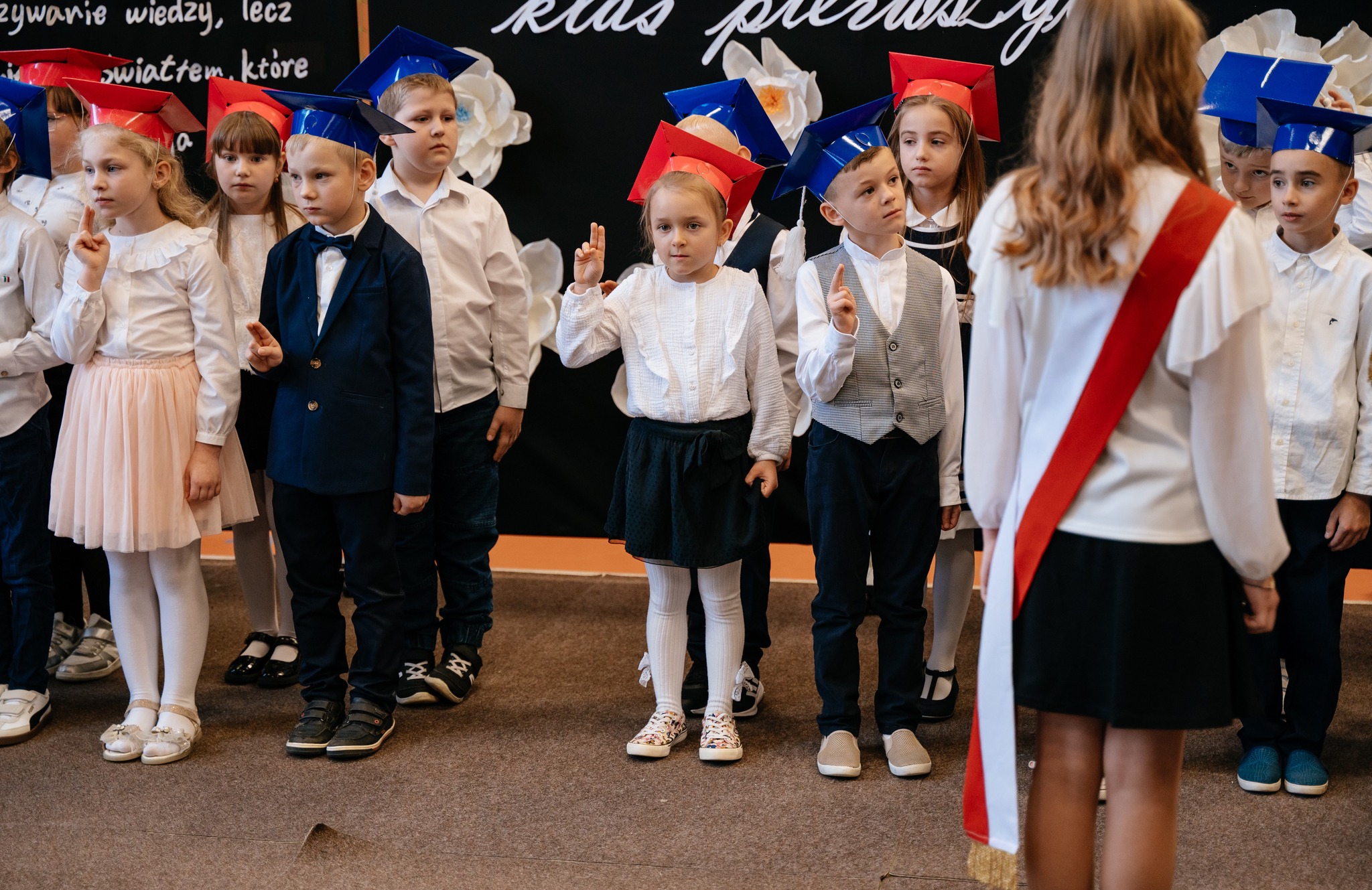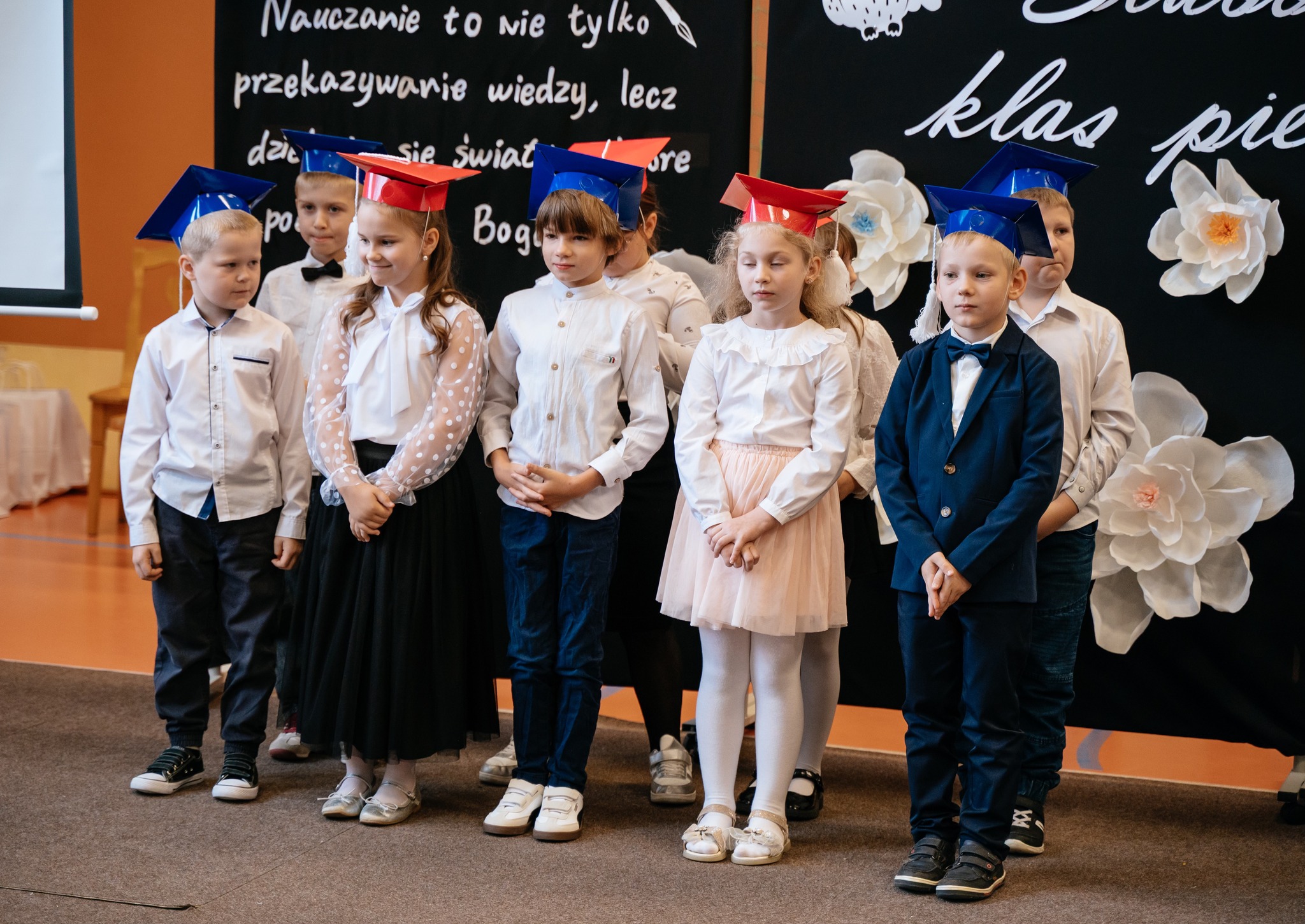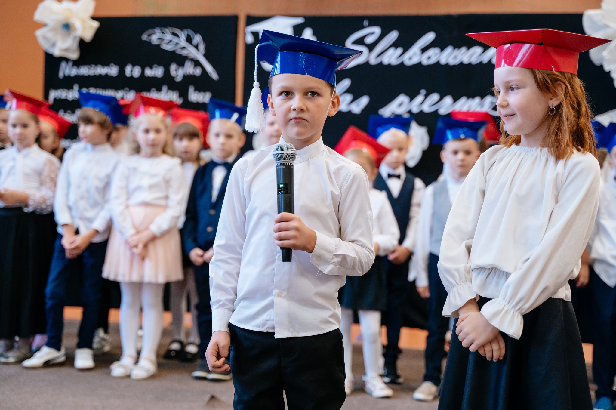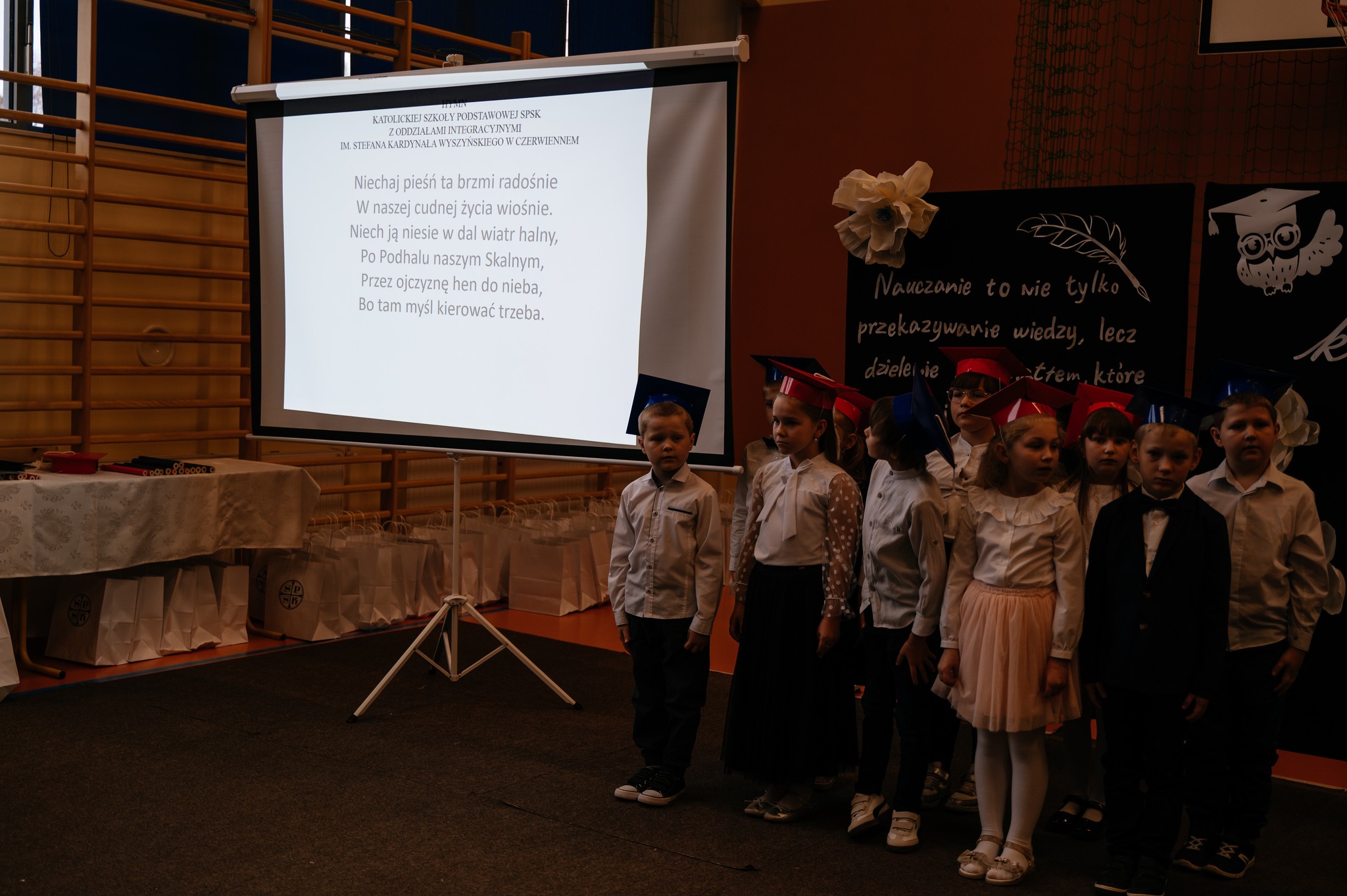 Po mszy odbyło się uroczyste ślubowanie klas pierwszych, połączone z występem artystycznym, który dostarczył wielu wzruszeń i uśmiechów. Następnie uczniowie klasy VII przygotowali część artystyczną nawiązującą do Dnia Edukacji Narodowej, przypominając nam o wartości nauki i wdzięczności wobec pracowników szkoły.