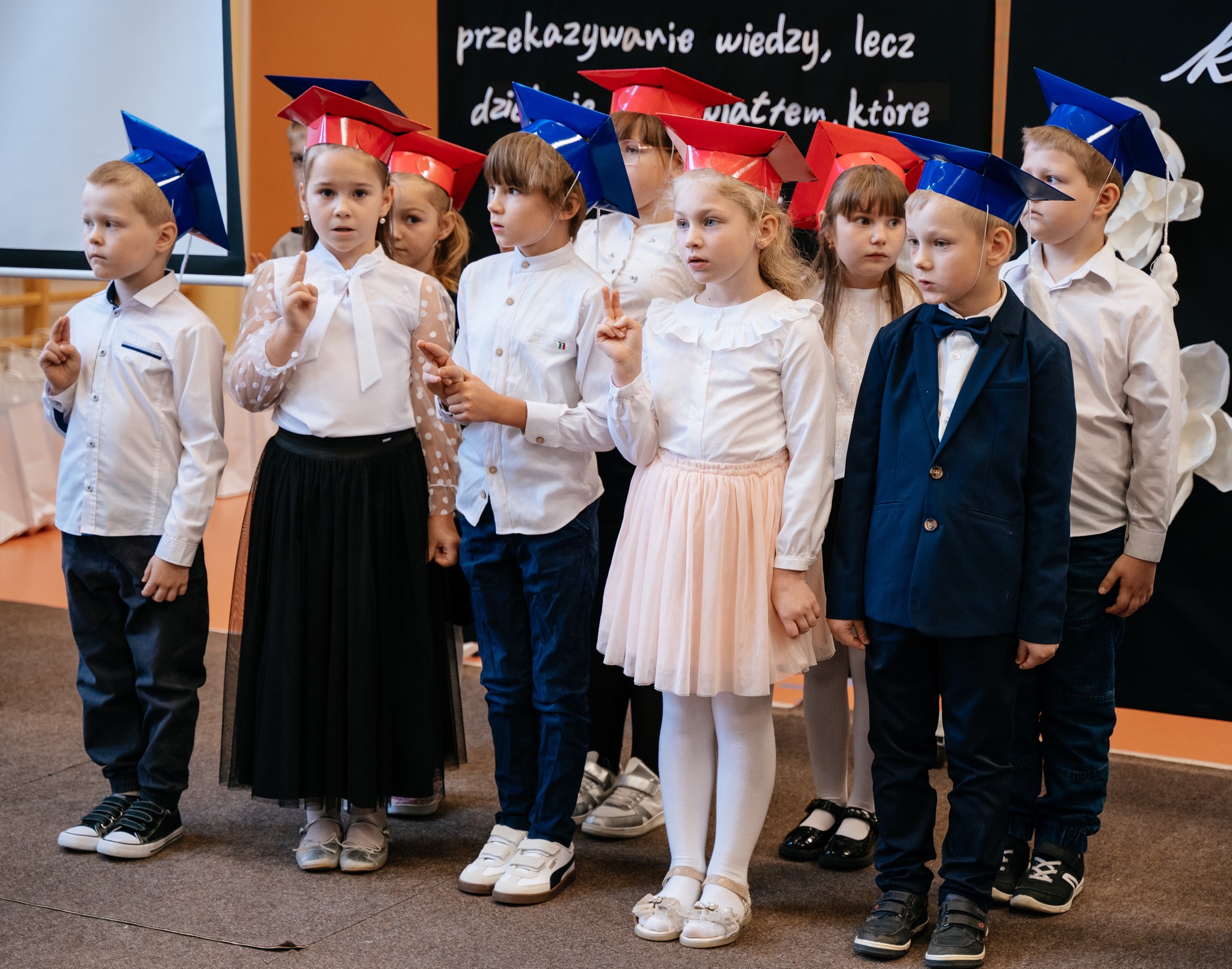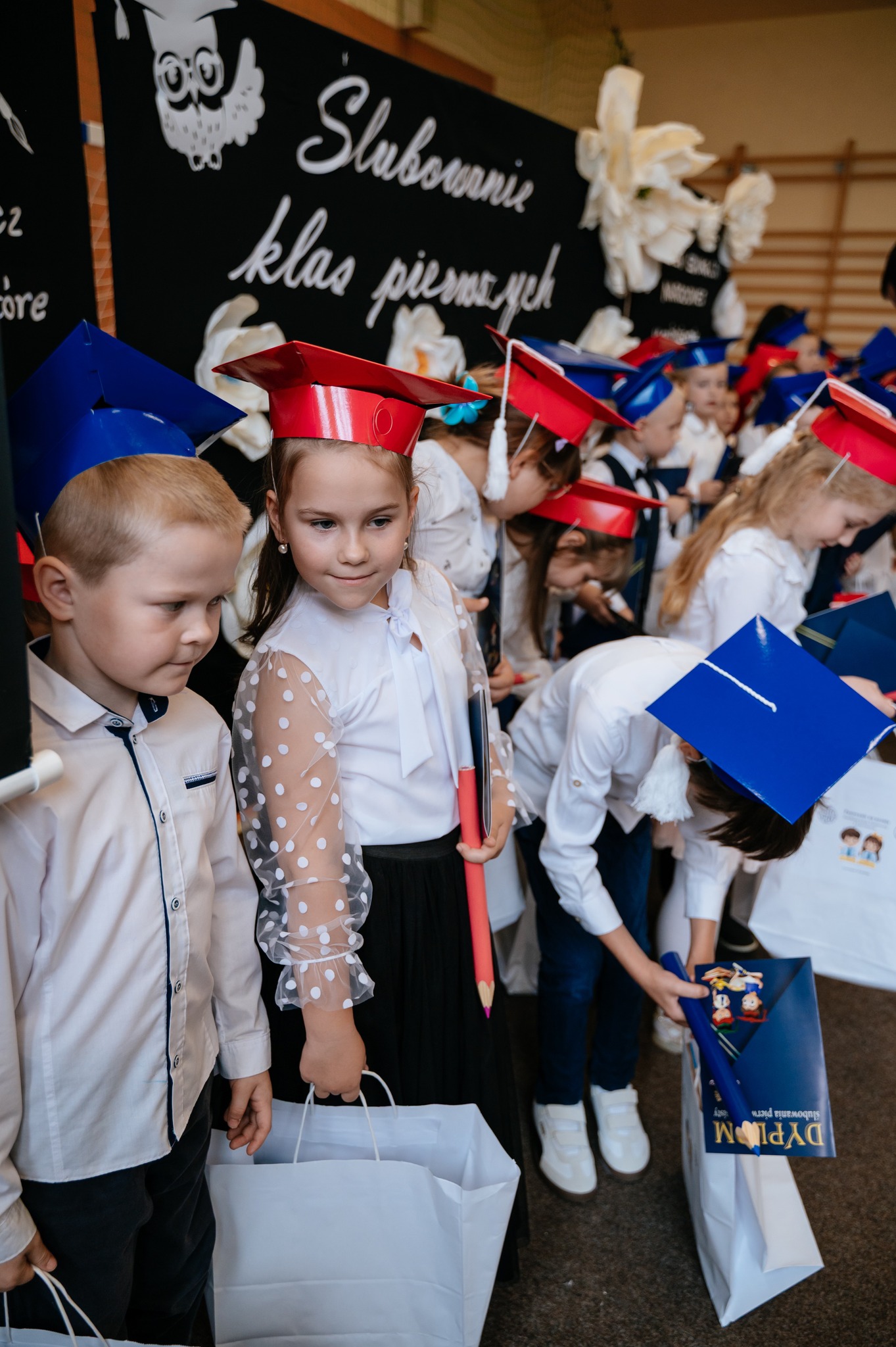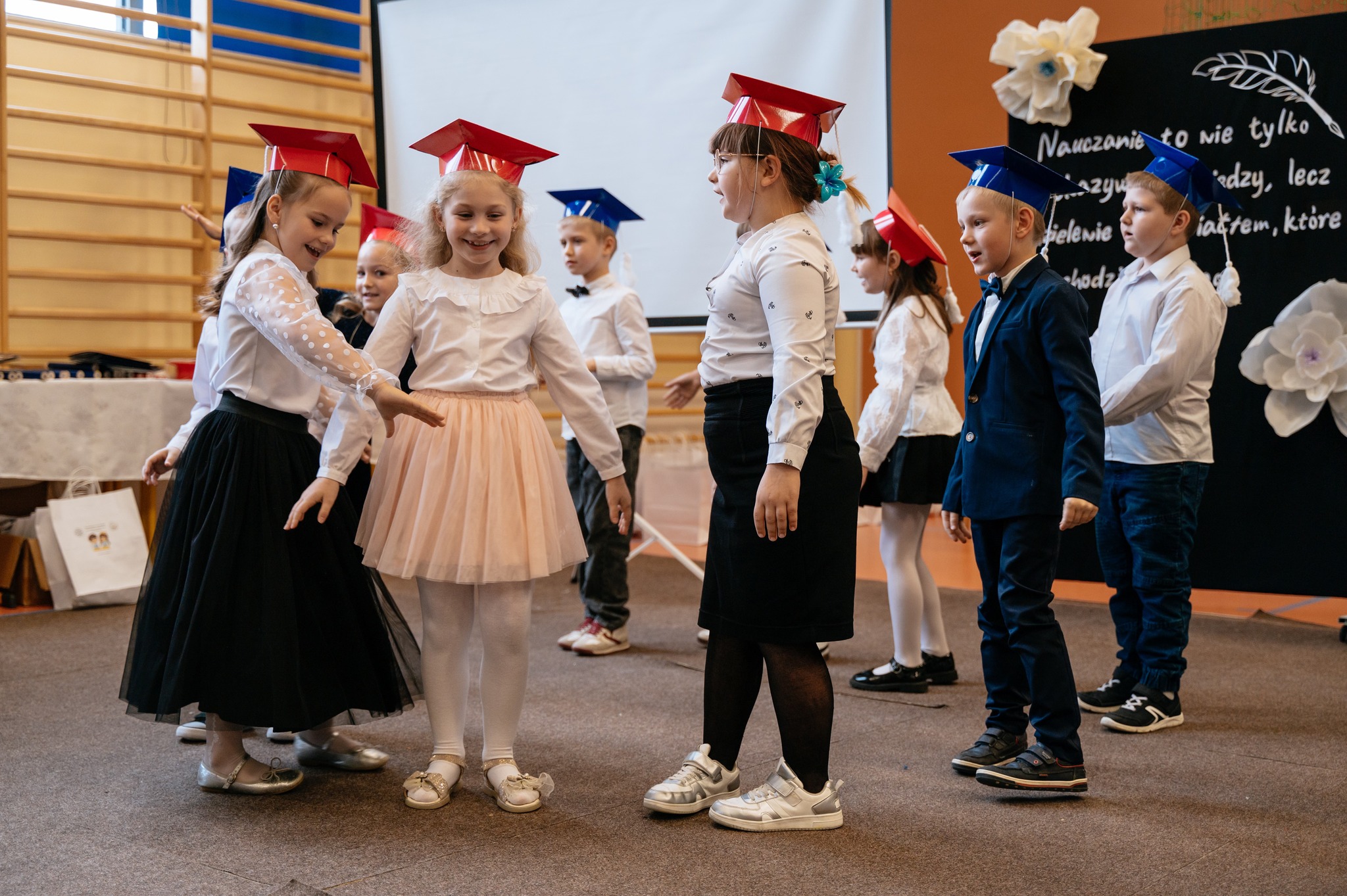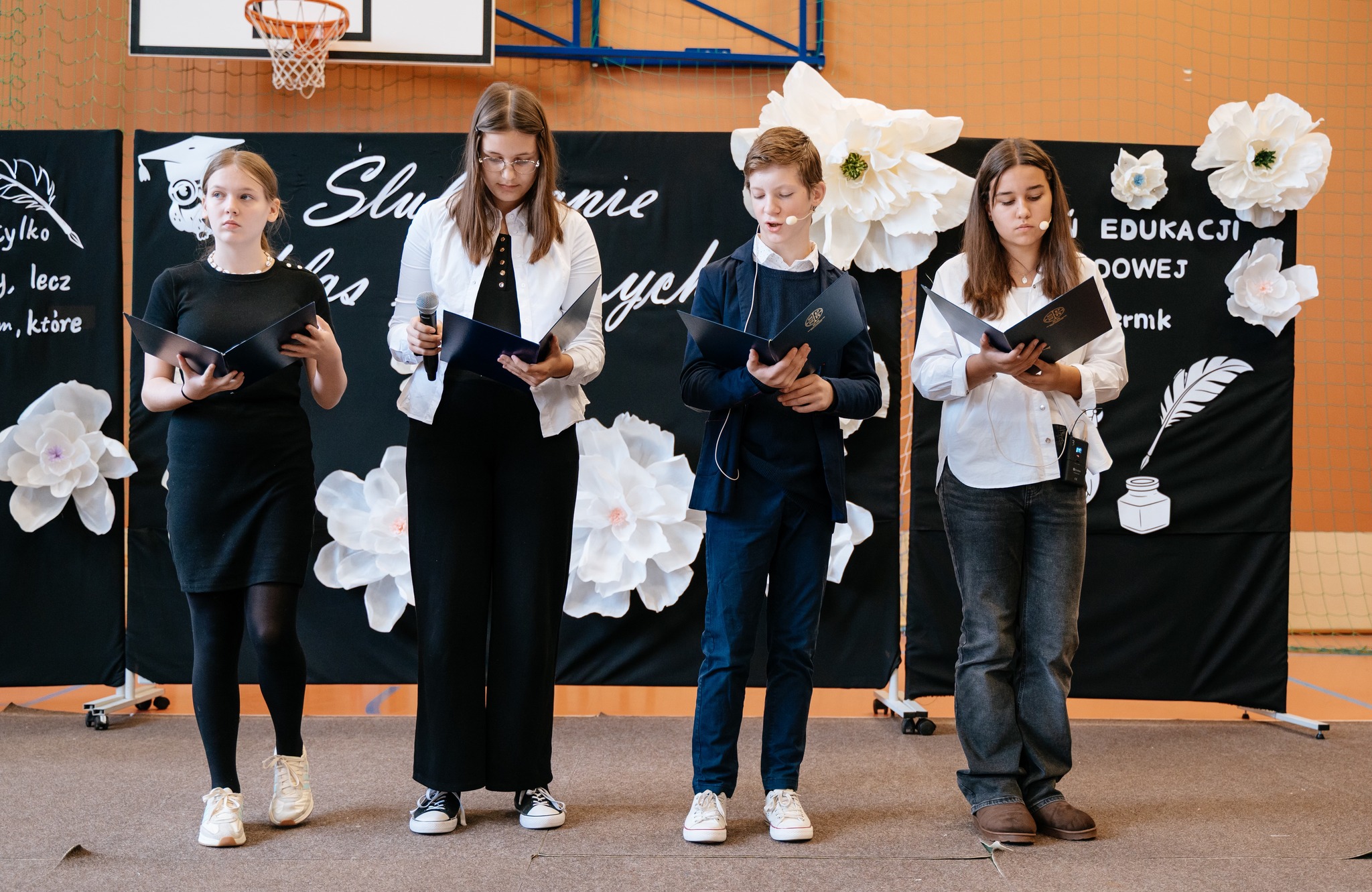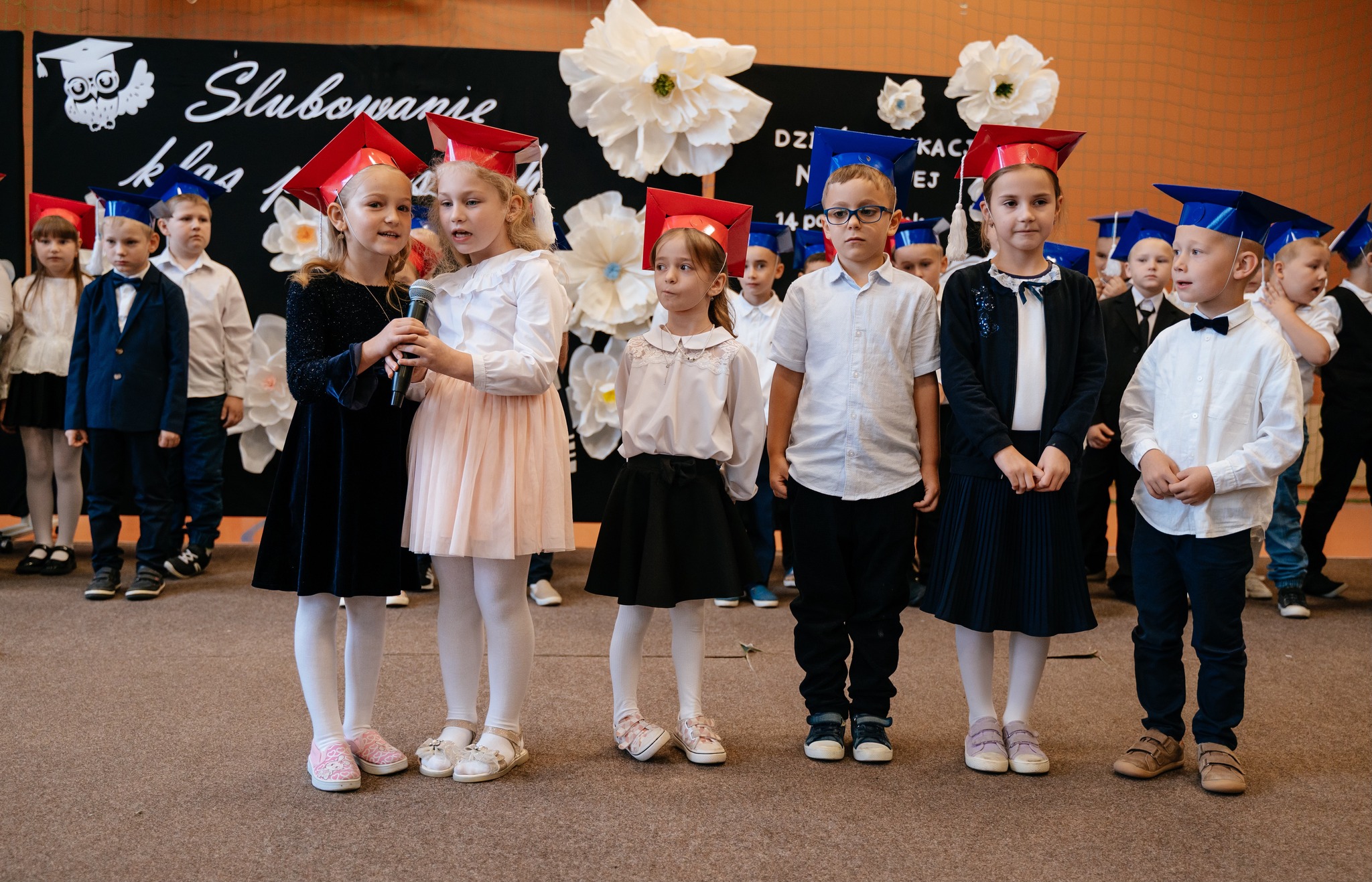 Po mszy odbyło się uroczyste ślubowanie klas pierwszych, połączone z występem artystycznym, który dostarczył wielu wzruszeń i uśmiechów. Następnie uczniowie klasy VII przygotowali część artystyczną nawiązującą do Dnia Edukacji Narodowej, przypominając nam o wartości nauki i wdzięczności wobec pracowników szkoły.