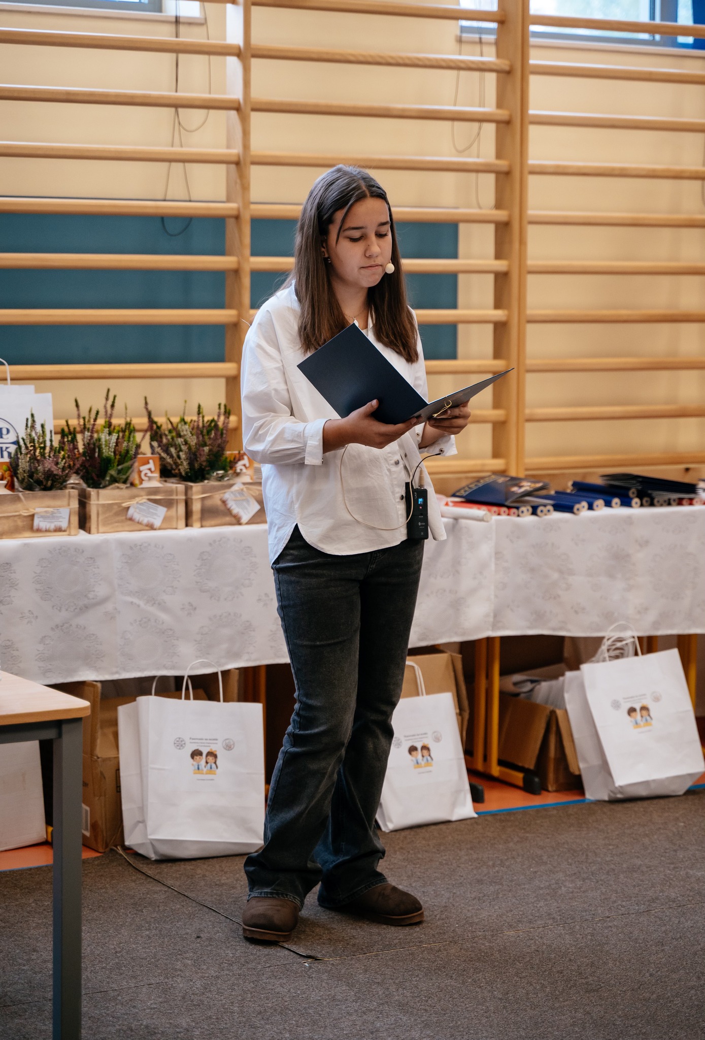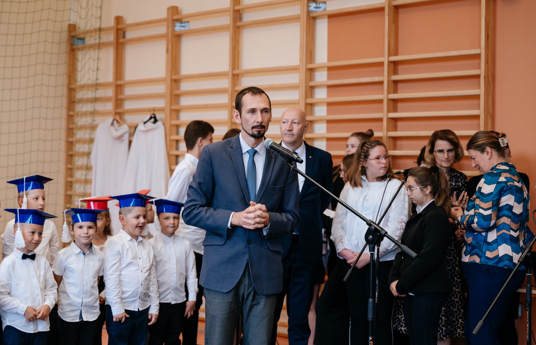 W dalszej części uroczystości dyrektor szkoły poświęcił indeksy, które zostały przekazane uczniom klas czwartych – to ważny symbol kolejnego etapu edukacyjnej drogi.