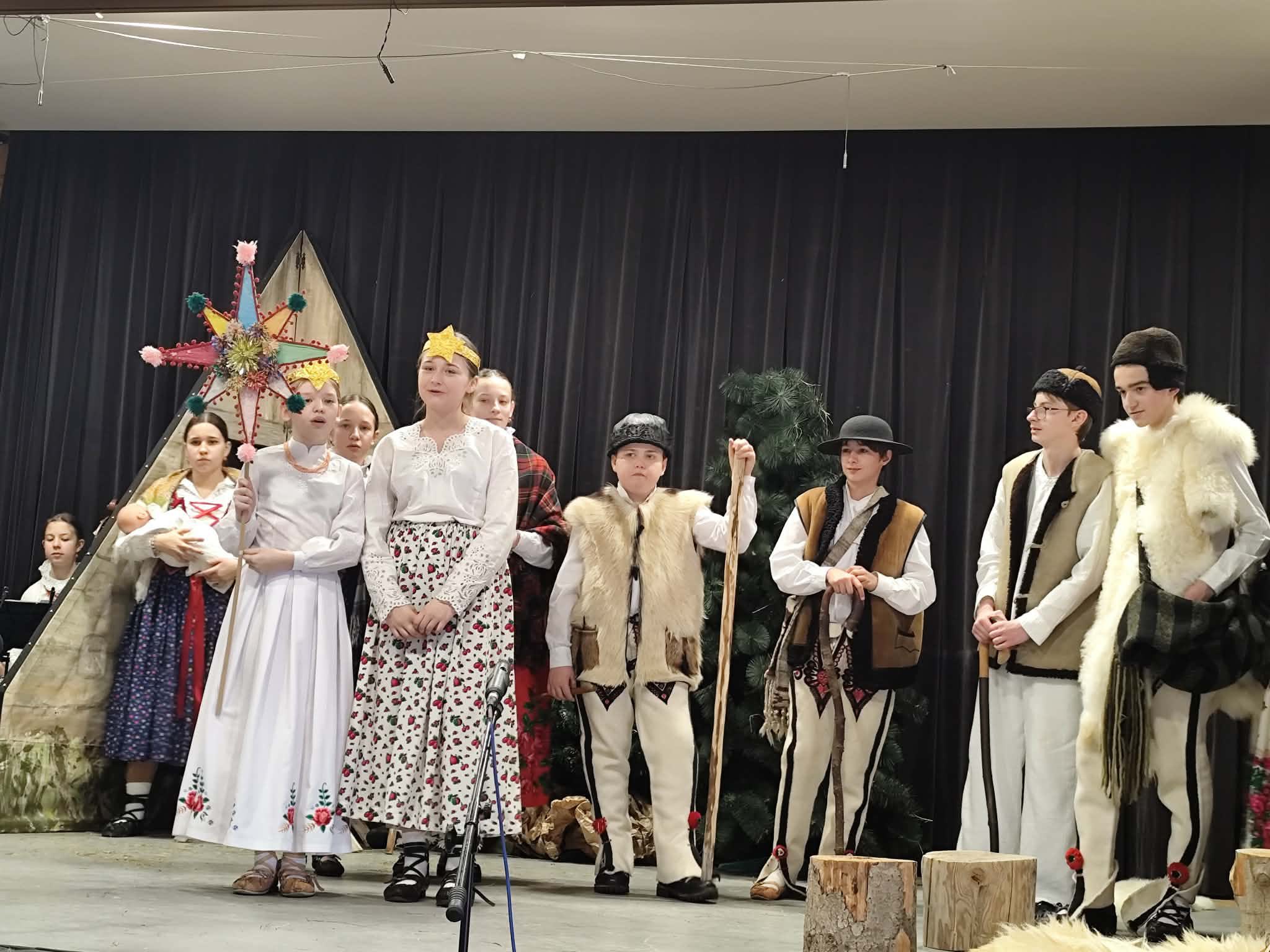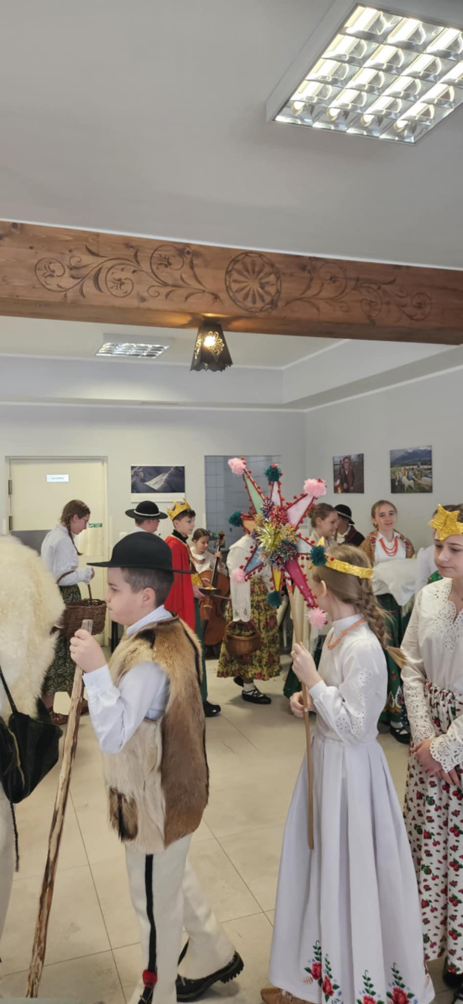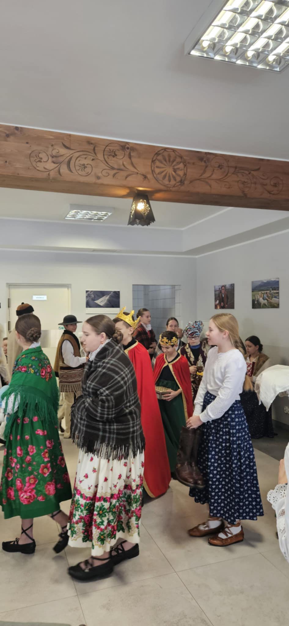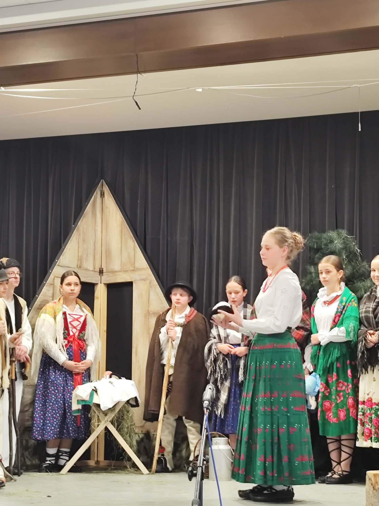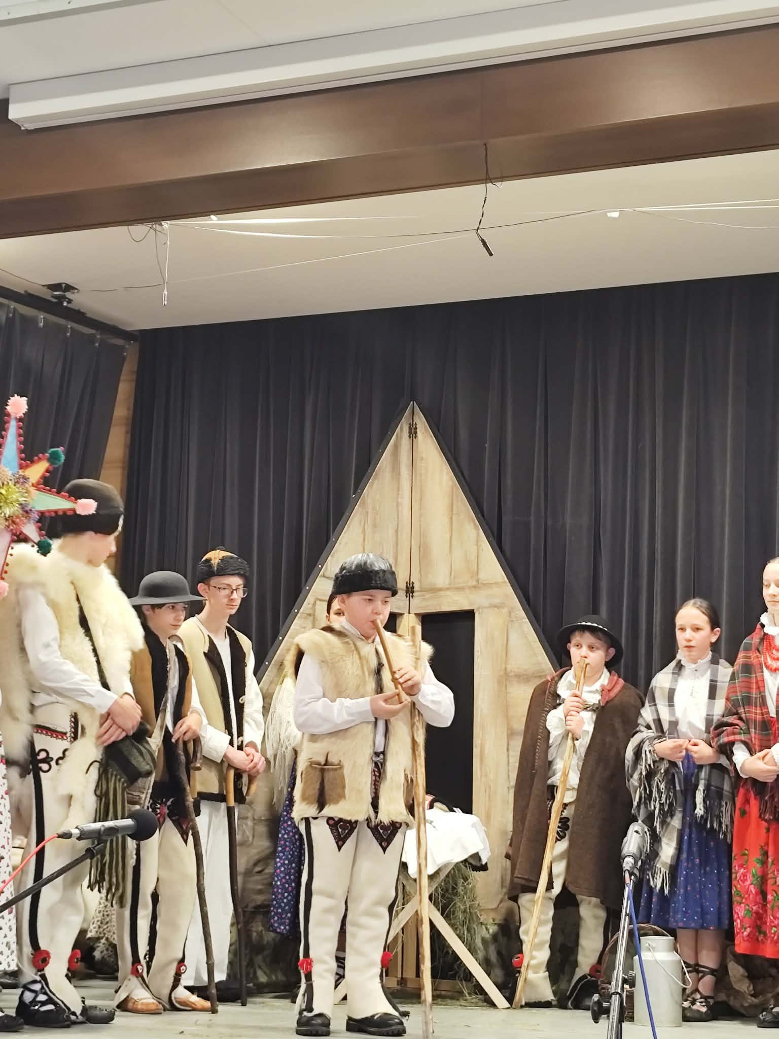 Również dzisiaj ta sama reprezentacja naszej szkoły wzięła udział w XXVI Gminnym Konkursie Jasełek i Grup Kolędniczych, który odbył się w Centrum Kultury i Promocji w Czarnym Dunajcu. Nasi uczniowie zaprezentowali jasełka w całości przygotowane w gwarze góralskiej. Tradycyjne teksty pełne humoru, dźwięki regionalnej muzyki, zdobione stroje, oraz znajomość obyczajów, wprowadziła widzów w prawdziwie świąteczny, podhalański klimat. Jesteśmy dumni z naszych uczniów - włożyli w przygotowania mnóstwo serca i pracy, co było widać w każdej minucie ich przedstawienia. Bez względu na ostateczny wynik, dla nas już są zwycięzcami za piękne kultywowanie naszej tradycji.