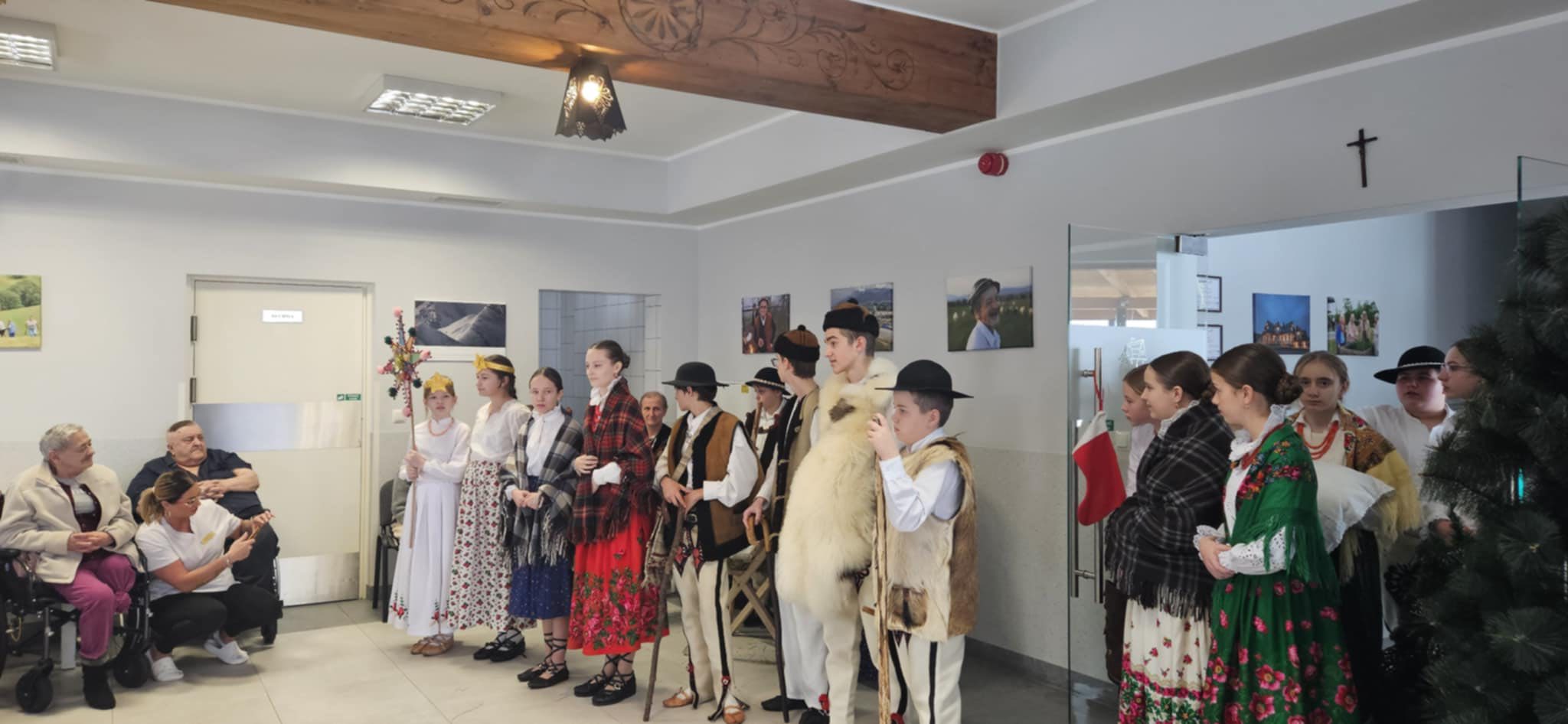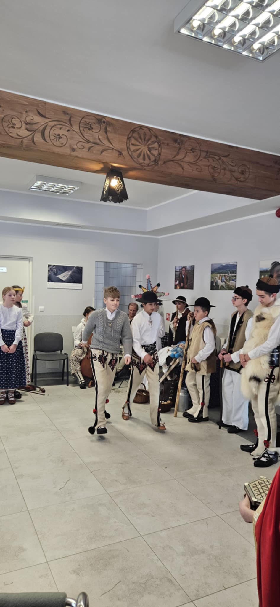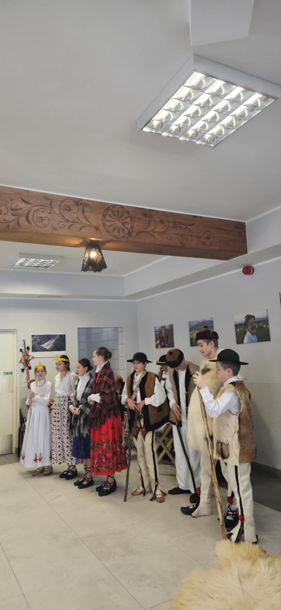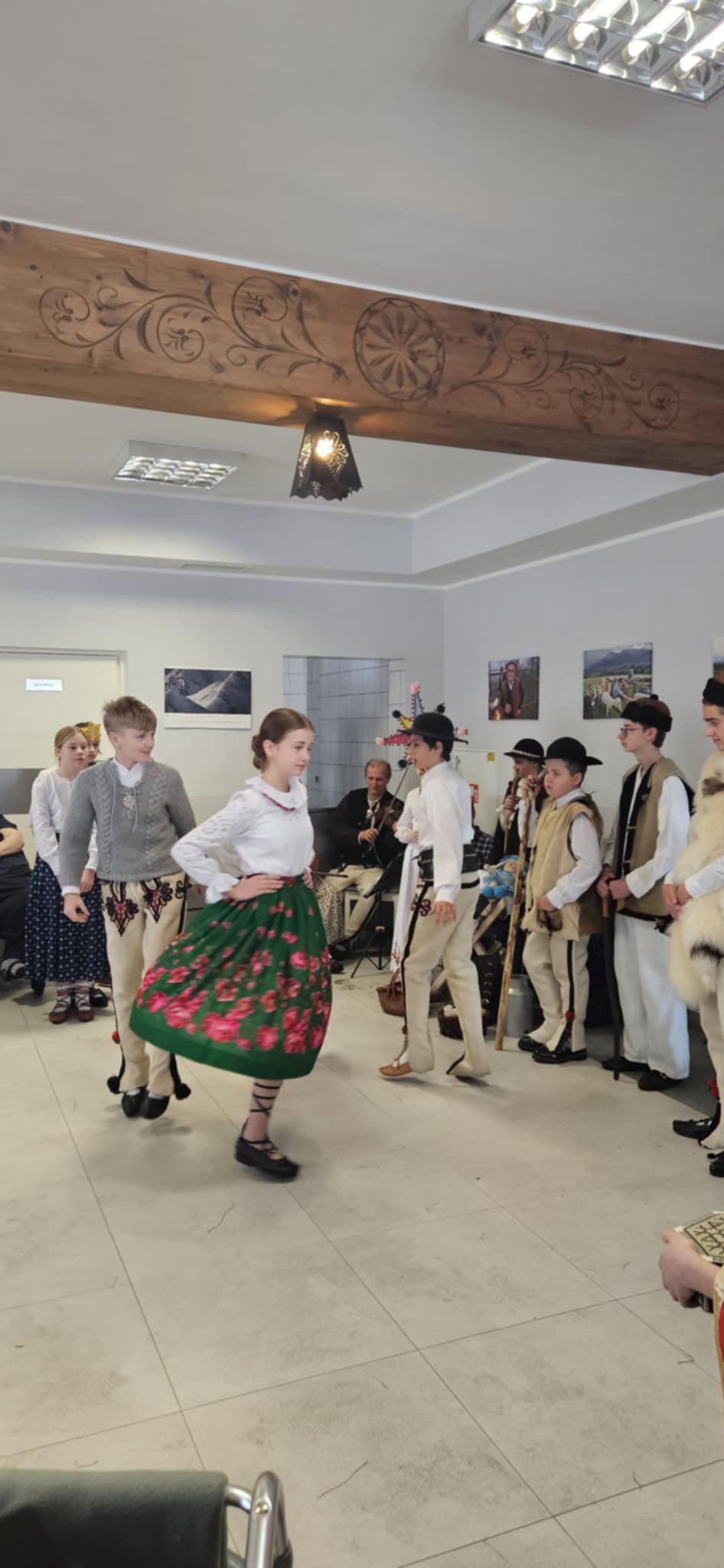 14 stycznia w murach Domu Seniora Nad Młynem, młodość spotkała się z doświadczeniem. Uczniowie naszej szkoły przedstawili góralskie jasełka, które na moment zatrzymały czas. W blasku betlejemskiej gwiazdy i dźwiękach kolęd, seniorzy odnaleźli cząstkę własnej młodości, a nasi uczniowie w oczach seniorów odkryli najwyższą nagrodę za swój trud – autentyczne wzruszenie i szacunek. Dla seniorów Podhala tradycja góralska, to fundament ich tożsamości. Pokazaliśmy jak nasze dziedzictwo staje się wspólną przestrzenią dla pełnych energii uczniów i bogatych w mądrość życiową seniorów, tworząc ten wyjątkowy most łączący pokolenia. Most pokoleń, to nie tylko metafora, to żywa relacja, którą budowaliśmy dźwiękiem skrzypiec i wspólnym śpiewem. To właśnie w takich chwilach jasełka przestają być szkolnym obowiązkiem, a stają się prawdziwym spotkaniem człowieka z człowiekiem. Seniorzy oglądając przedstawienie odnaleźli w nim cząstkę własnej młodości i dowód na to, że góralska dusza nie zna granic wieku. Odbiorcy nie widzieli tylko uczniów naszej szkoły, lecz przede wszystkim młode pokolenie, które dumnie prezentuje tradycje góralskie, oraz strażników podhalańskich wartości udowadniając, że nasze dziedzictwo jest w dobrych rękach.