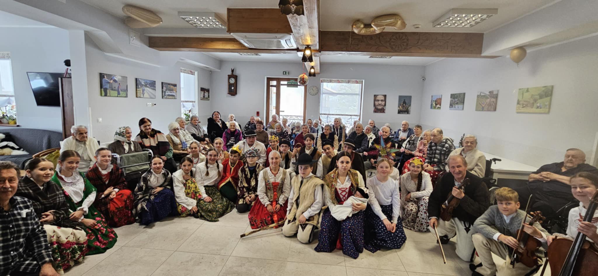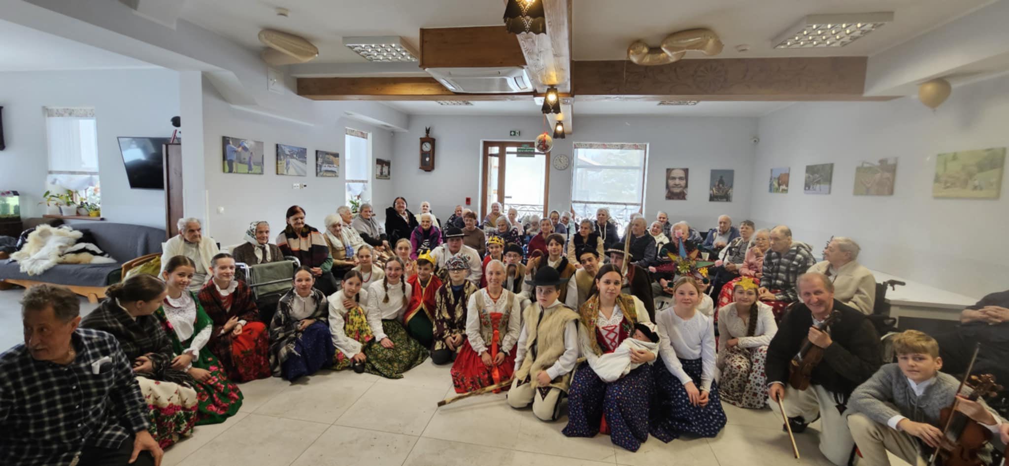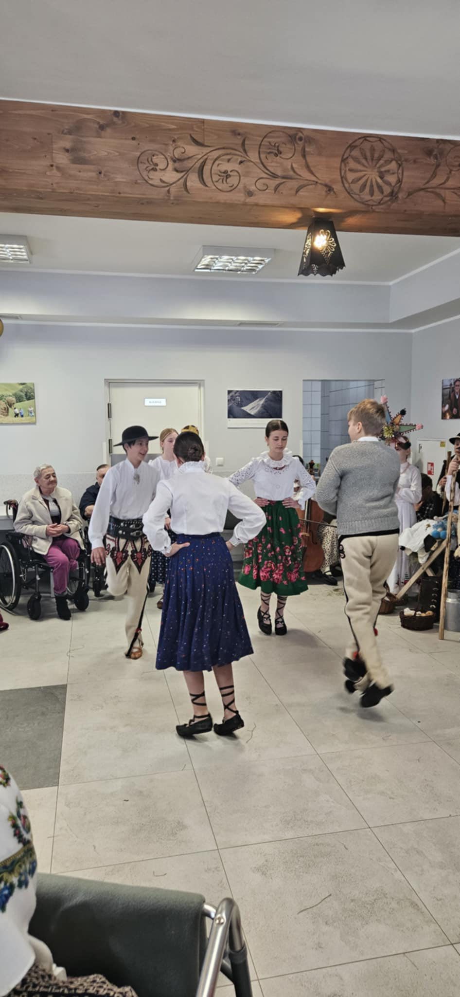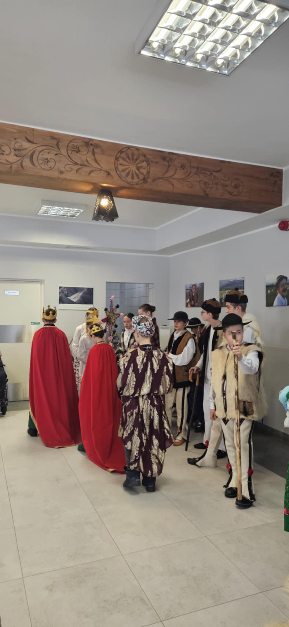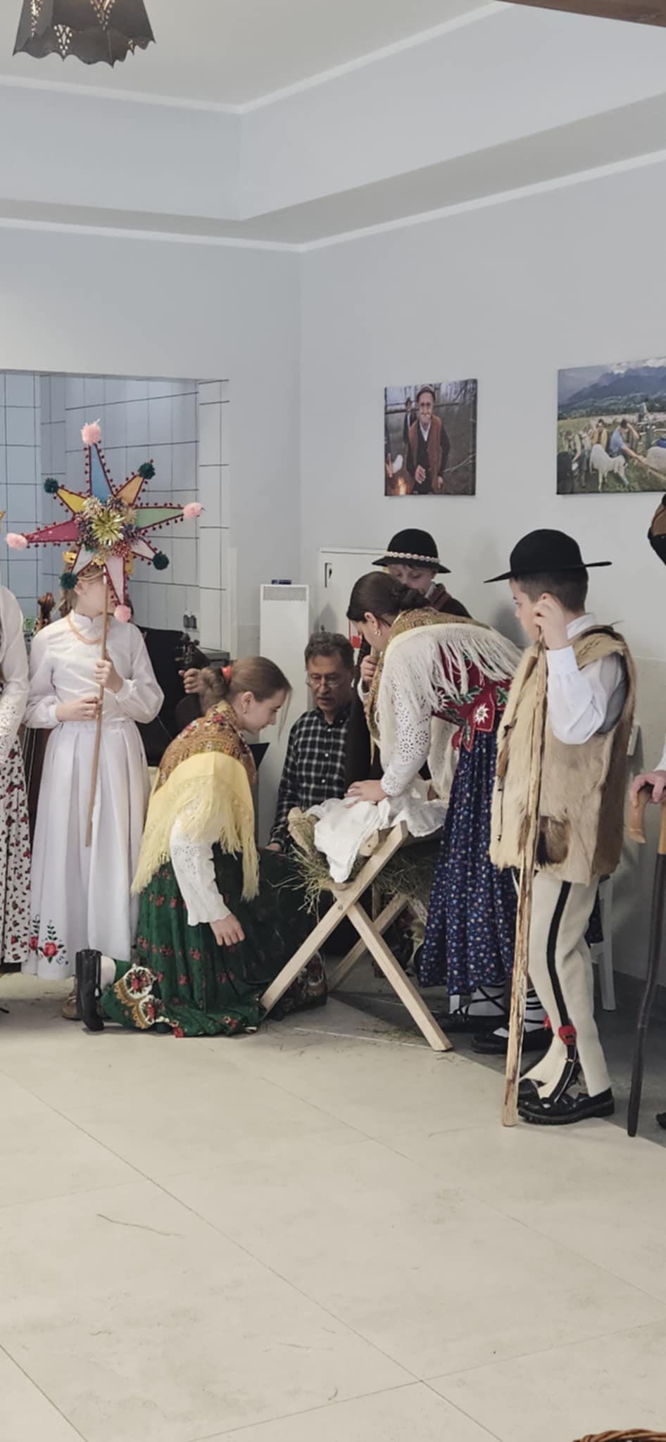 14 stycznia w murach Domu Seniora Nad Młynem, młodość spotkała się z doświadczeniem. Uczniowie naszej szkoły przedstawili góralskie jasełka, które na moment zatrzymały czas. W blasku betlejemskiej gwiazdy i dźwiękach kolęd, seniorzy odnaleźli cząstkę własnej młodości, a nasi uczniowie w oczach seniorów odkryli najwyższą nagrodę za swój trud – autentyczne wzruszenie i szacunek. Dla seniorów Podhala tradycja góralska, to fundament ich tożsamości. Pokazaliśmy jak nasze dziedzictwo staje się wspólną przestrzenią dla pełnych energii uczniów i bogatych w mądrość życiową seniorów, tworząc ten wyjątkowy most łączący pokolenia. Most pokoleń, to nie tylko metafora, to żywa relacja, którą budowaliśmy dźwiękiem skrzypiec i wspólnym śpiewem. To właśnie w takich chwilach jasełka przestają być szkolnym obowiązkiem, a stają się prawdziwym spotkaniem człowieka z człowiekiem. Seniorzy oglądając przedstawienie odnaleźli w nim cząstkę własnej młodości i dowód na to, że góralska dusza nie zna granic wieku. Odbiorcy nie widzieli tylko uczniów naszej szkoły, lecz przede wszystkim młode pokolenie, które dumnie prezentuje tradycje góralskie, oraz strażników podhalańskich wartości udowadniając, że nasze dziedzictwo jest w dobrych rękach.