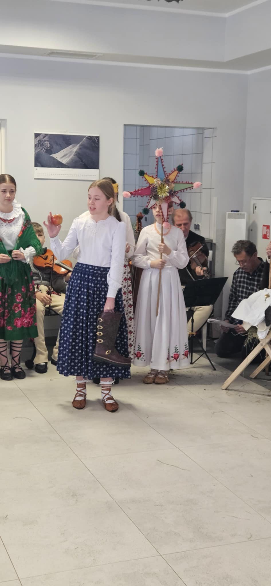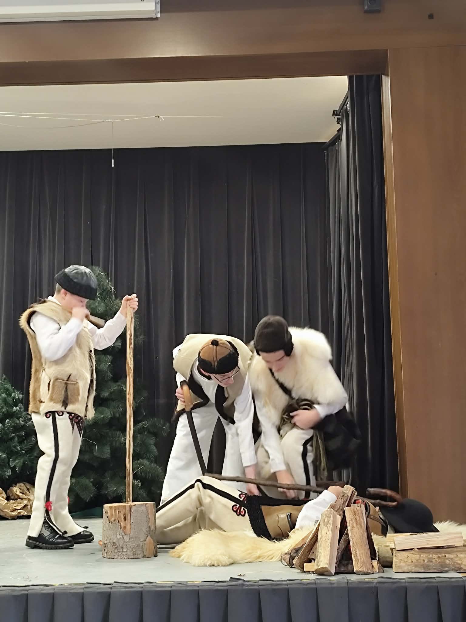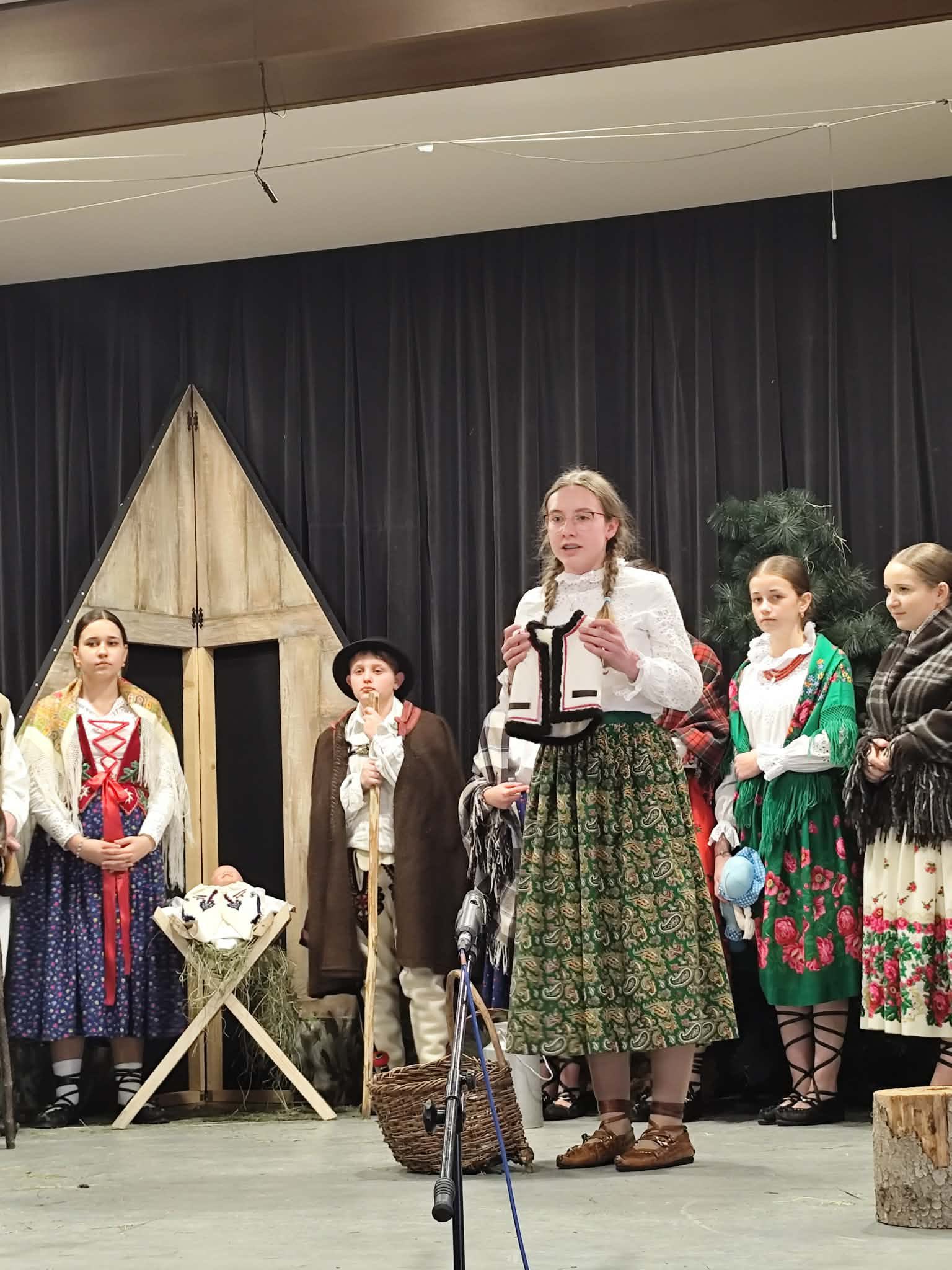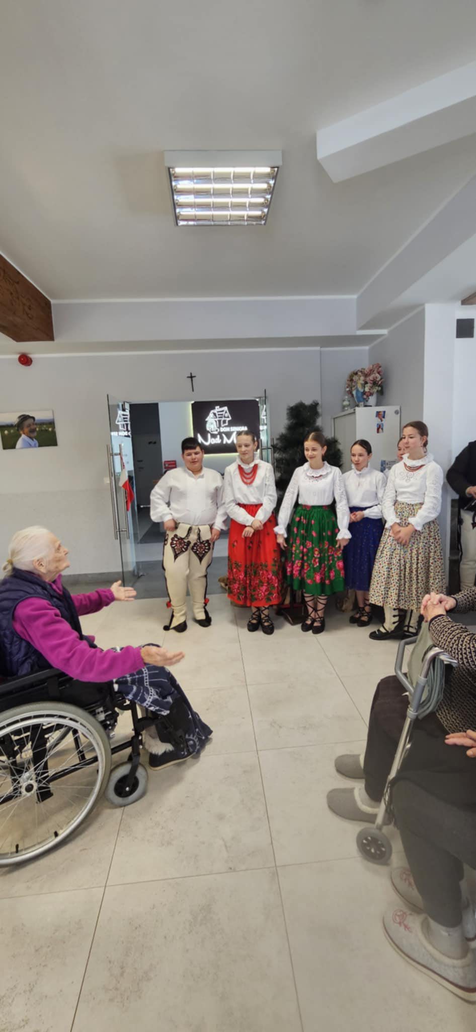 14 stycznia w murach Domu Seniora Nad Młynem, młodość spotkała się z doświadczeniem. Uczniowie naszej szkoły przedstawili góralskie jasełka, które na moment zatrzymały czas. W blasku betlejemskiej gwiazdy i dźwiękach kolęd, seniorzy odnaleźli cząstkę własnej młodości, a nasi uczniowie w oczach seniorów odkryli najwyższą nagrodę za swój trud – autentyczne wzruszenie i szacunek. Dla seniorów Podhala tradycja góralska, to fundament ich tożsamości. Pokazaliśmy jak nasze dziedzictwo staje się wspólną przestrzenią dla pełnych energii uczniów i bogatych w mądrość życiową seniorów, tworząc ten wyjątkowy most łączący pokolenia. Most pokoleń, to nie tylko metafora, to żywa relacja, którą budowaliśmy dźwiękiem skrzypiec i wspólnym śpiewem. To właśnie w takich chwilach jasełka przestają być szkolnym obowiązkiem, a stają się prawdziwym spotkaniem człowieka z człowiekiem. Seniorzy oglądając przedstawienie odnaleźli w nim cząstkę własnej młodości i dowód na to, że góralska dusza nie zna granic wieku. Odbiorcy nie widzieli tylko uczniów naszej szkoły, lecz przede wszystkim młode pokolenie, które dumnie prezentuje tradycje góralskie, oraz strażników podhalańskich wartości udowadniając, że nasze dziedzictwo jest w dobrych rękach.