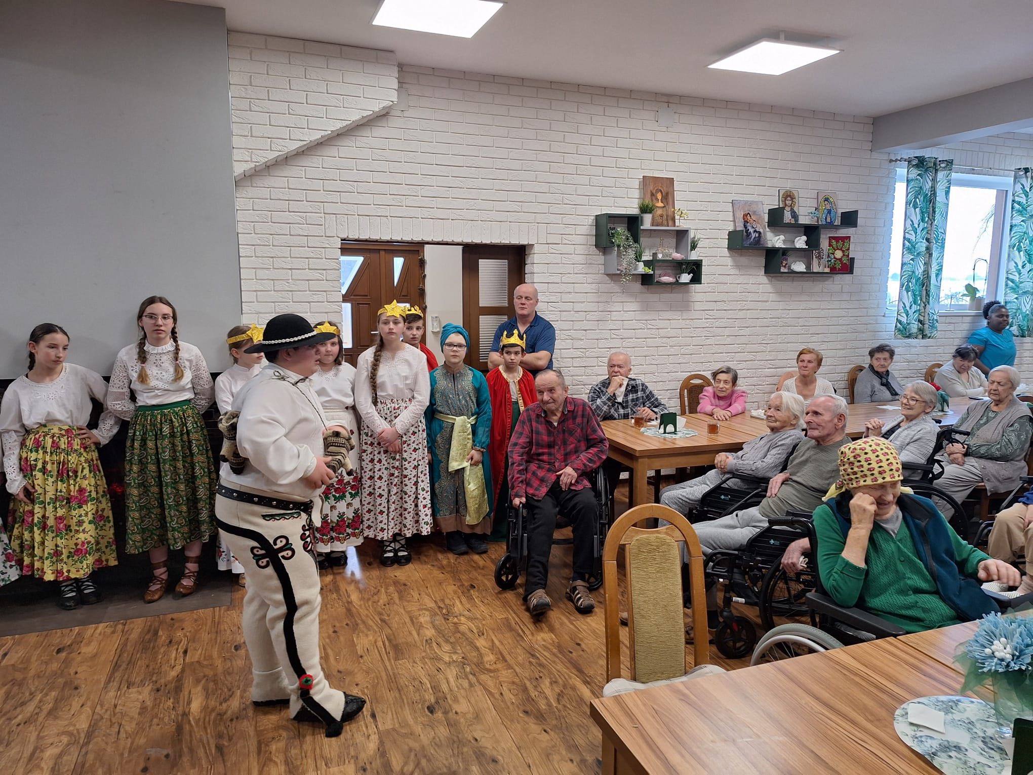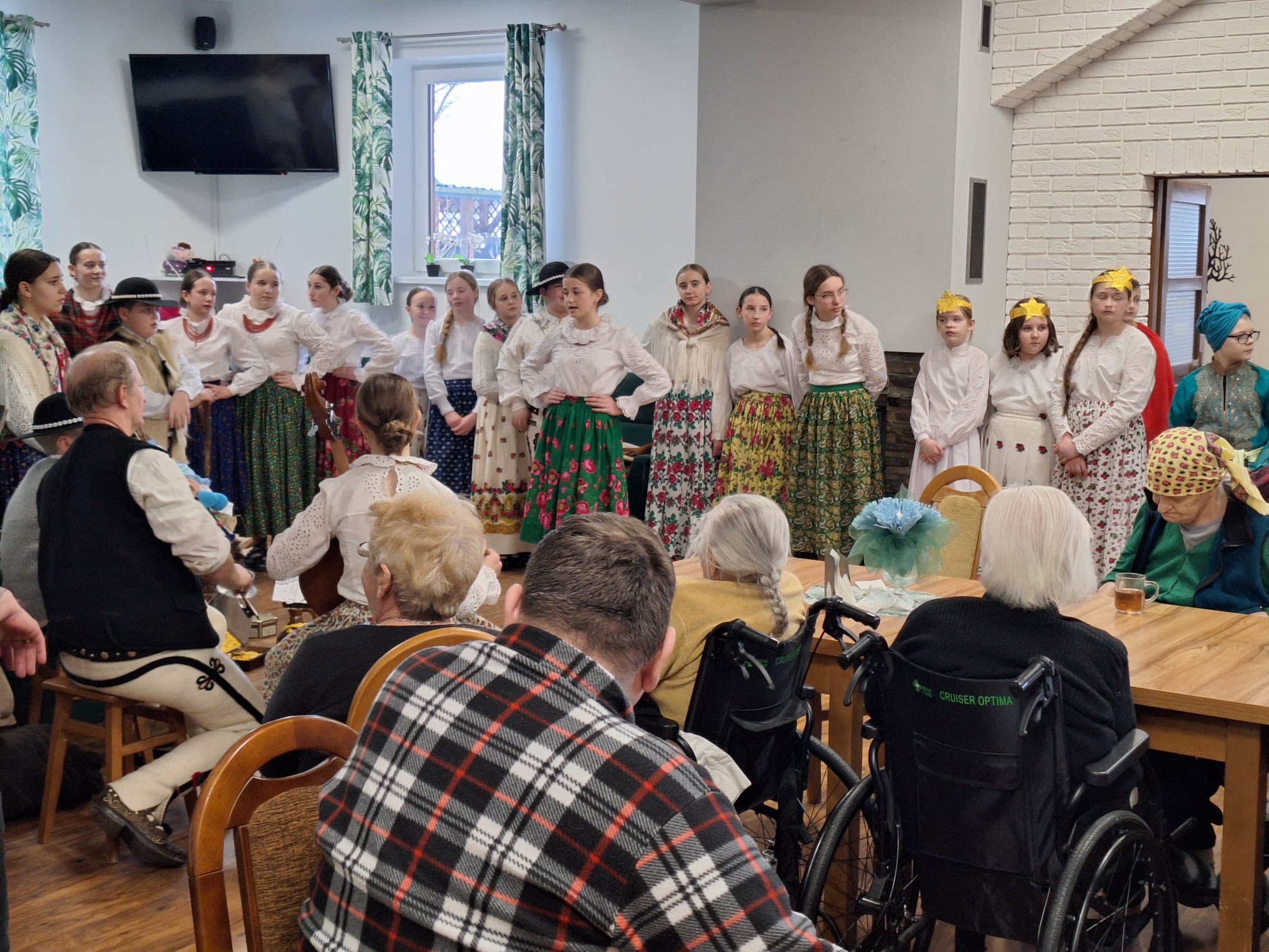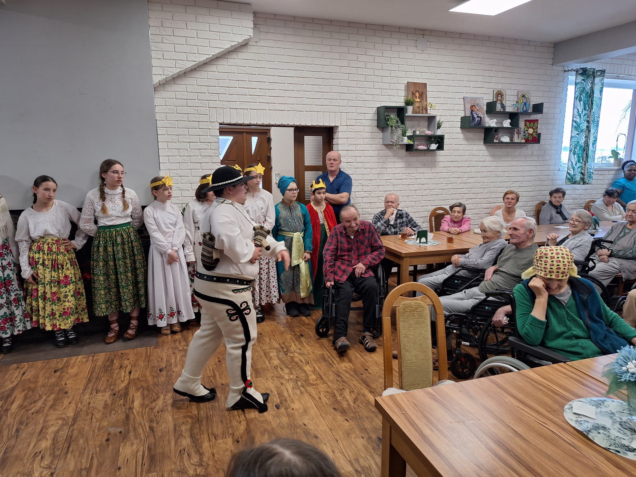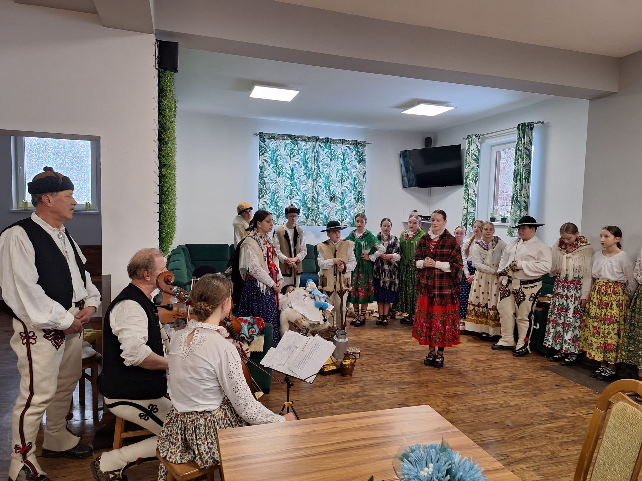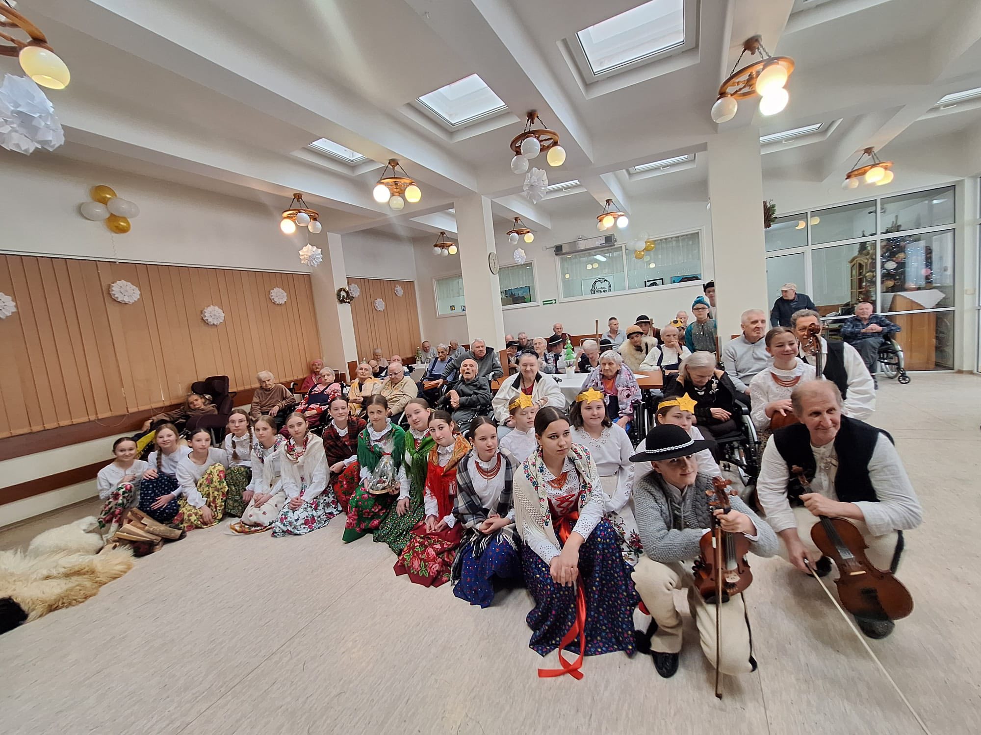 Po raz kolejny "młodość spotkała się z doświadczeniem..." Tym razem uczniowie naszej szkoły mieli przyjemność przedstawić góralskie jasełka, które tym razem na moment zatrzymały czas w Domu Pomocy Społecznej "Smrek" w Zaskalu oraz w Domu Seniora "Tatrzańska Jesień" w Skrzypnem. Tak jak ostatnio w blasku betlejemskiej gwiazdy i dźwiękach kolęd, seniorzy odnaleźli cząstkę własnej młodości, a nasi uczniowie – autentyczne wzruszenie i szacunek. Pensjonariusze nie tylko oglądali, ale również aktywnie włączyli się w śpiewanie kolęd, co stworzyło wyjątkową, integrującą atmosferę. To było spotkanie, które pokazało, jak ważna jest bliskość człowieka i wspólne świętowanie.