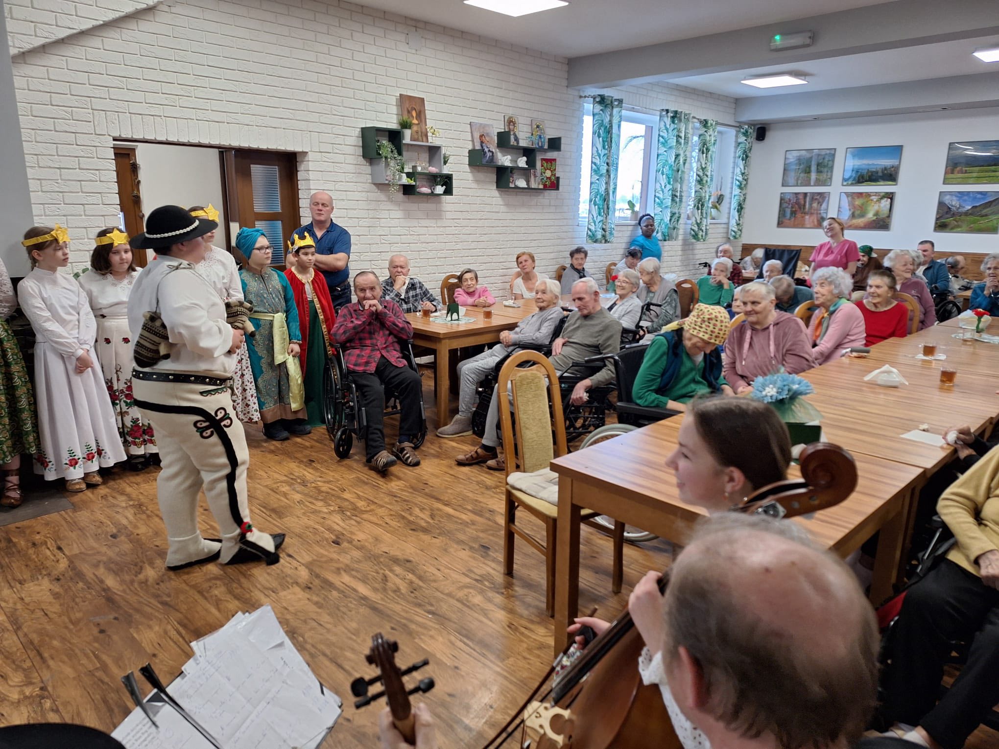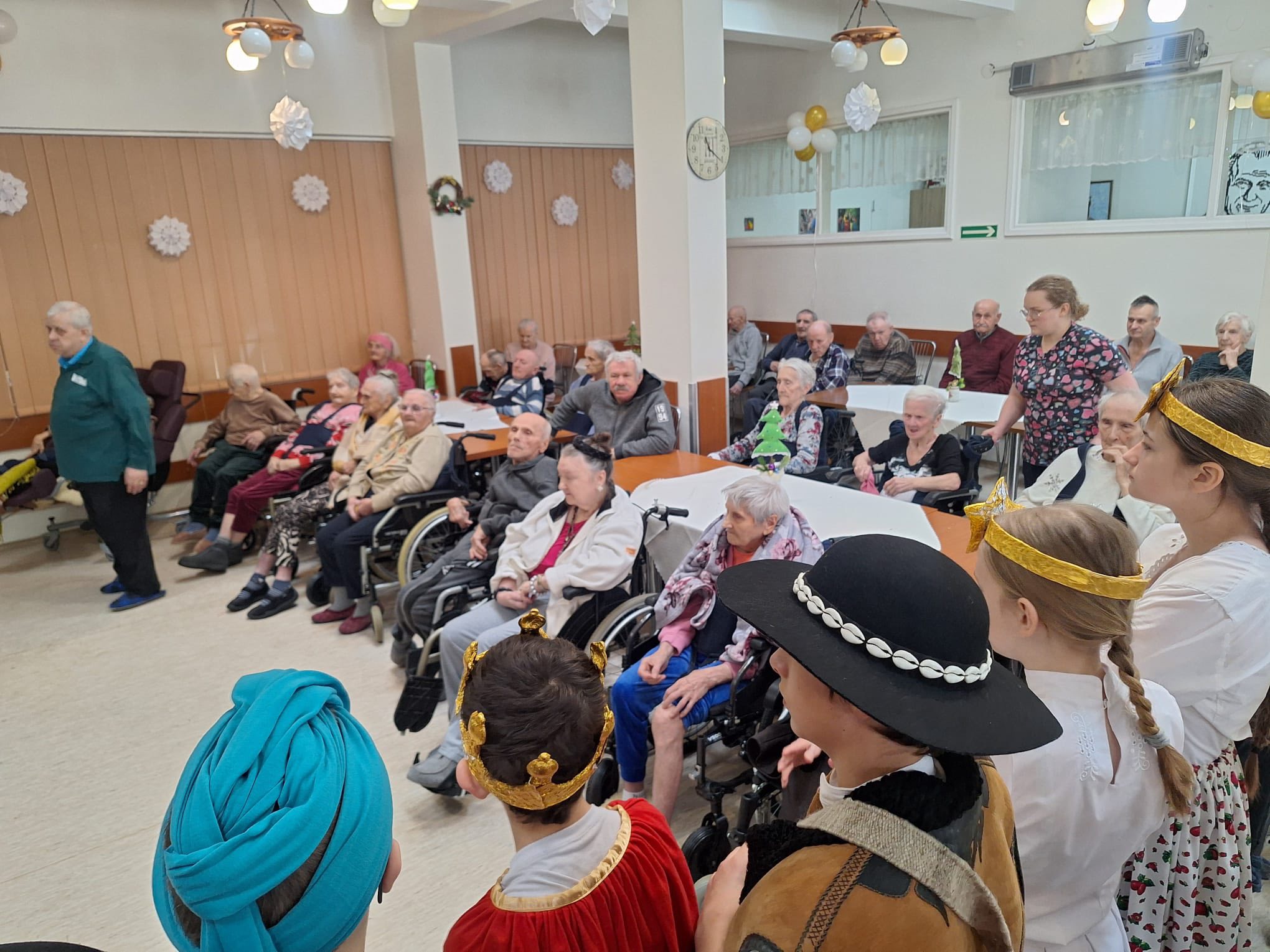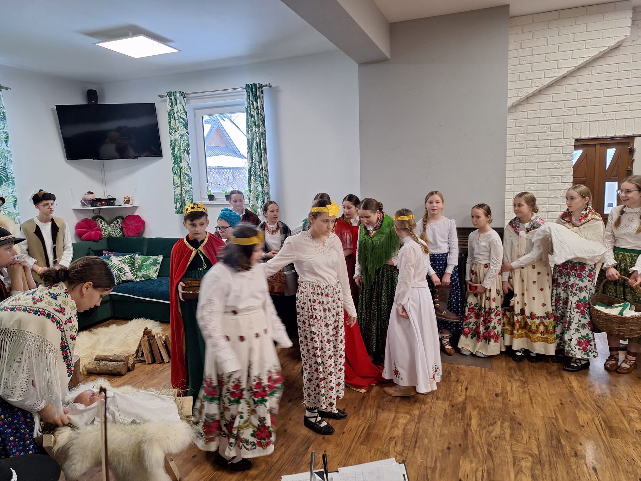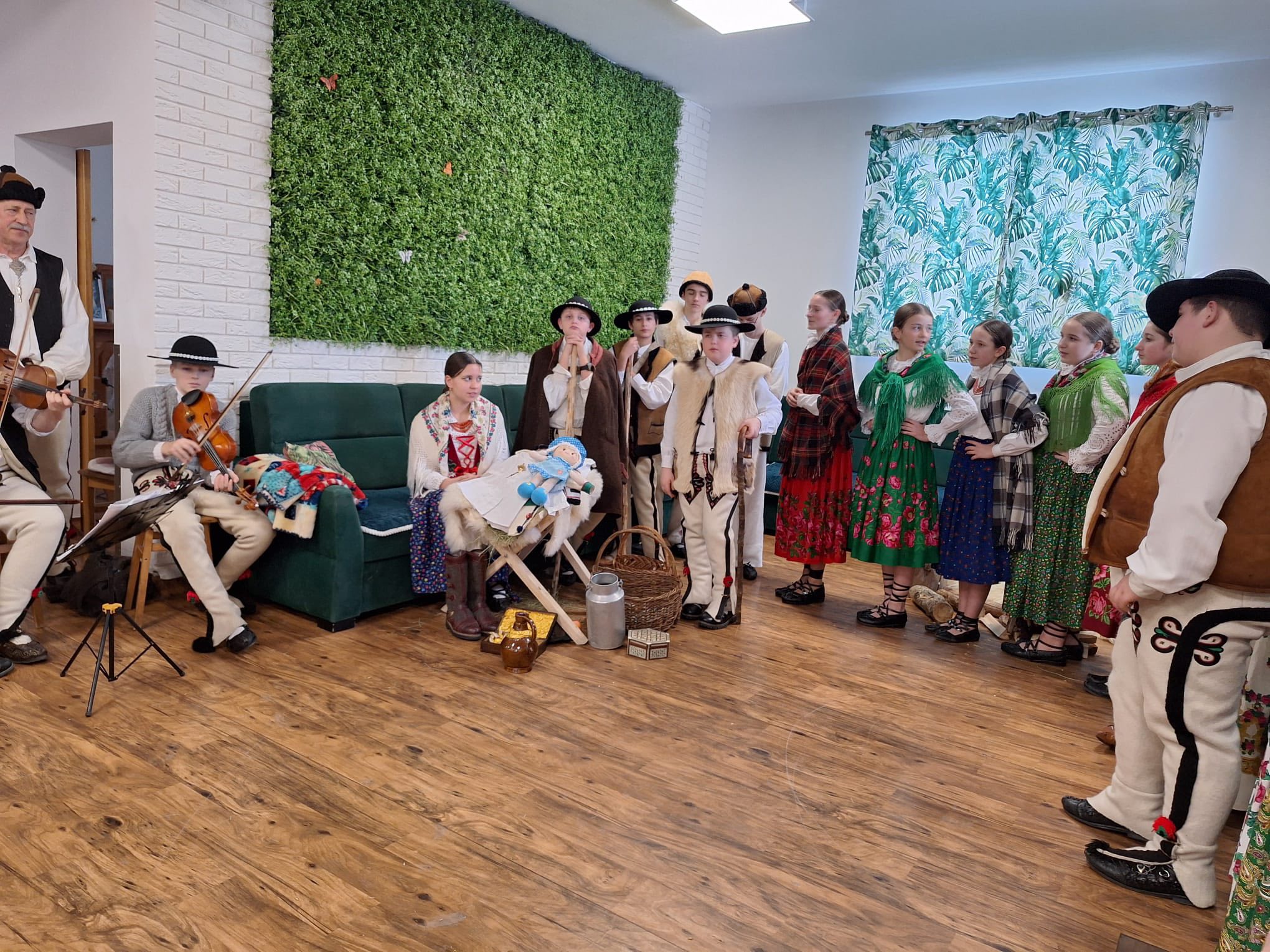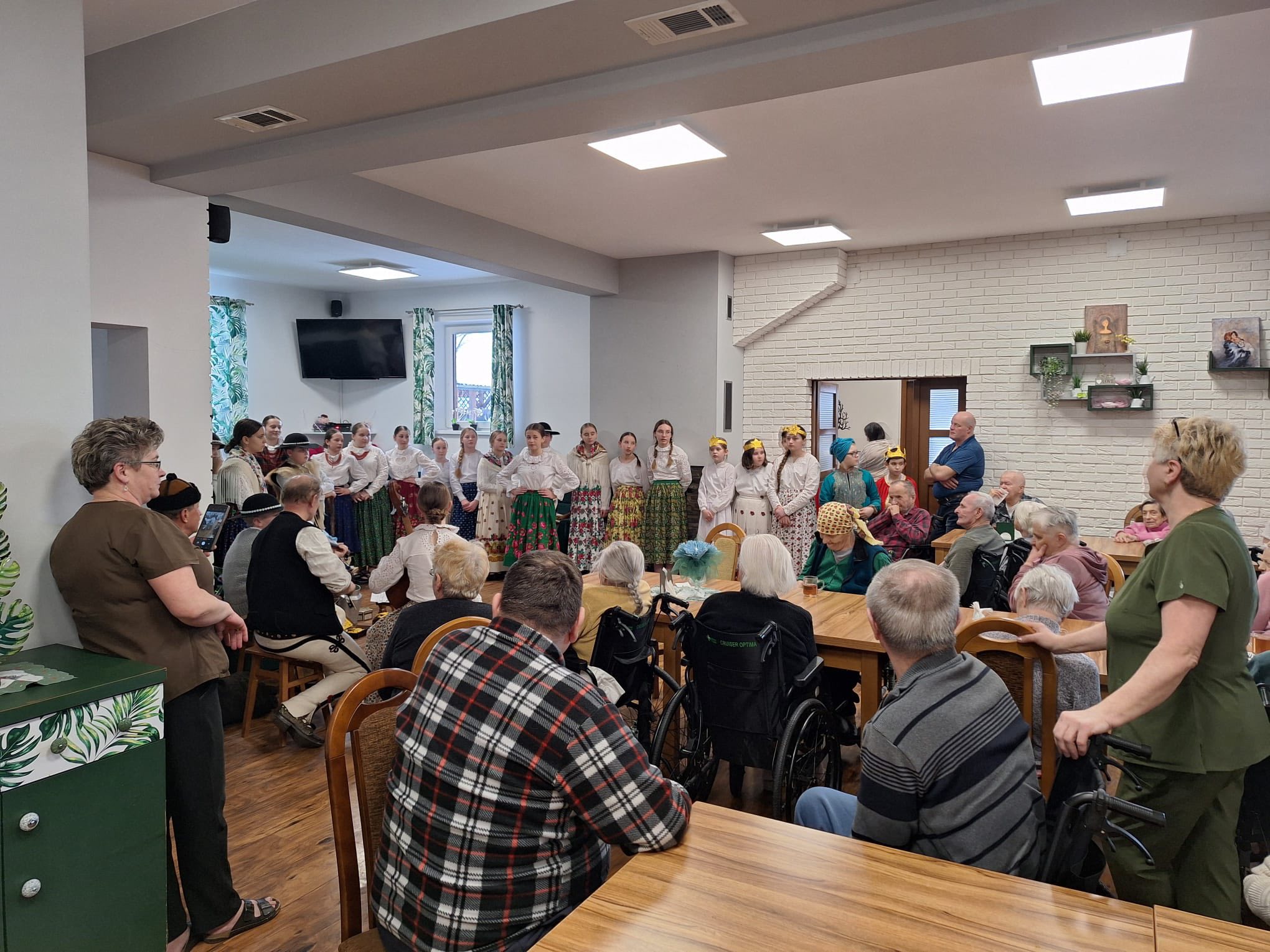 Po raz kolejny "młodość spotkała się z doświadczeniem..." Tym razem uczniowie naszej szkoły mieli przyjemność przedstawić góralskie jasełka, które tym razem na moment zatrzymały czas w Domu Pomocy Społecznej "Smrek" w Zaskalu oraz w Domu Seniora "Tatrzańska Jesień" w Skrzypnem. Tak jak ostatnio w blasku betlejemskiej gwiazdy i dźwiękach kolęd, seniorzy odnaleźli cząstkę własnej młodości, a nasi uczniowie – autentyczne wzruszenie i szacunek. Pensjonariusze nie tylko oglądali, ale również aktywnie włączyli się w śpiewanie kolęd, co stworzyło wyjątkową, integrującą atmosferę. To było spotkanie, które pokazało, jak ważna jest bliskość człowieka i wspólne świętowanie.