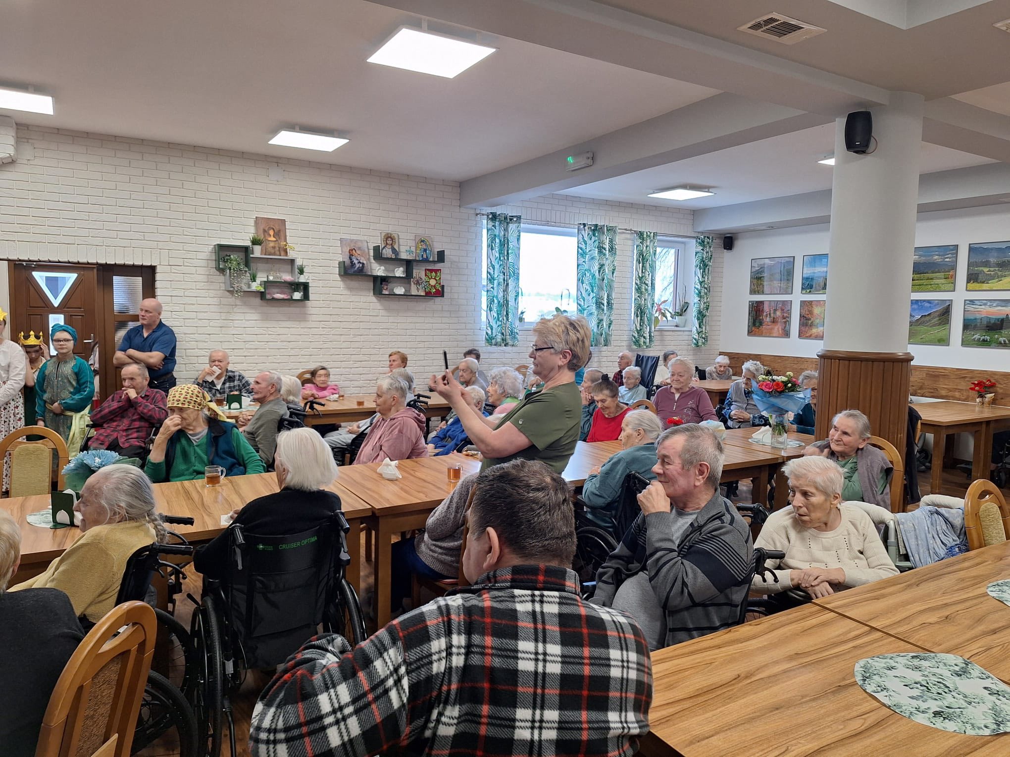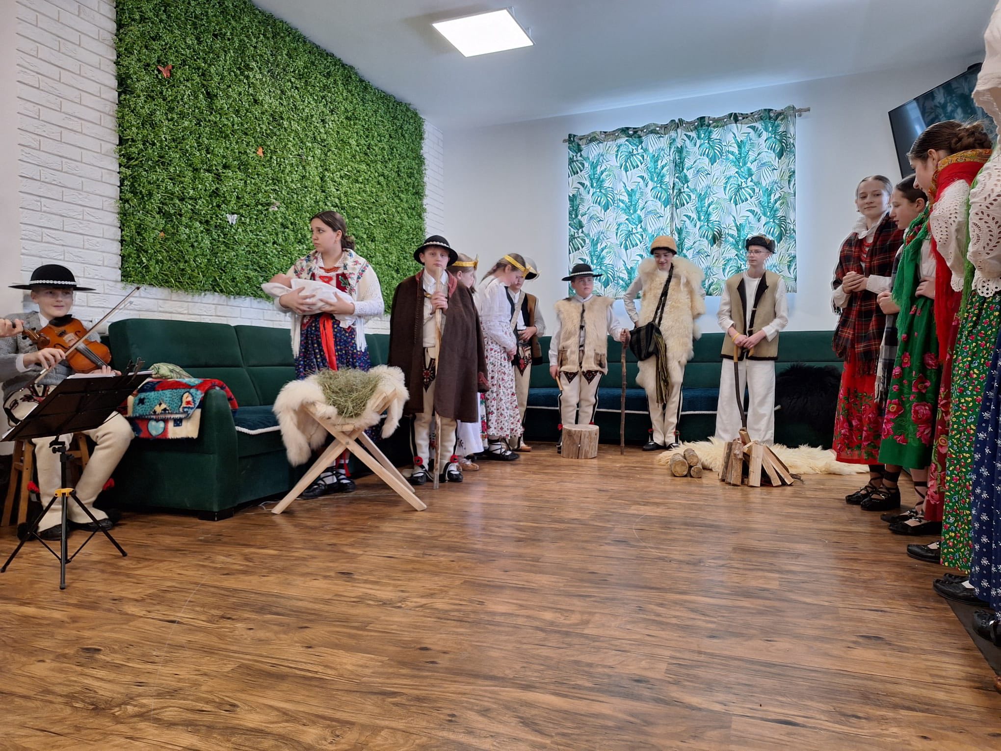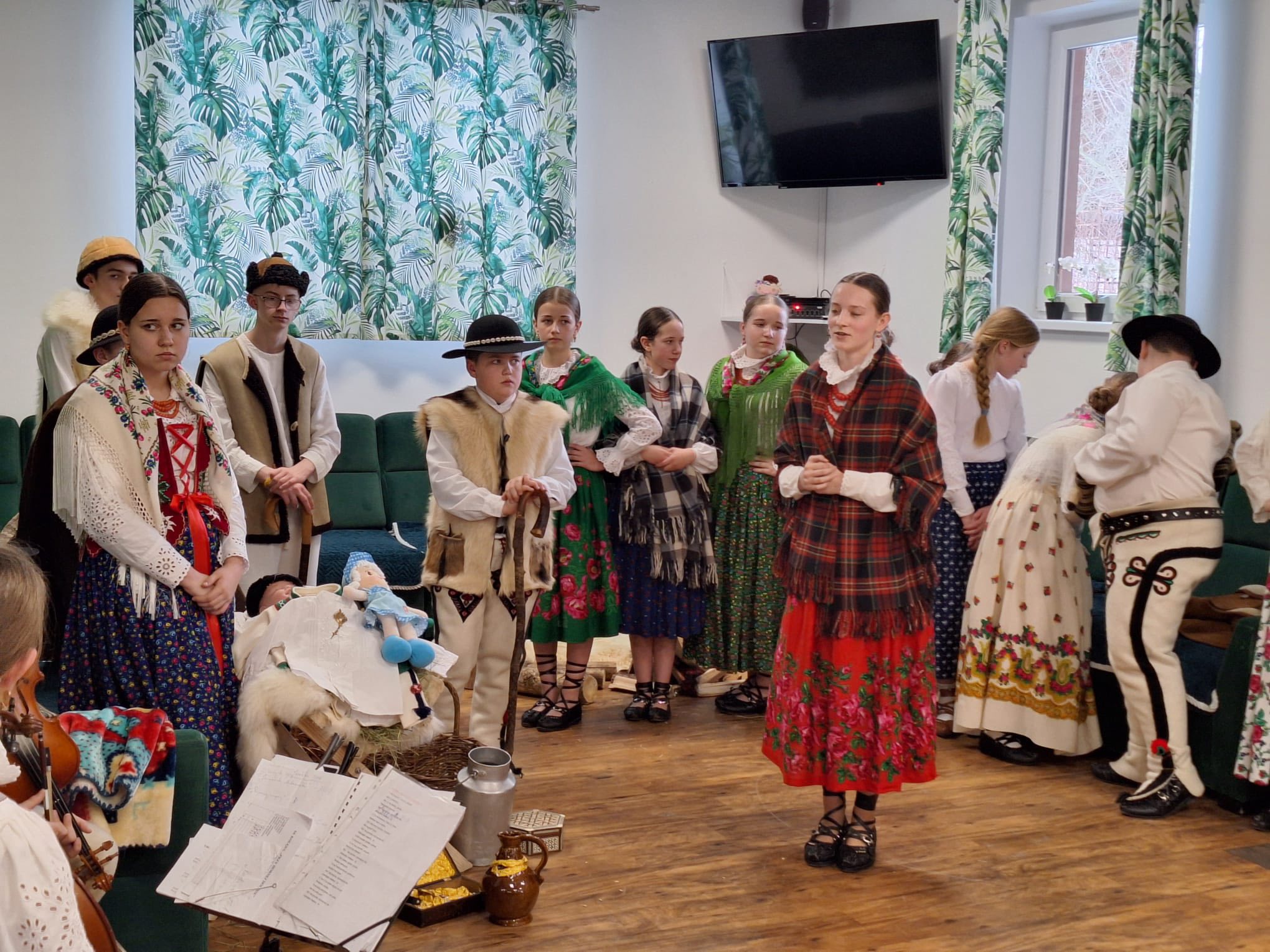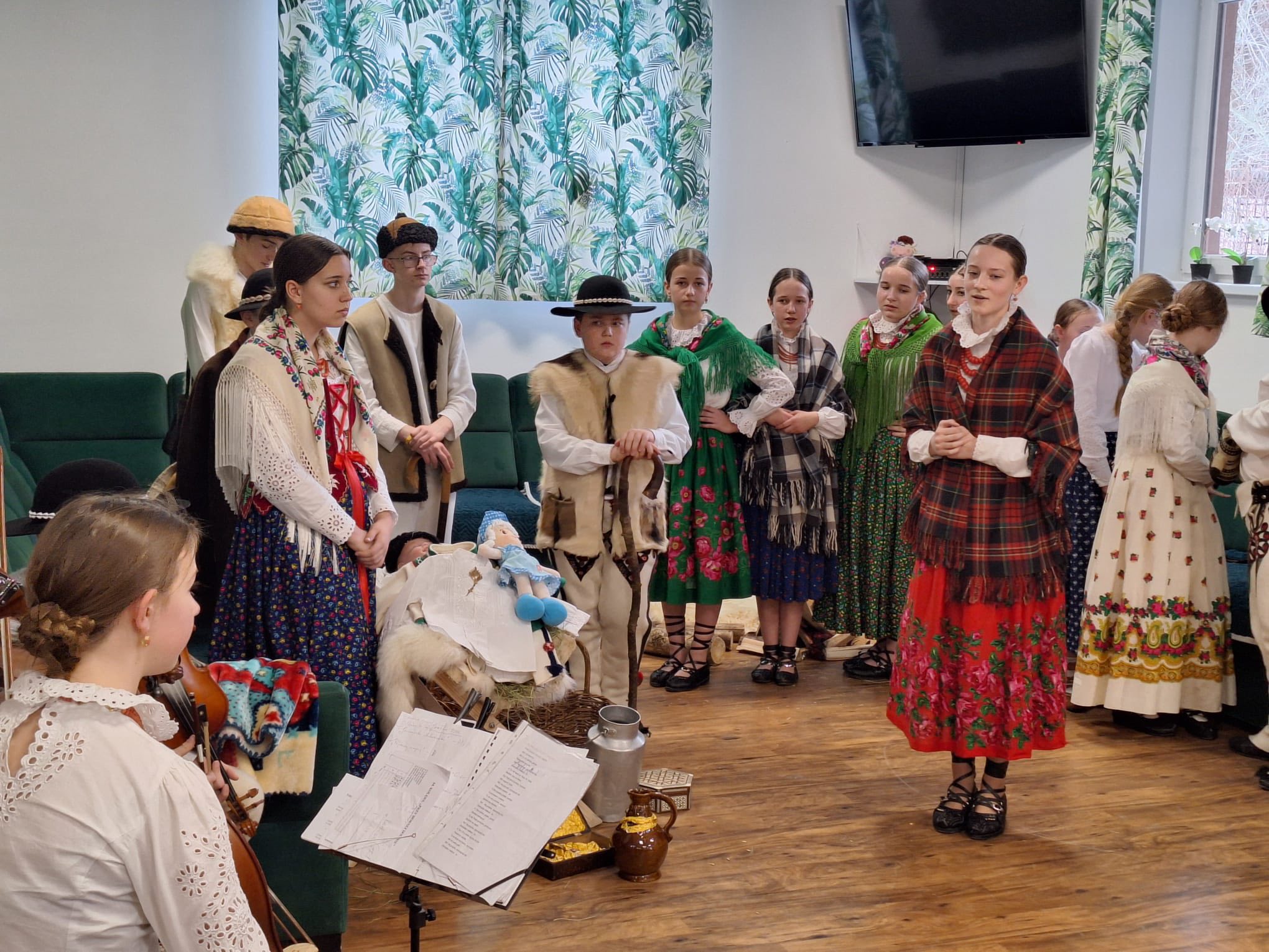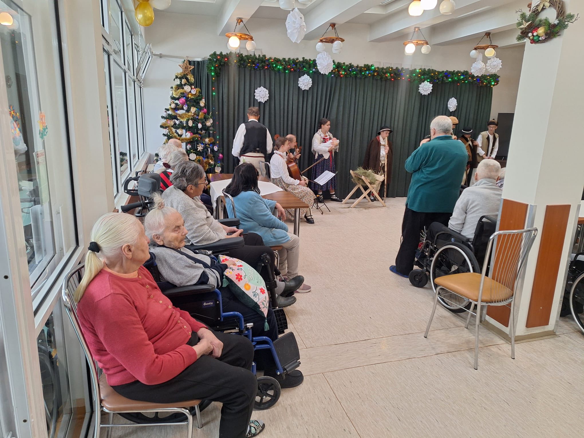 Po raz kolejny "młodość spotkała się z doświadczeniem..." Tym razem uczniowie naszej szkoły mieli przyjemność przedstawić góralskie jasełka, które tym razem na moment zatrzymały czas w Domu Pomocy Społecznej "Smrek" w Zaskalu oraz w Domu Seniora "Tatrzańska Jesień" w Skrzypnem. Tak jak ostatnio w blasku betlejemskiej gwiazdy i dźwiękach kolęd, seniorzy odnaleźli cząstkę własnej młodości, a nasi uczniowie – autentyczne wzruszenie i szacunek. Pensjonariusze nie tylko oglądali, ale również aktywnie włączyli się w śpiewanie kolęd, co stworzyło wyjątkową, integrującą atmosferę. To było spotkanie, które pokazało, jak ważna jest bliskość człowieka i wspólne świętowanie.