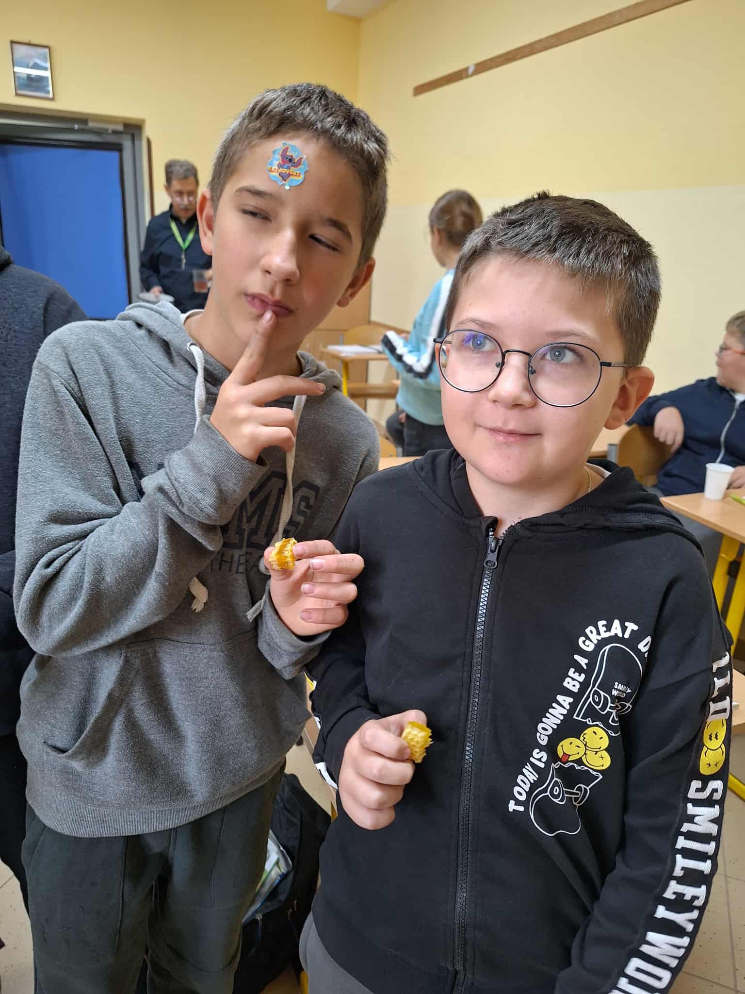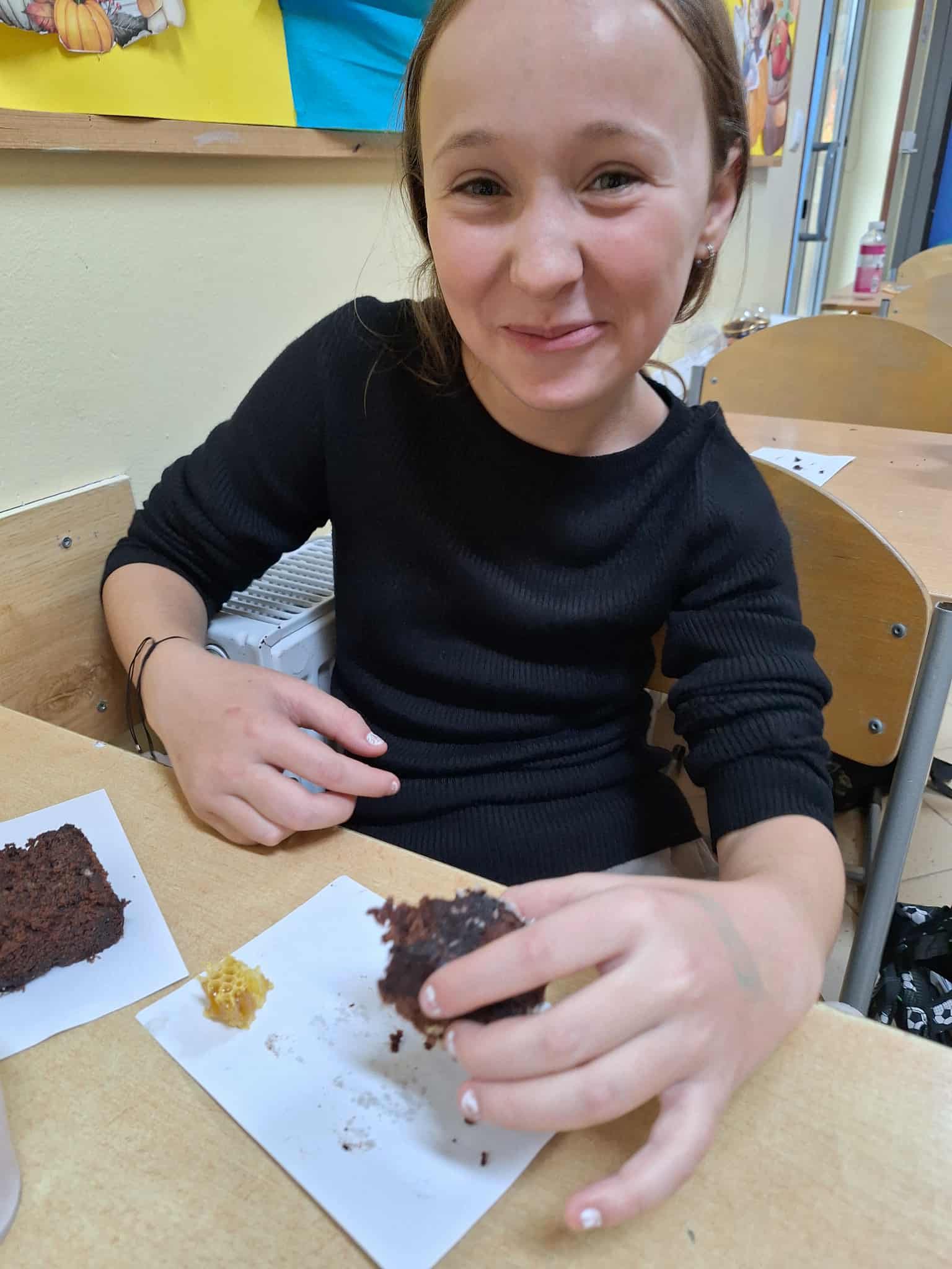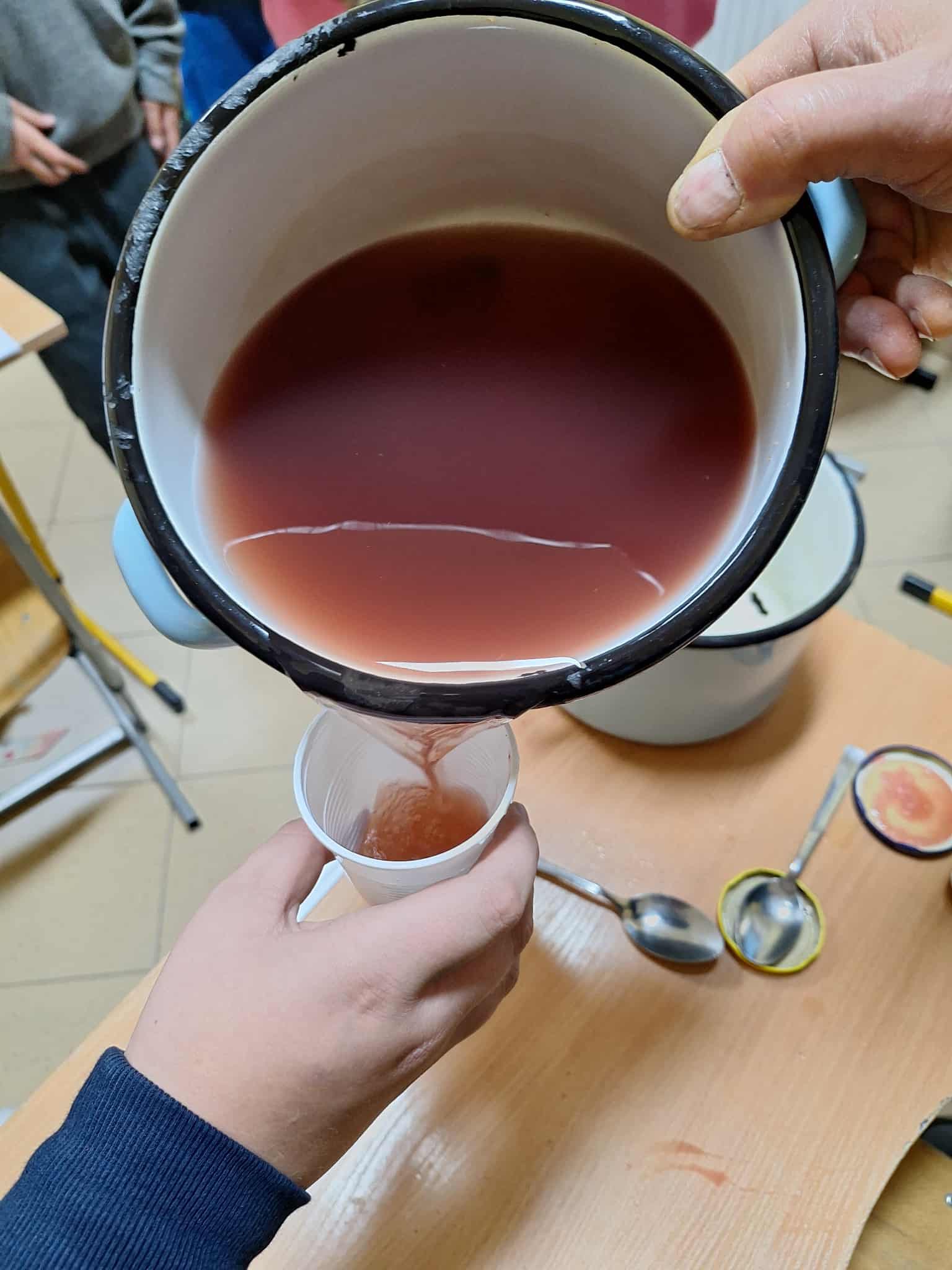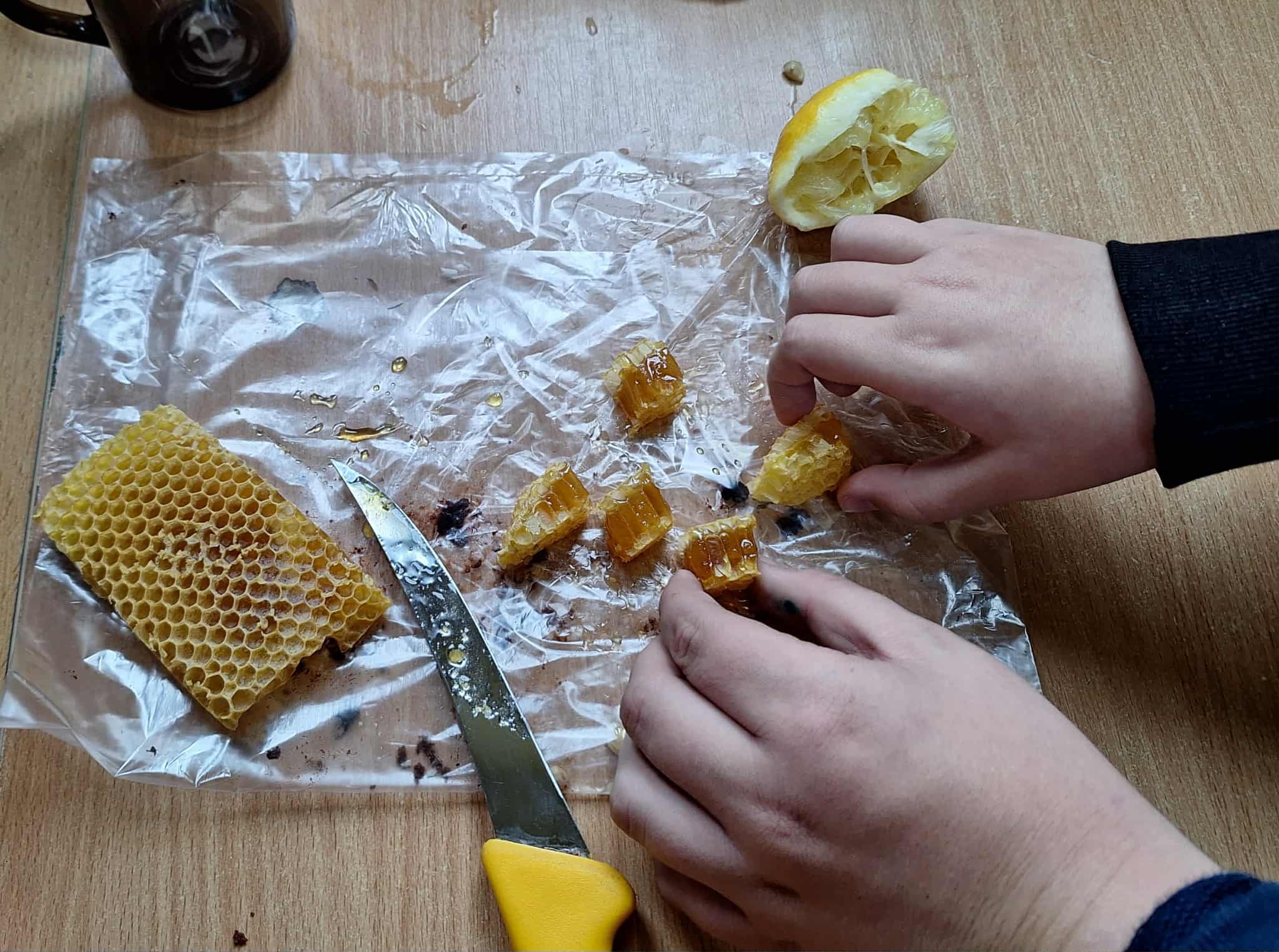 Jesień to czas przeziębień i osłabionej odporności, dlatego na lekcjach naszego dziedzictwa uczyliśmy się jak leczyły nasze prababcie oraz jakich używały ziół, aby zachować zdrowie. Dzisiaj uczniowie klasy VC przygotowywali herbatę z kwiatu lipy. Najpierw zalewali zioła wrzątkiem, następnie studzili je na zewnątrz, a gdy herbata miała odpowiednią temperaturę dodano do niej miód, sok maliowy, a także cytrynę. Sporą niespodzianką bylo żucie plastra miodu, który jedna z uczennic przyniosła prosto od pszczelarza. Pozostali uczniowie również zadbali o to, aby produty były najlepszej jakości dlatego przyniesli domowe przetwory. Teraz z pewnością żadne jesienne wirusy nie będą im straszne.