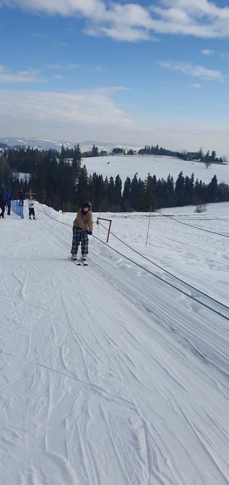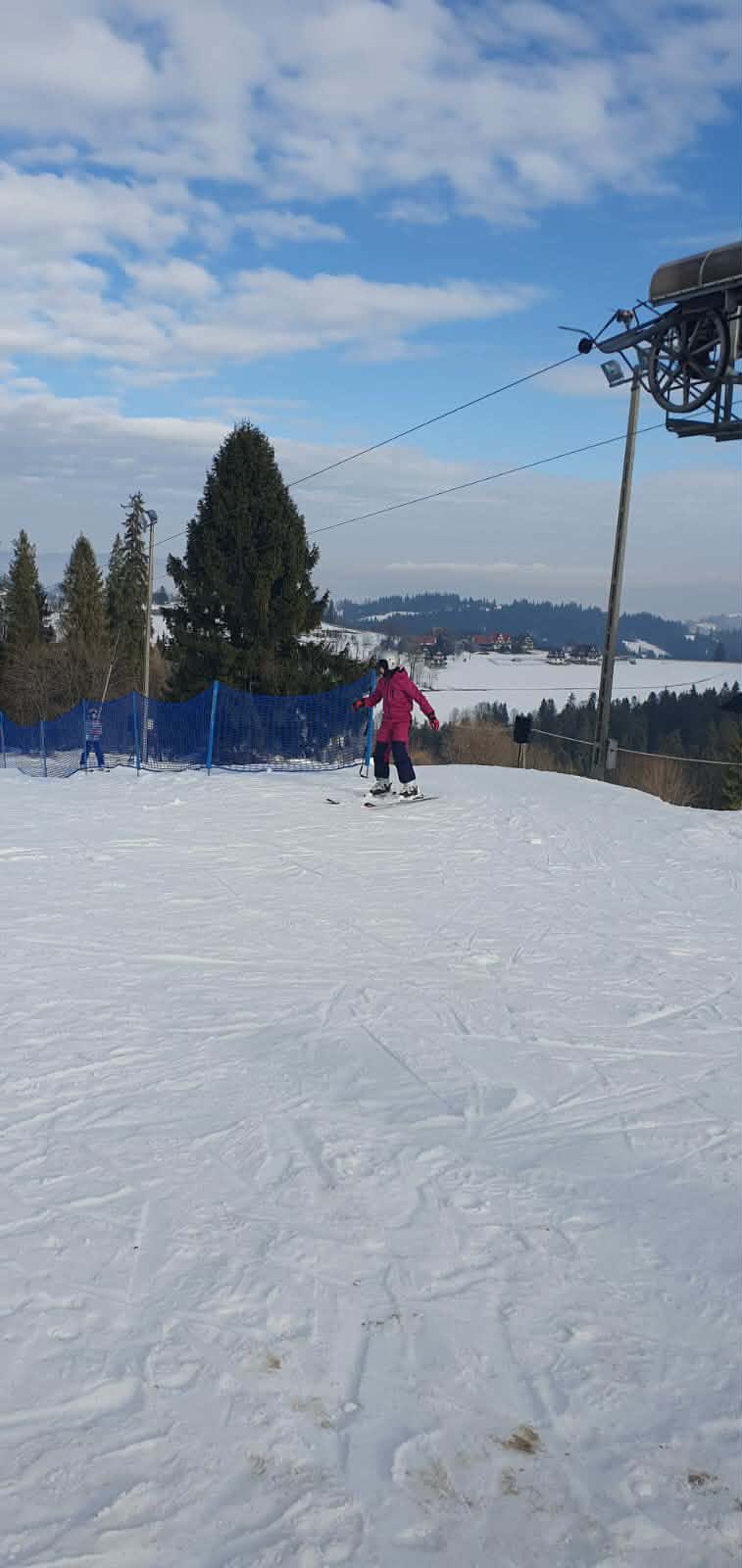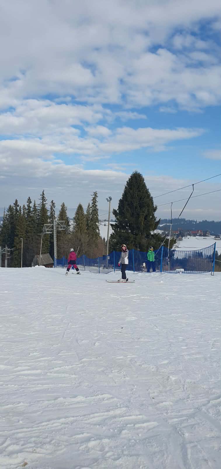 W zimowej, podhalańskiej scenerii, przy dźwiękach góralskiej muzyki, uczniowie – ci bardziej doświadczeni w pięknym stylu szusowali po stoku, zaś ci początkujący stawiali swoje pierwsze kroki na nartach. Zarówno jedni, jak i drudzy czerpali wiele radości oraz przyjemności z jazdy na wyciągu. Wśród uczniów i pań wychowawczyń byli też śmiałkowie jazdy na nartosankach, a także na tzw. jabłuszku, którzy podczas zjazdów doświadczyli niezwykłych wrażeń i niezapomnianych chwil.