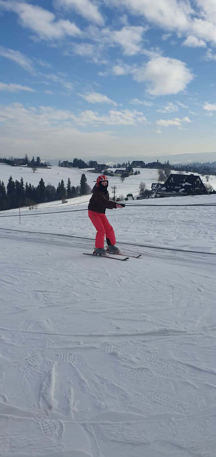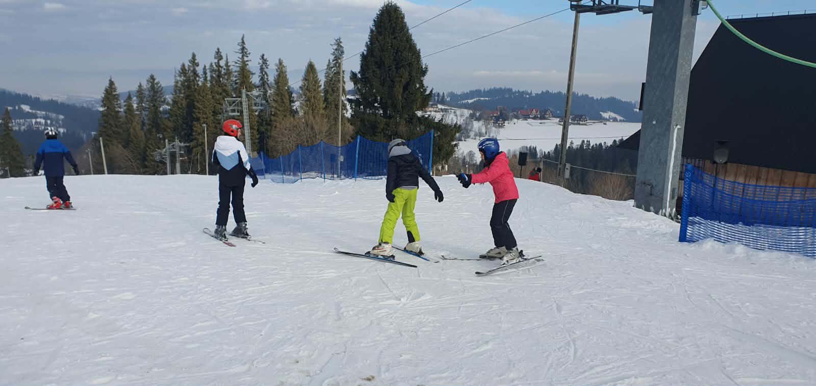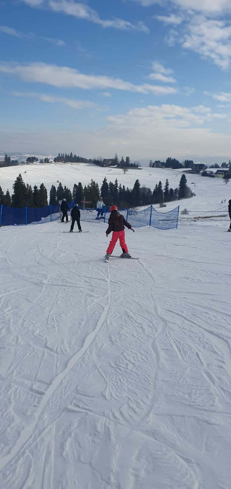 W zimowej, podhalańskiej scenerii, przy dźwiękach góralskiej muzyki, uczniowie – ci bardziej doświadczeni w pięknym stylu szusowali po stoku, zaś ci początkujący stawiali swoje pierwsze kroki na nartach. Zarówno jedni, jak i drudzy czerpali wiele radości oraz przyjemności z jazdy na wyciągu. Wśród uczniów i pań wychowawczyń byli też śmiałkowie jazdy na nartosankach, a także na tzw. jabłuszku, którzy podczas zjazdów doświadczyli niezwykłych wrażeń i niezapomnianych chwil.