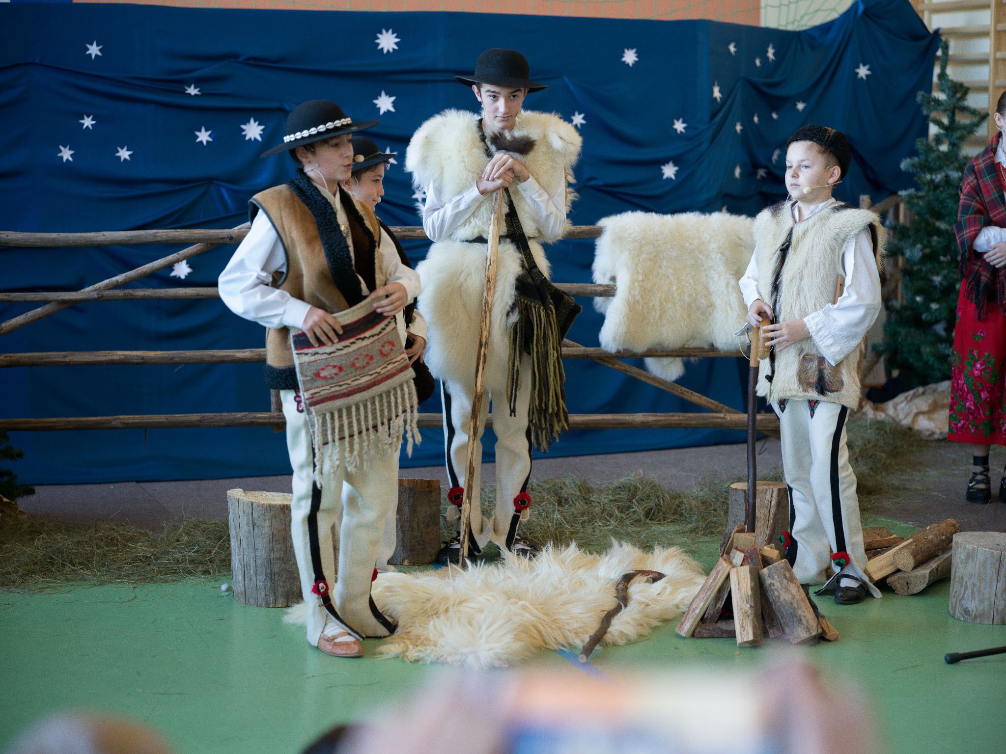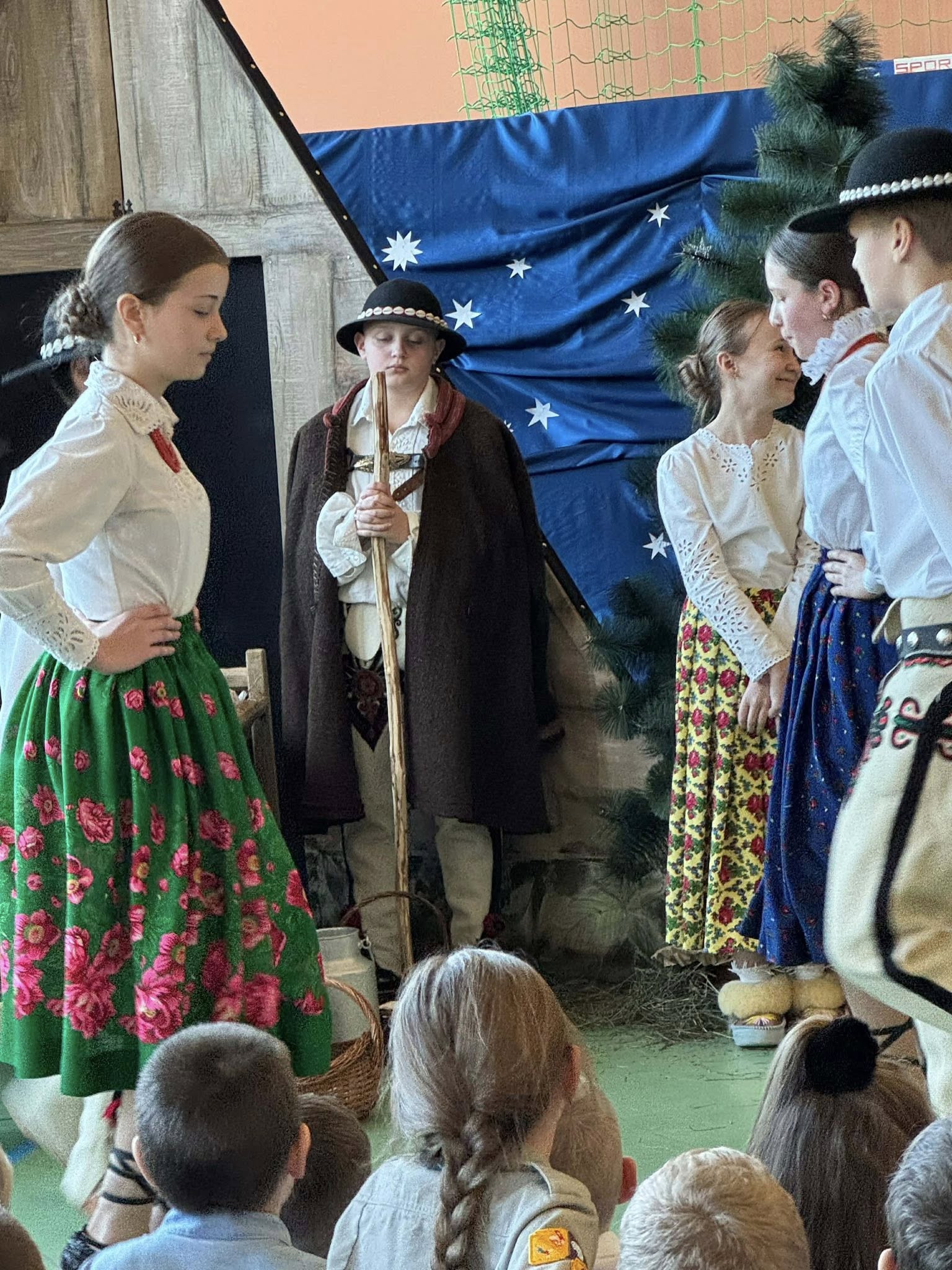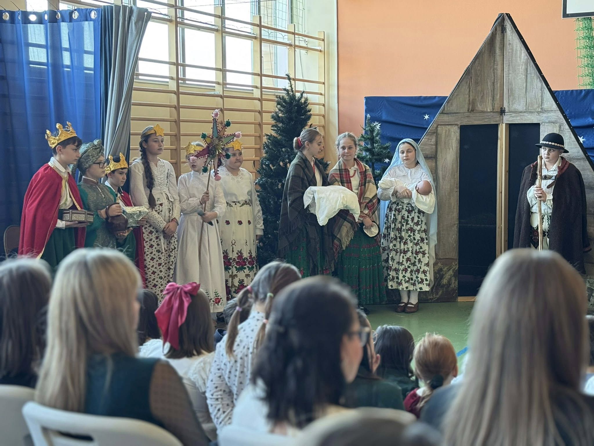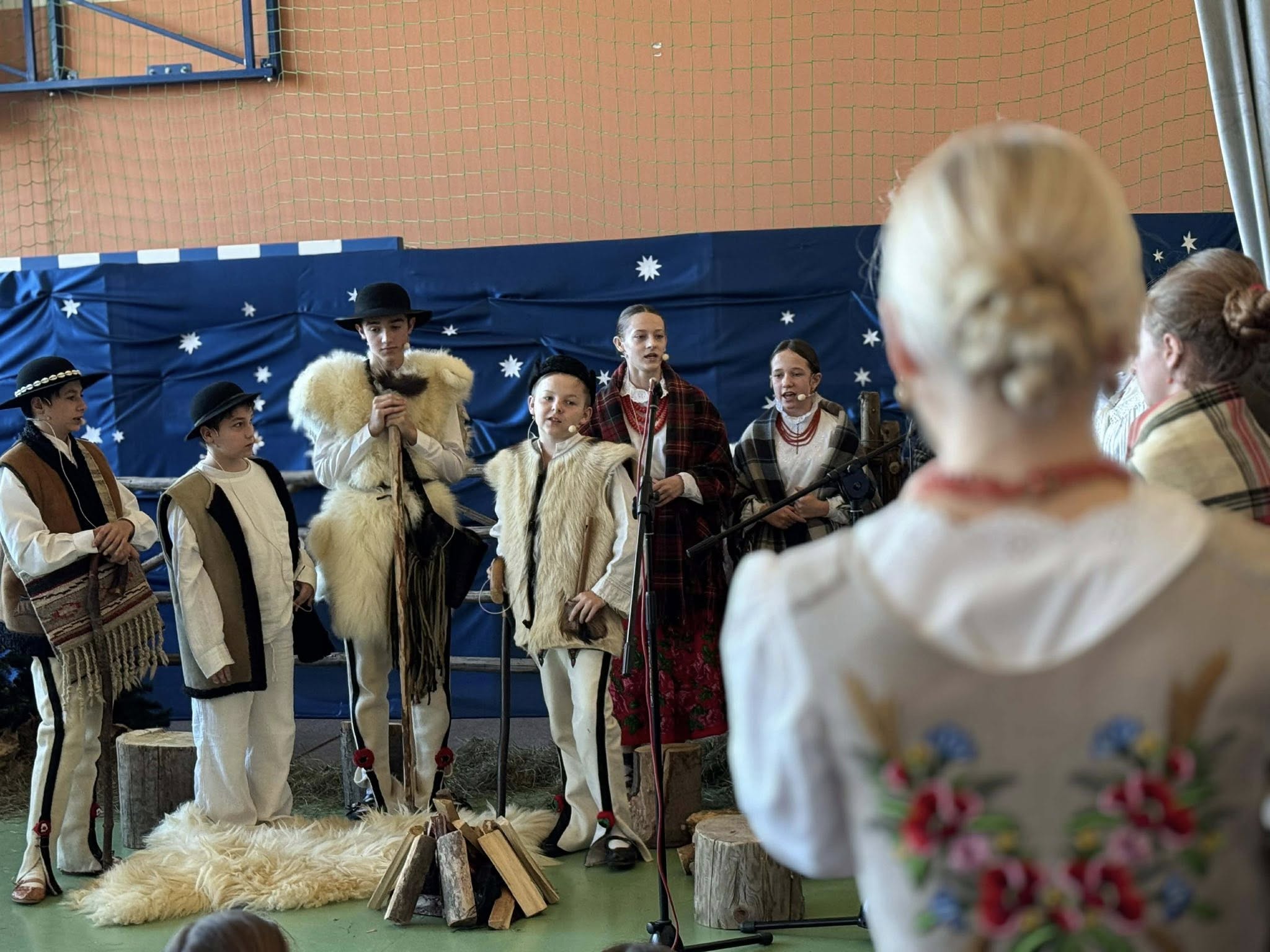 Następnie mieliśmy zaszczyt podziwiać piękne, góralskie jasełka przygotowane przez szkolne koło teatralne wraz z opiekunami. Barwne stroje, tradycyjna muzyka oraz autentyczne emocje młodych aktorów sprawiły, że wszyscy mogliśmy na nowo przeżyć tajemnicę narodzin Jezusa.