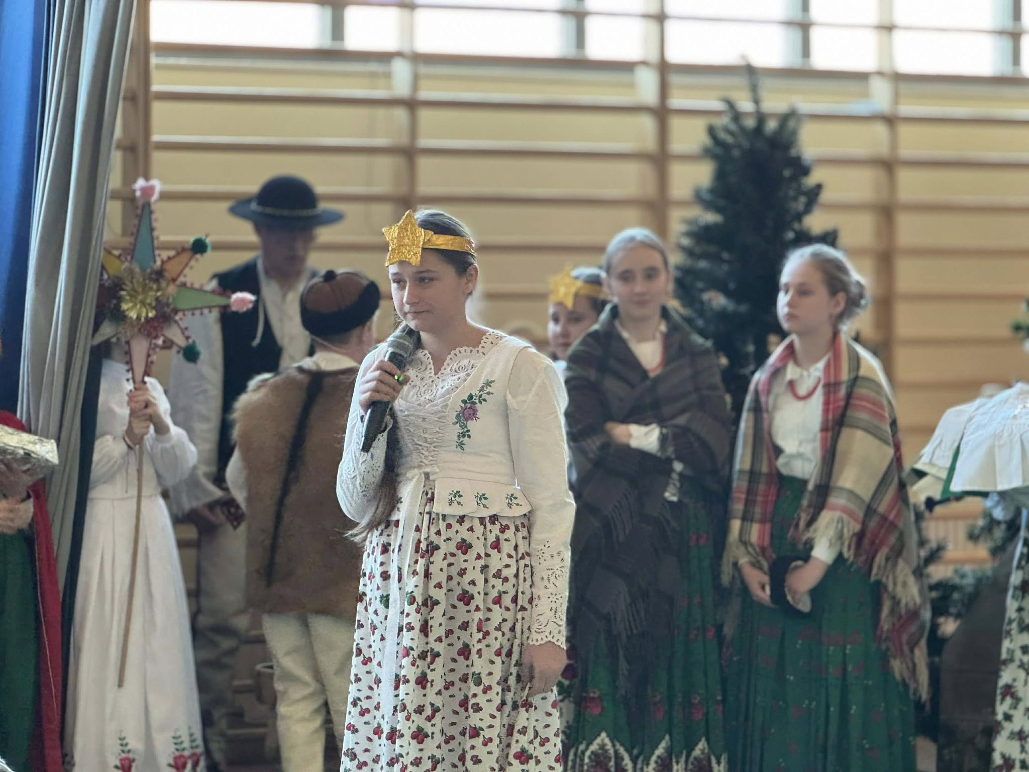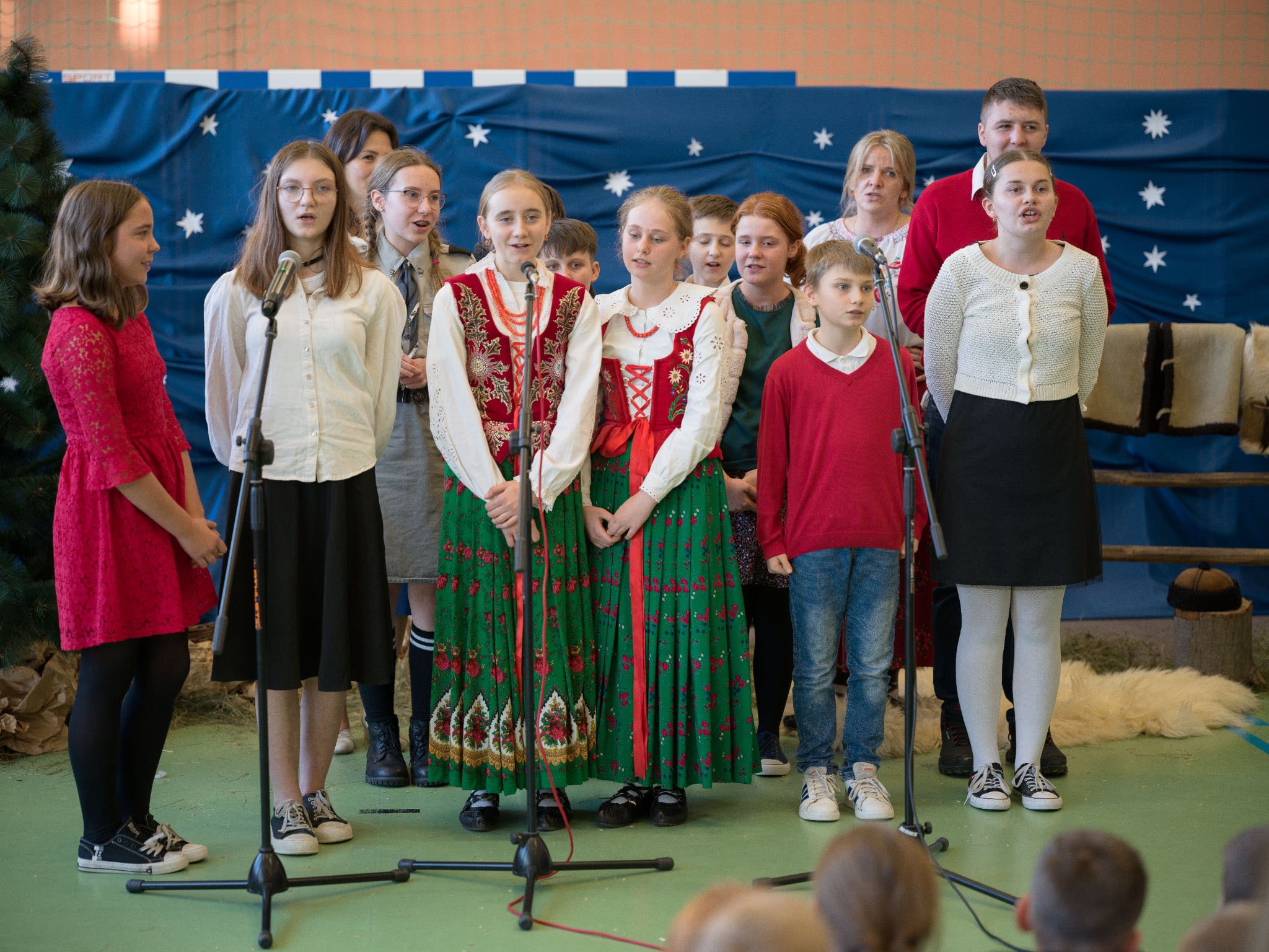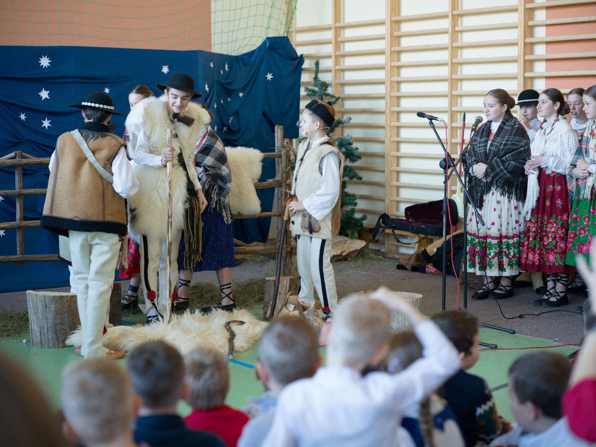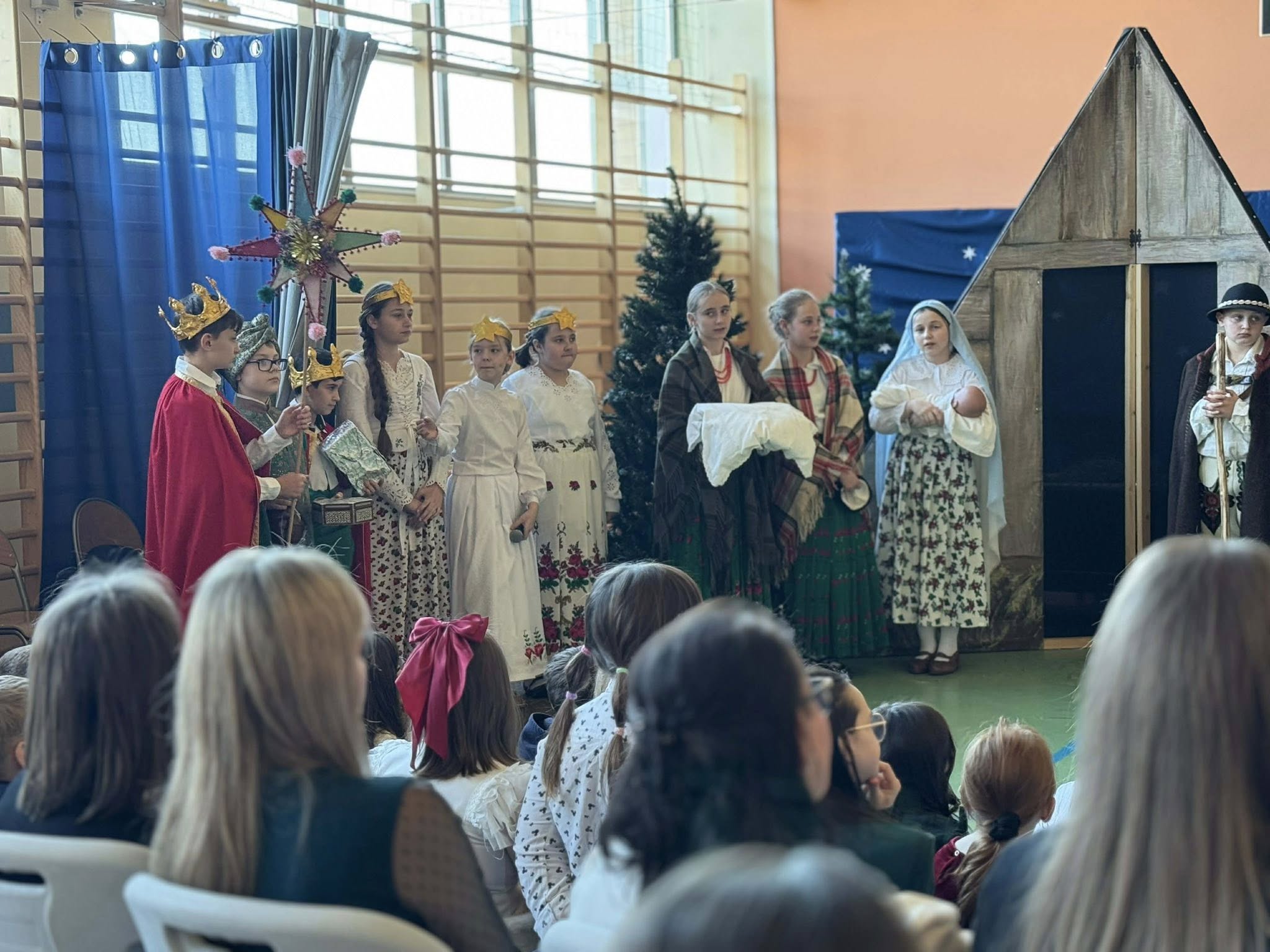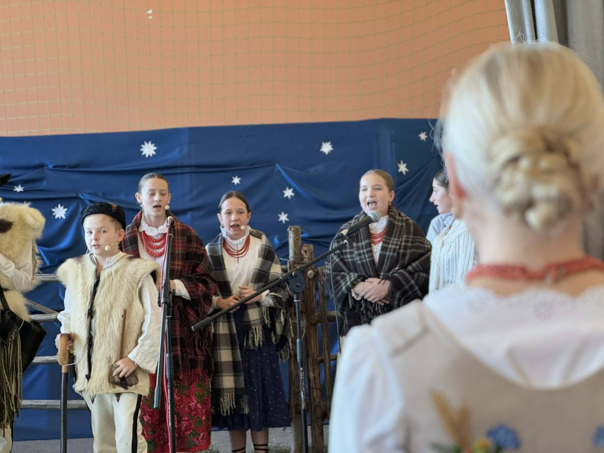 Następnie mieliśmy zaszczyt podziwiać piękne, góralskie jasełka przygotowane przez szkolne koło teatralne wraz z opiekunami. Barwne stroje, tradycyjna muzyka oraz autentyczne emocje młodych aktorów sprawiły, że wszyscy mogliśmy na nowo przeżyć tajemnicę narodzin Jezusa.