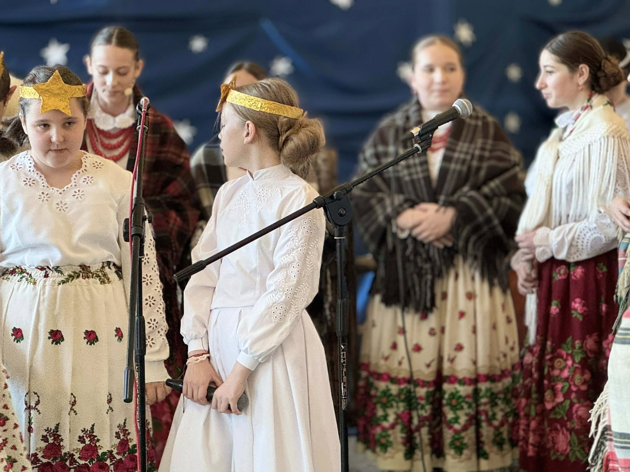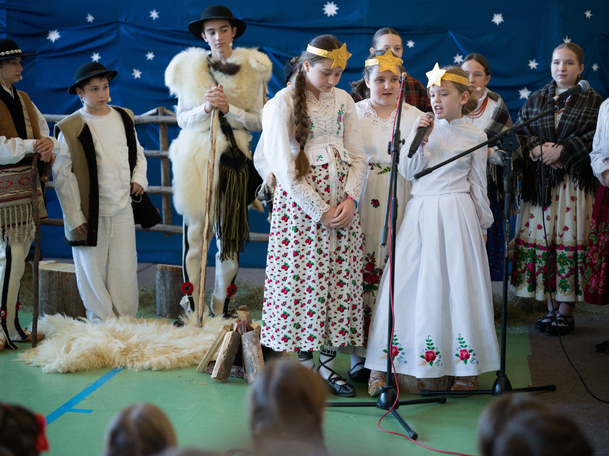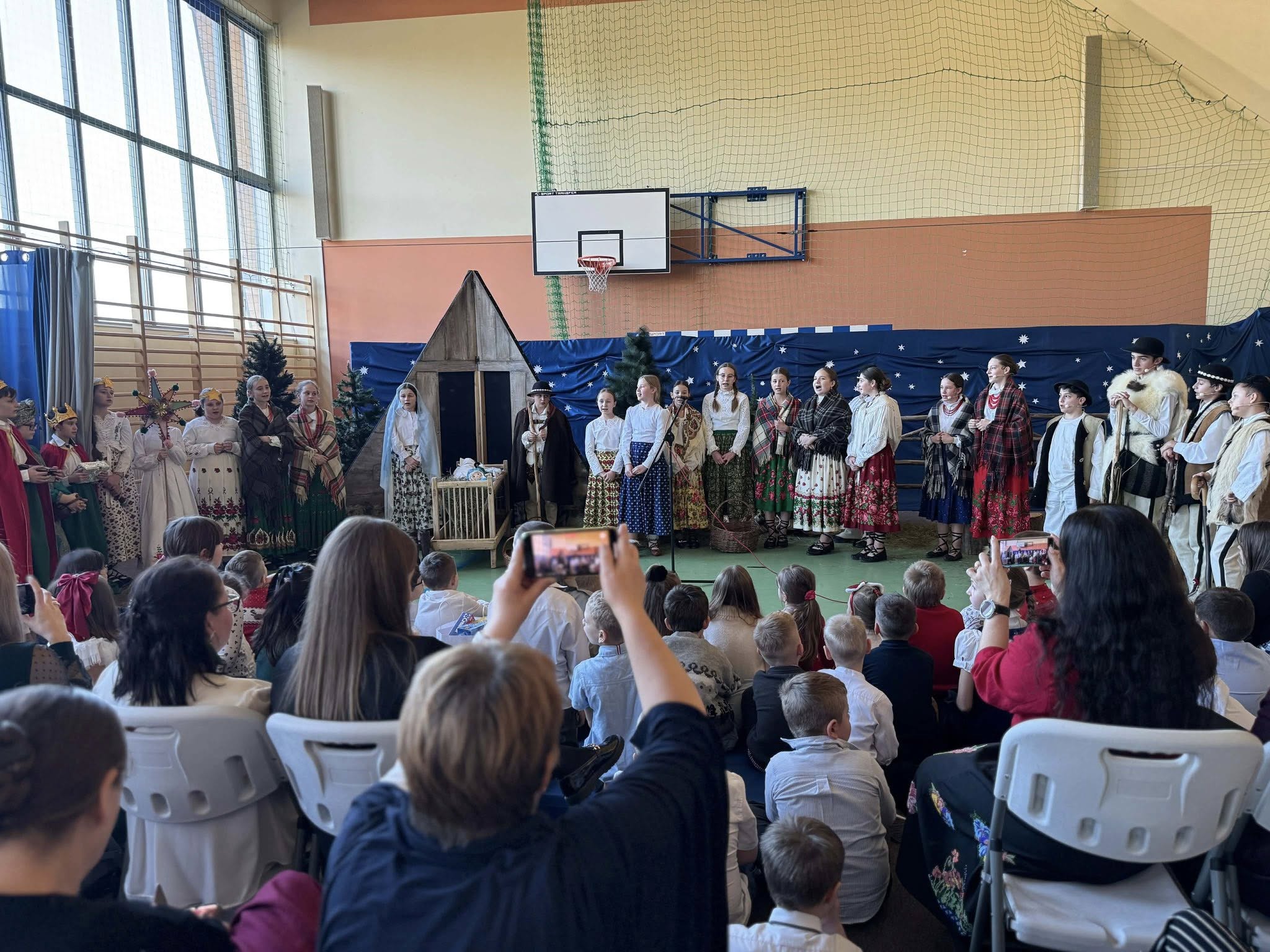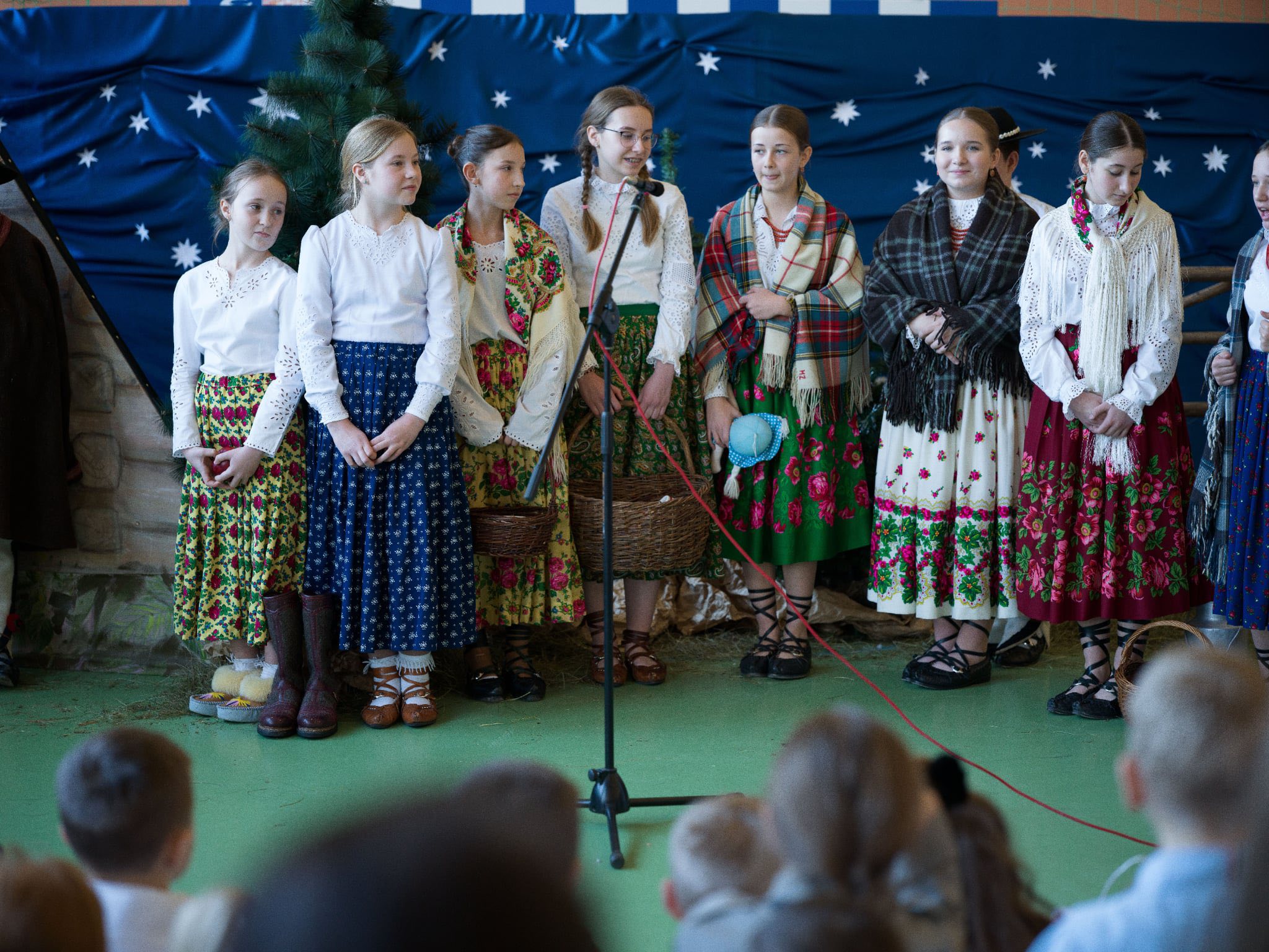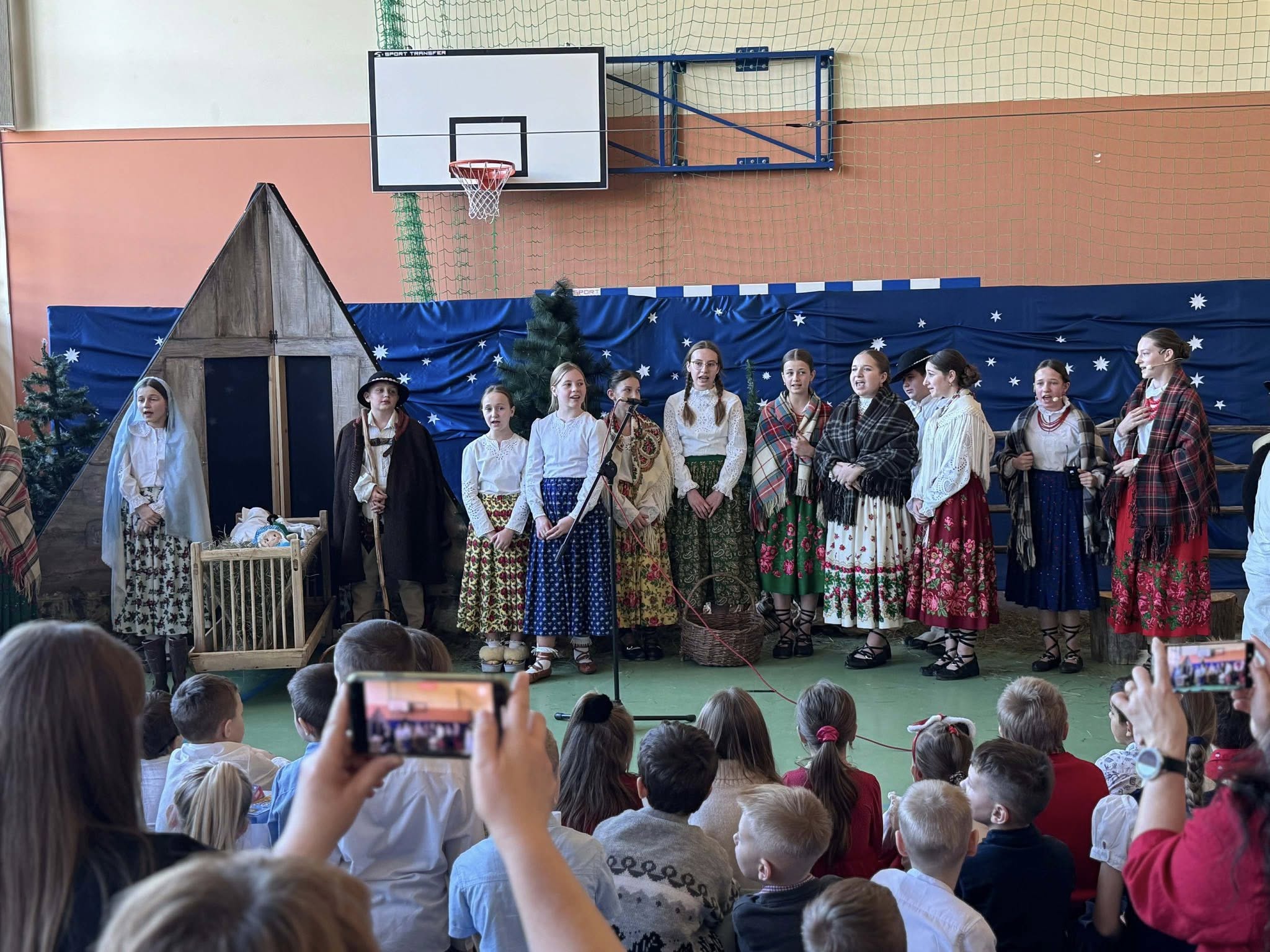 Następnie mieliśmy zaszczyt podziwiać piękne, góralskie jasełka przygotowane przez szkolne koło teatralne wraz z opiekunami. Barwne stroje, tradycyjna muzyka oraz autentyczne emocje młodych aktorów sprawiły, że wszyscy mogliśmy na nowo przeżyć tajemnicę narodzin Jezusa.