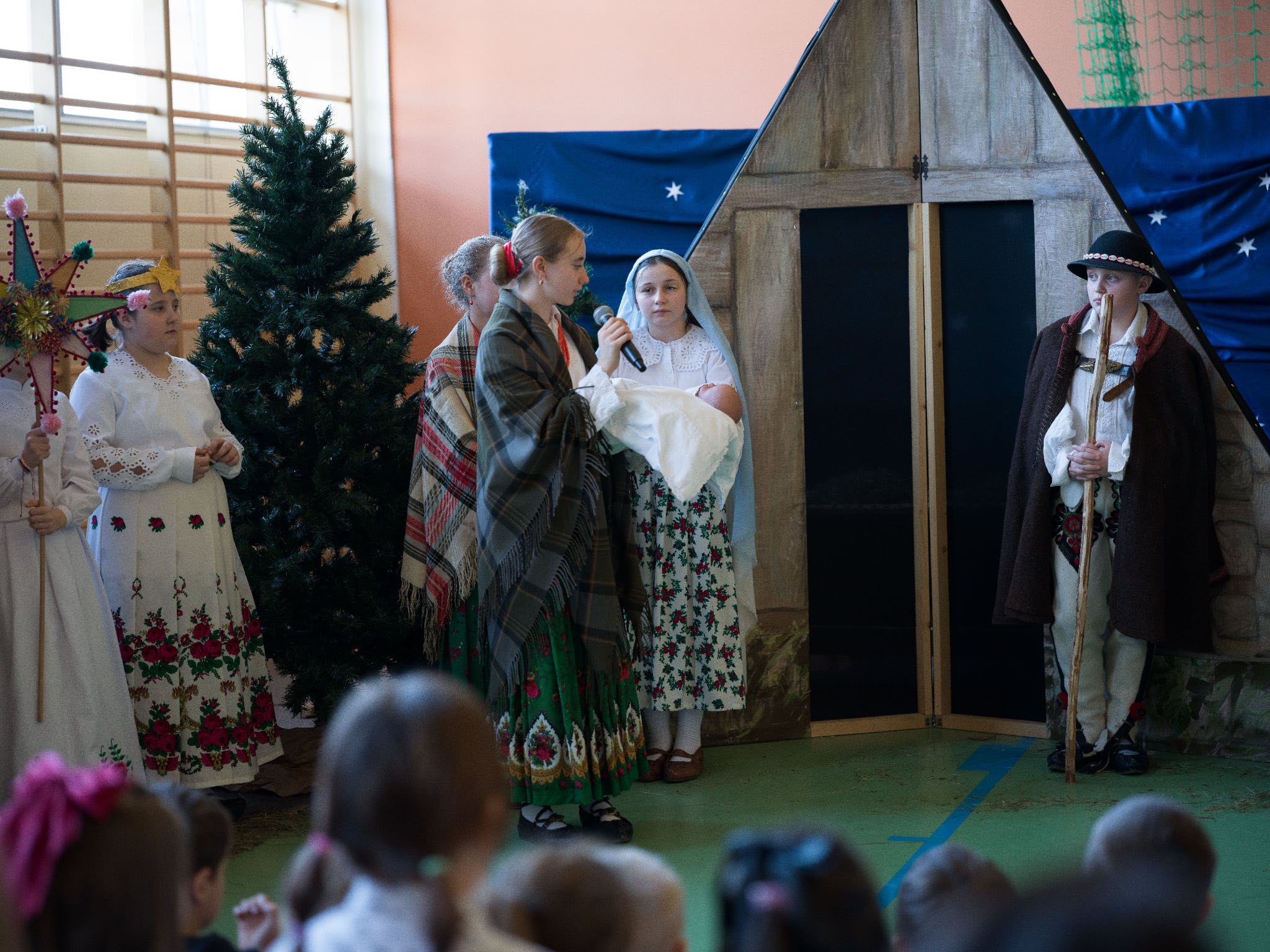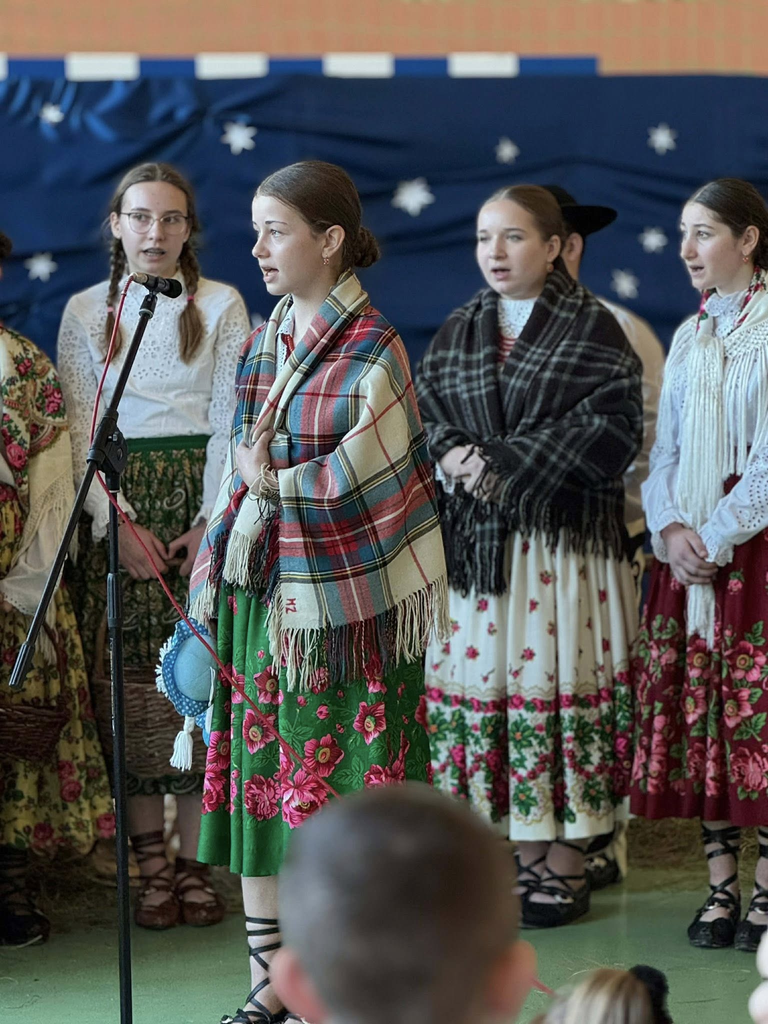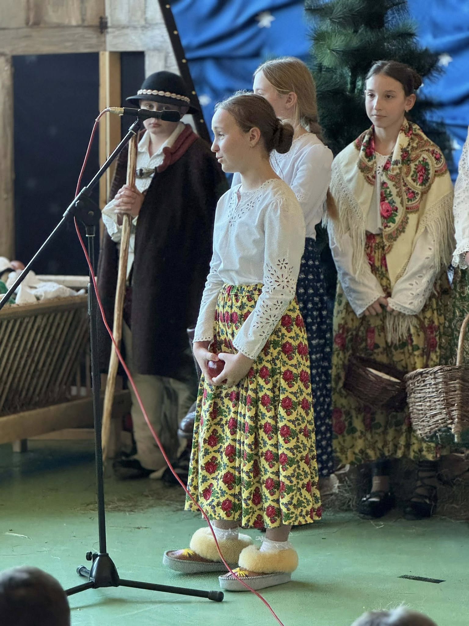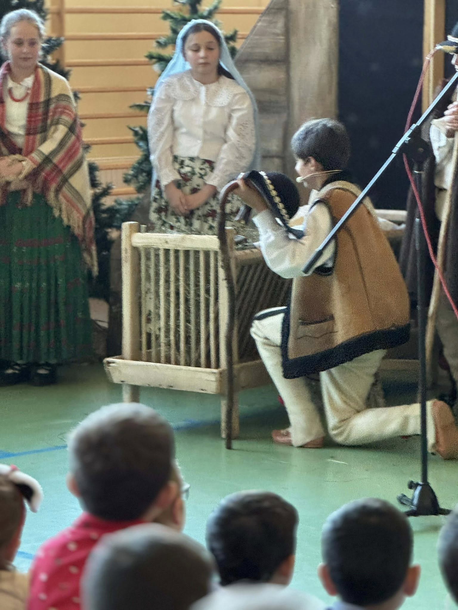 Następnie mieliśmy zaszczyt podziwiać piękne, góralskie jasełka przygotowane przez szkolne koło teatralne wraz z opiekunami. Barwne stroje, tradycyjna muzyka oraz autentyczne emocje młodych aktorów sprawiły, że wszyscy mogliśmy na nowo przeżyć tajemnicę narodzin Jezusa.