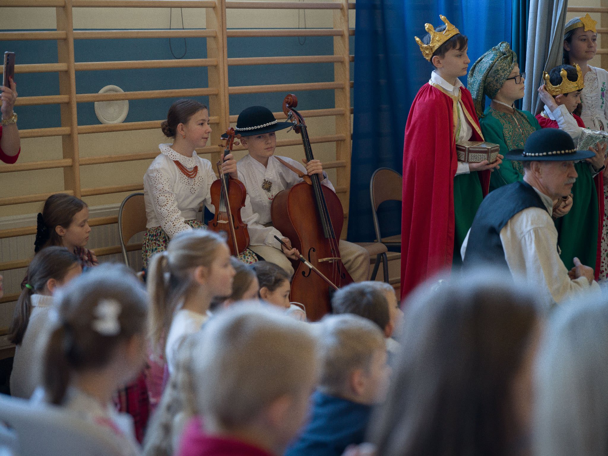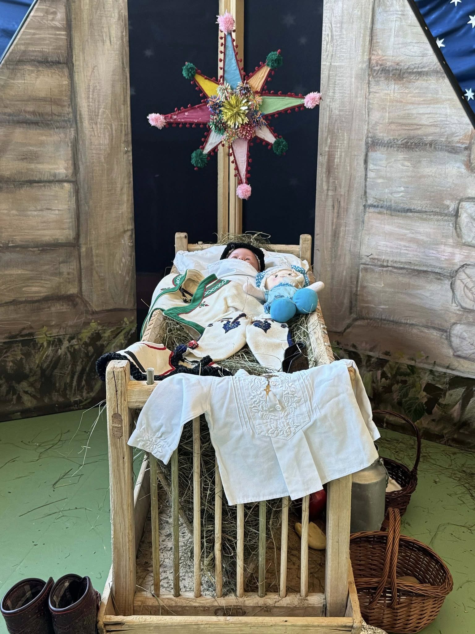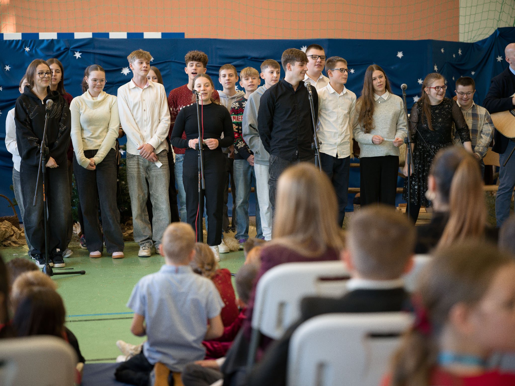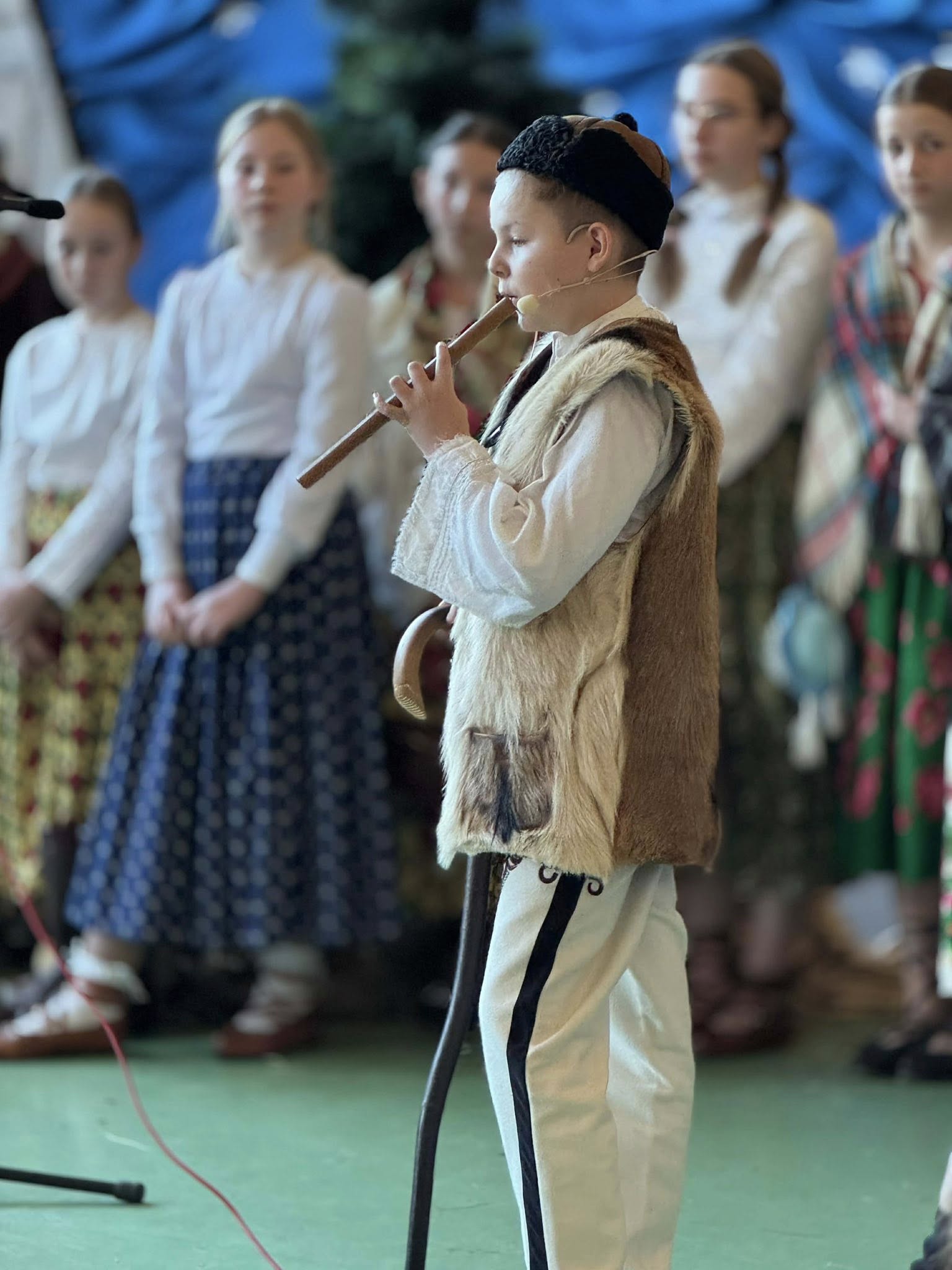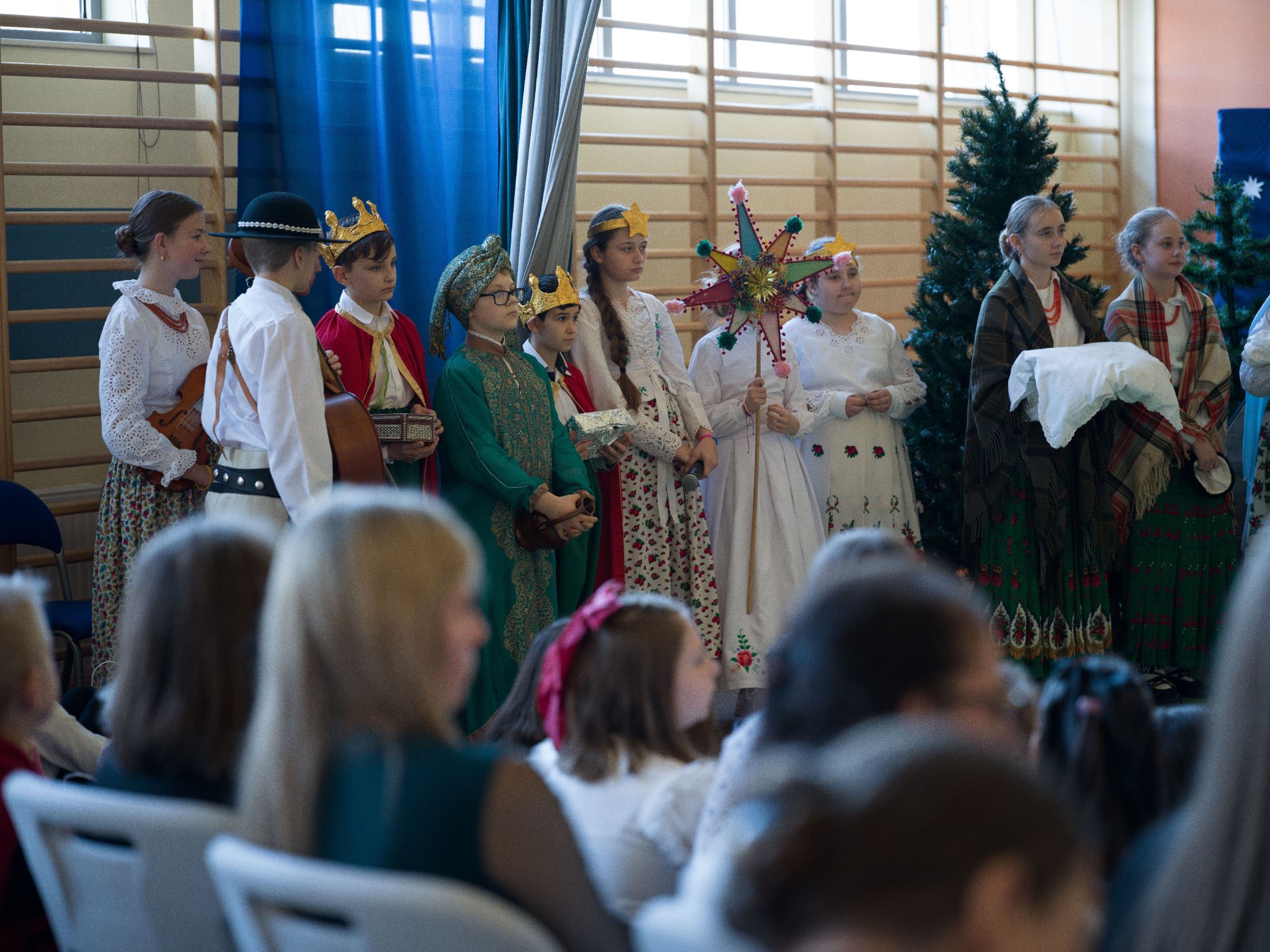 Następnie mieliśmy zaszczyt podziwiać piękne, góralskie jasełka przygotowane przez szkolne koło teatralne wraz z opiekunami. Barwne stroje, tradycyjna muzyka oraz autentyczne emocje młodych aktorów sprawiły, że wszyscy mogliśmy na nowo przeżyć tajemnicę narodzin Jezusa.