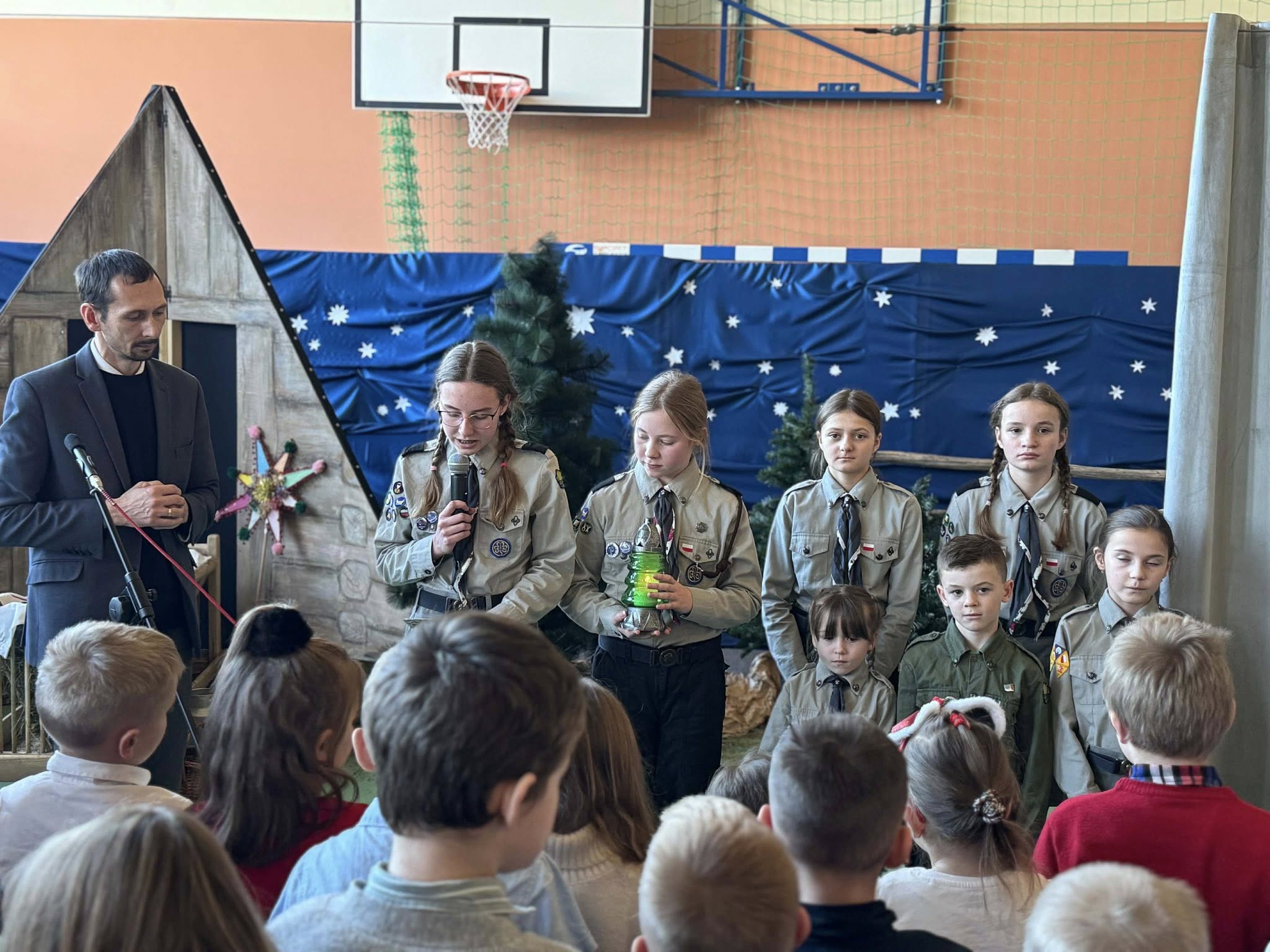 Po zakończeniu jasełek nastąpiło uroczyste przekazanie Betlejemskiego Światła Pokoju – symbolu nadziei, jedności i miłości, przypominającego o potrzebie dobra i wzajemnej życzliwości. Światełko zostało przekazane przez 12. PGZ „Wesołe Szarotki” oraz 26. PDH „DziewięćSił”, stając się poruszającym znakiem wspólnoty i pokoju.