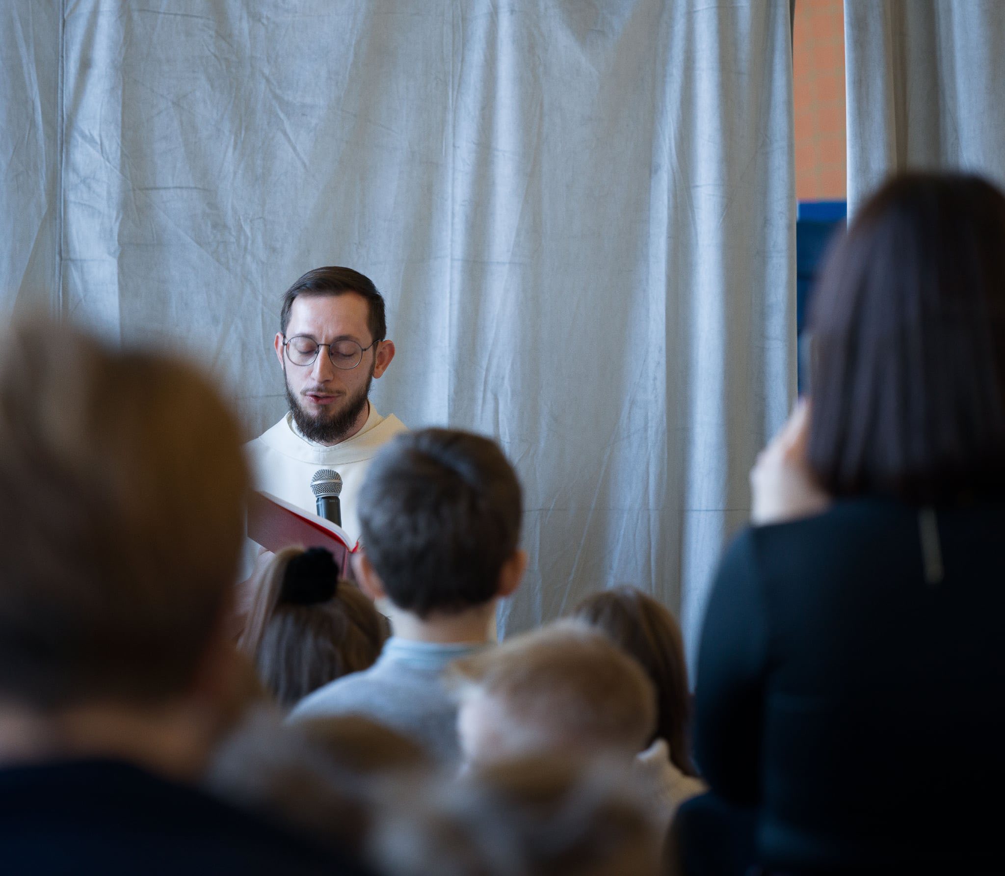 Wspólne spotkanie rozpoczęliśmy od odczytania Ewangelii przez ojca Dawida oraz wspólnej modlitwy, które wprowadziły nas w atmosferę skupienia i pokoju. Następnie Pan Dyrektor odczytał list Prezes Stowarzyszenia SPSK, Pani Marii Chodkiewicz, skierowany do całej społeczności szkolnej, pełen serdecznych słów i świątecznych życzeń.