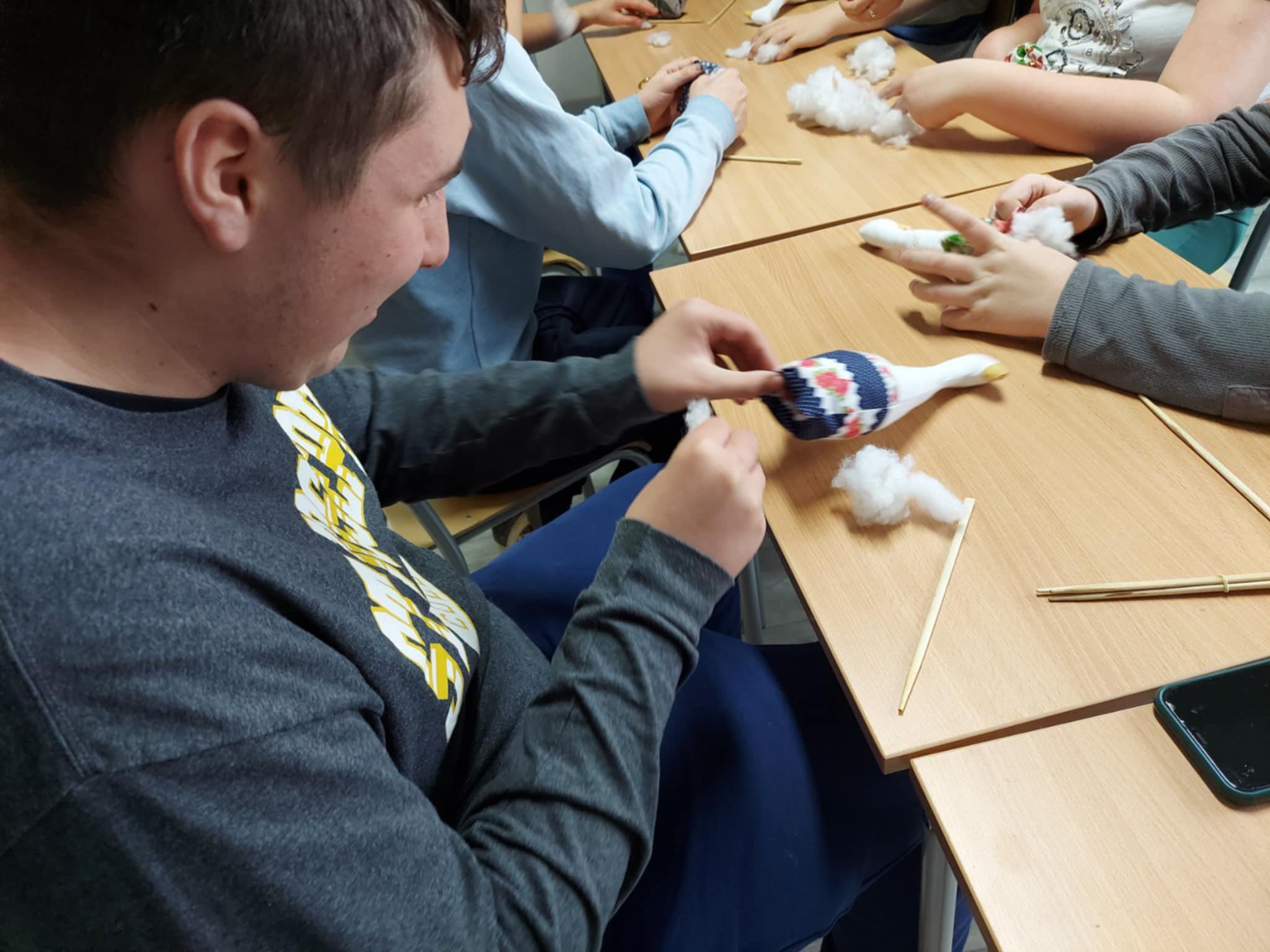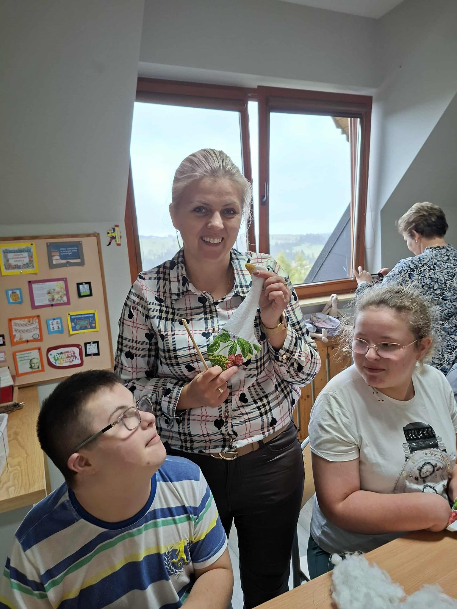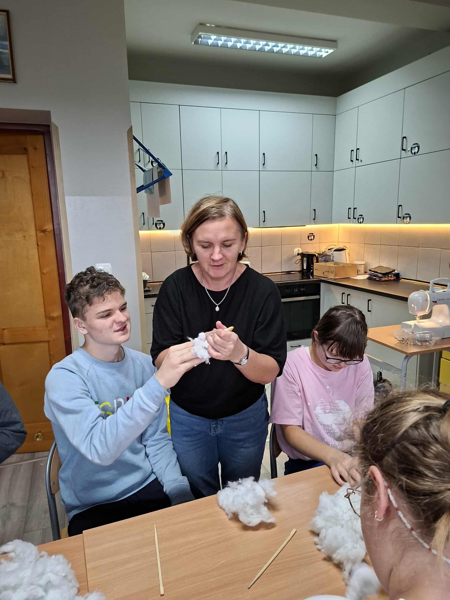 Podczas zajęć pani Agnieszka dzieliła się swoją wiedzą, udzielała cennych wskazówek i pomagała naszym twórcom w wykonaniu gąsek i serc, które trafią na zbliżający się Bal Charytatywny organizowany przez SONiRiP.