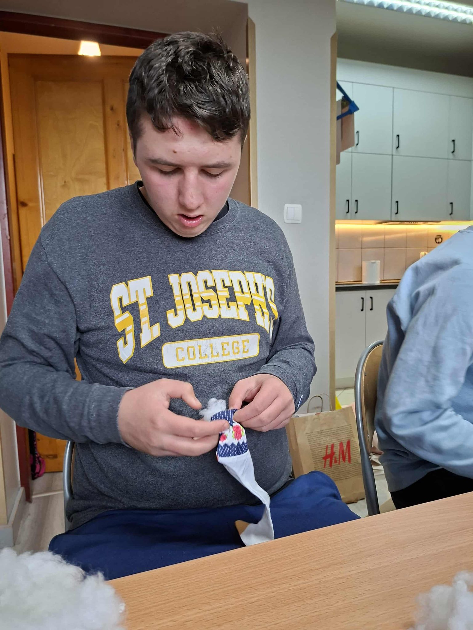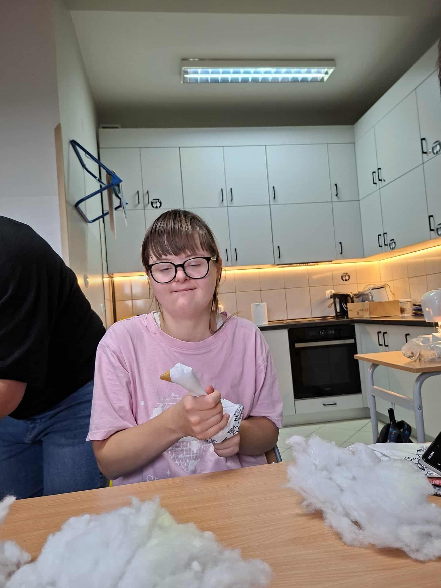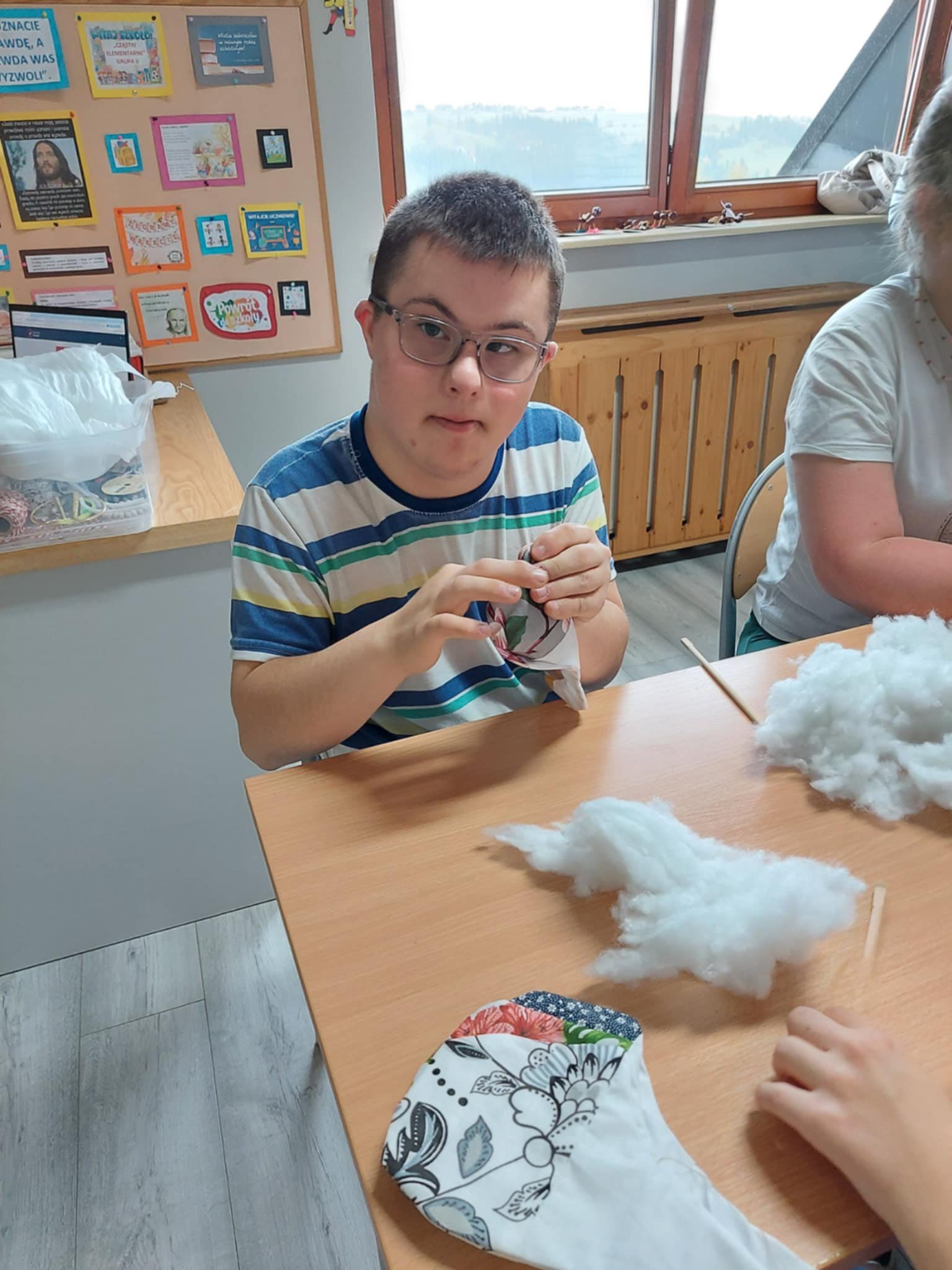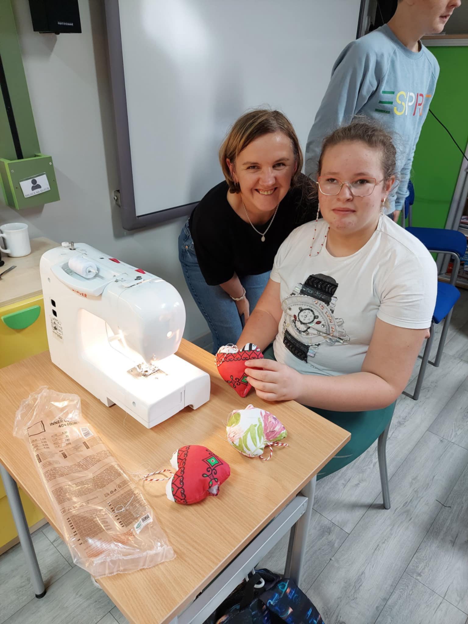 Podczas zajęć pani Agnieszka dzieliła się swoją wiedzą, udzielała cennych wskazówek i pomagała naszym twórcom w wykonaniu gąsek i serc, które trafią na zbliżający się Bal Charytatywny organizowany przez SONiRiP.