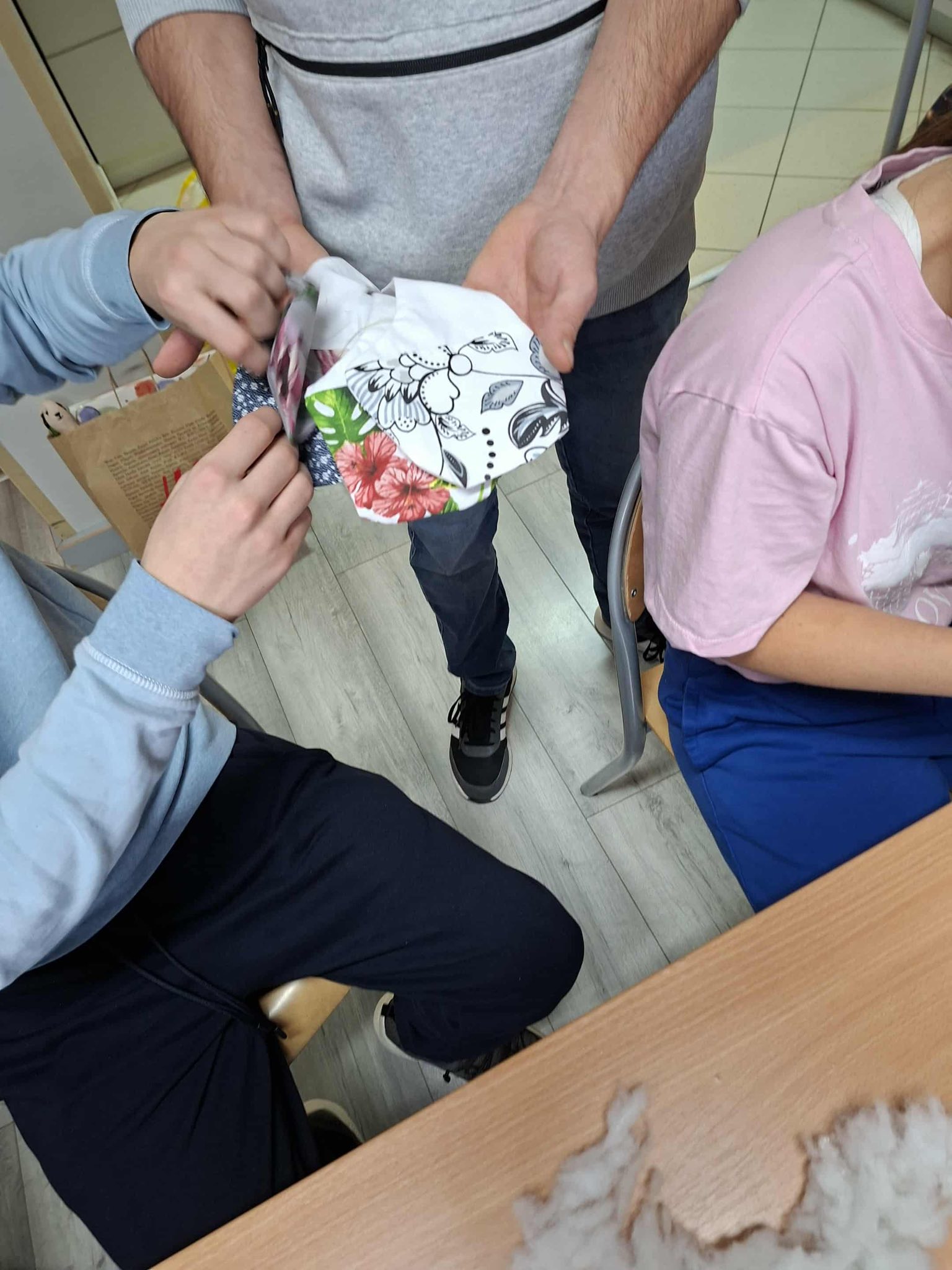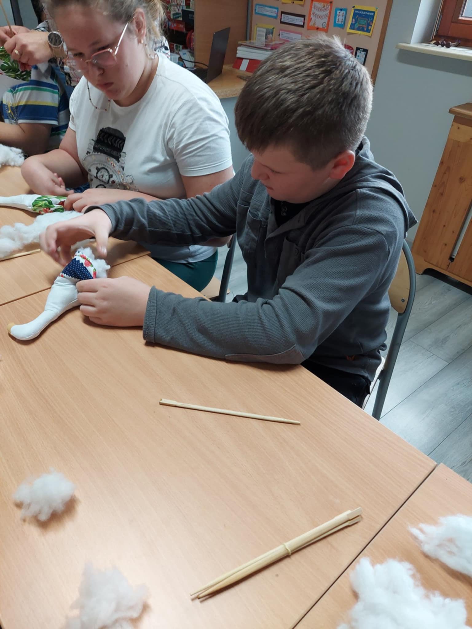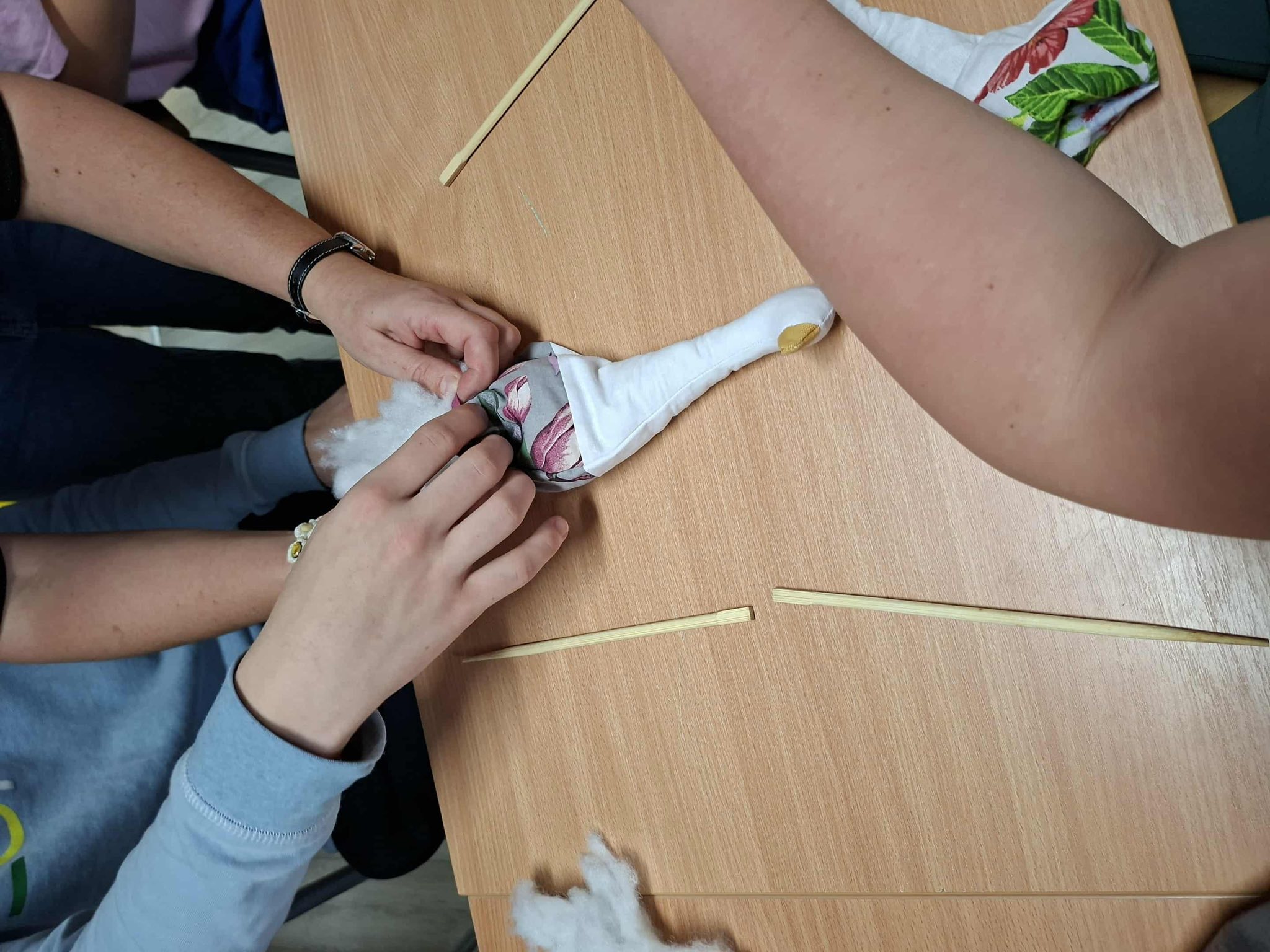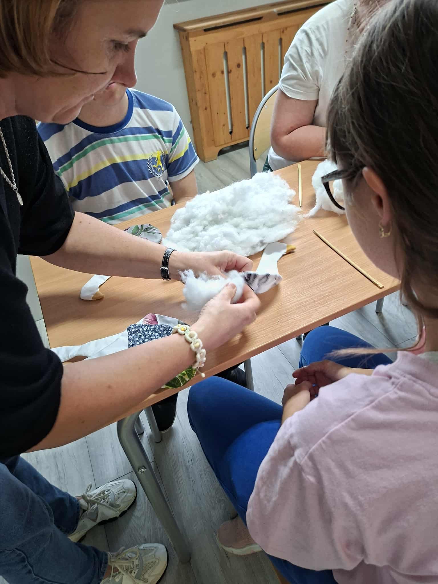 Warsztaty krawieckie dla grupy „Cząstki elementarne” .