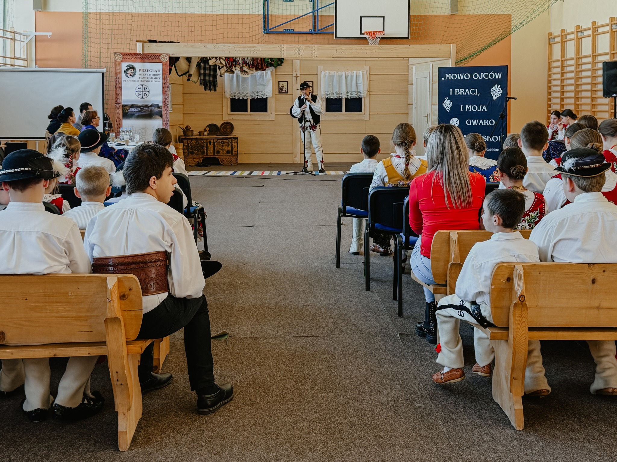 Nasza szkoła od lat pielęgnuje i szanuje tradycje podhalańskie oraz piękno gwary, dlatego z ogromną radością po raz pierwszy zorganizowała wewnątrzszkolny konkurs recytatorów i gawędziarzy, będący jednocześnie eliminacjami przed kolejnym Przeglądem Młodych Recytatorów i Gawędziarzy im. Andrzeja Skupnia Florka, który odbędzie się 11 grudnia w Czarnym Dunajcu. Wydarzenie to stworzyło uczniom wyjątkową okazję do zaprezentowania gwary, regionalnych opowieści oraz twórczości patrona – wybitnego gawędziarza z Białego Dunajca. Uczniowie rywalizowali w dwóch kategoriach: recytatorów oraz gawędziarzy, a ich występy oceniano pod kątem znajomości gwary, interpretacji, walorów artystycznych i wierności tradycji regionu.