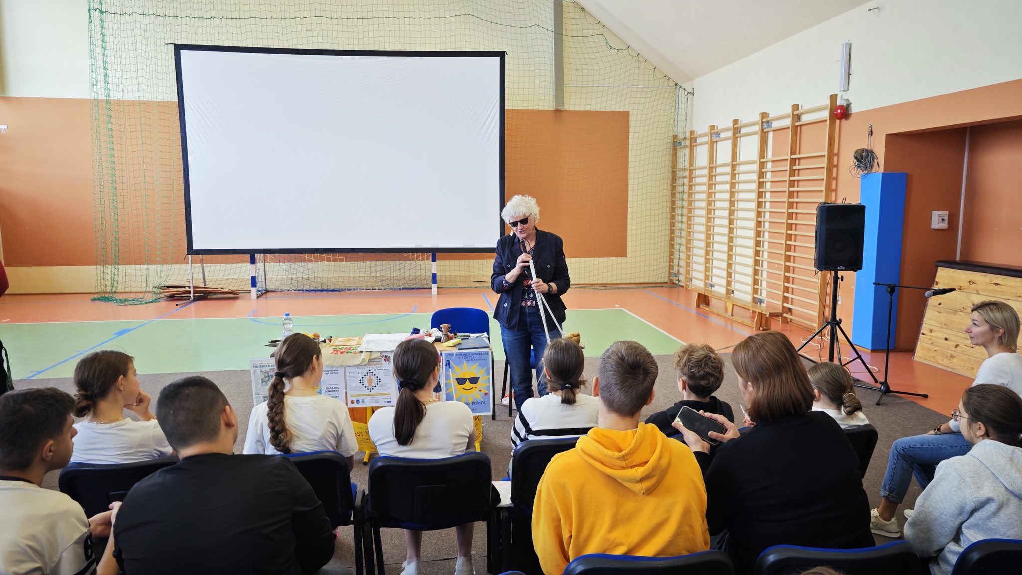 25 listopada naszych uczniów klas 5–8 odwiedziła pani Barbara Sowińska – terapeutka, a jednocześnie osoba niewidoma, która w niezwykle ciekawy i poruszający sposób opowiedziała o funkcjonowaniu osób z niepełnosprawnością wzroku.